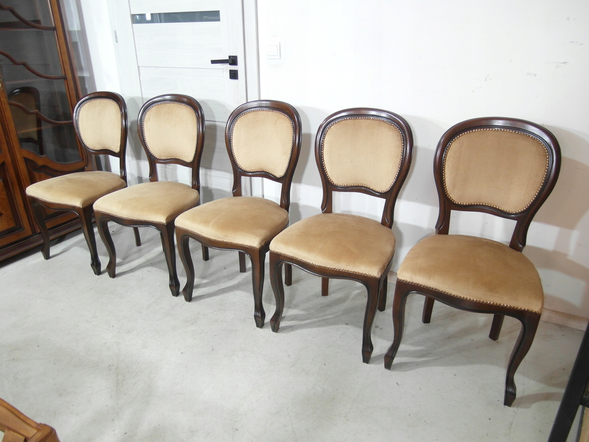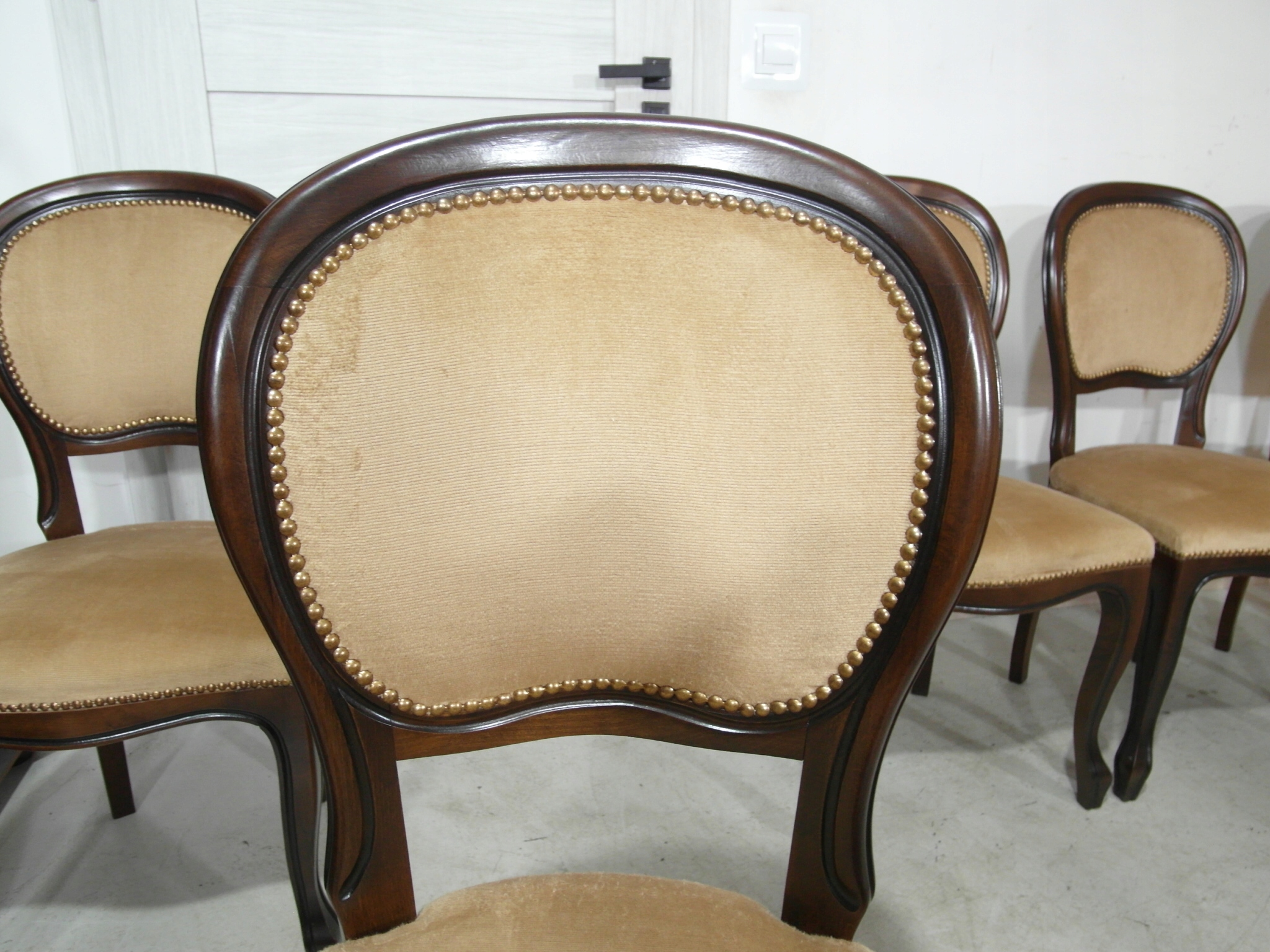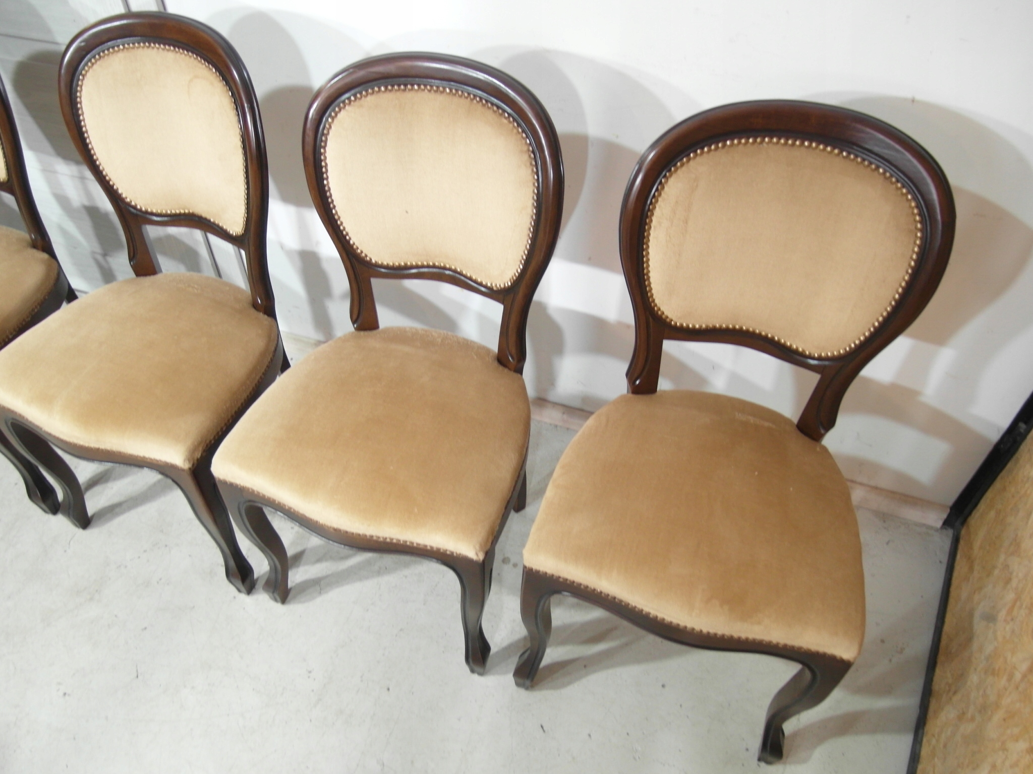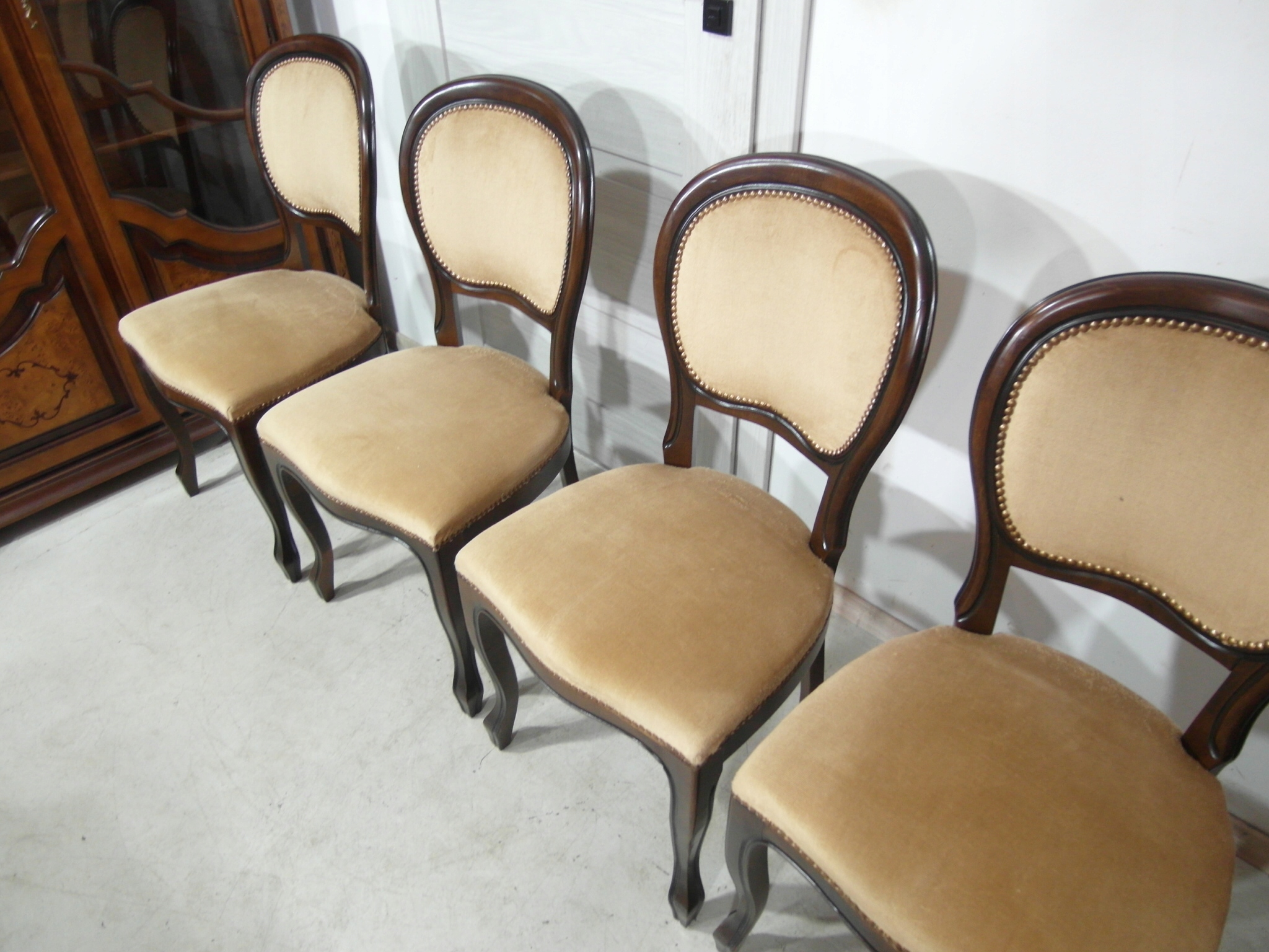 Opis: 4 krzesła w idealnym stanie , siedziska pokryte materiałem – materiał bez uszkodzeń