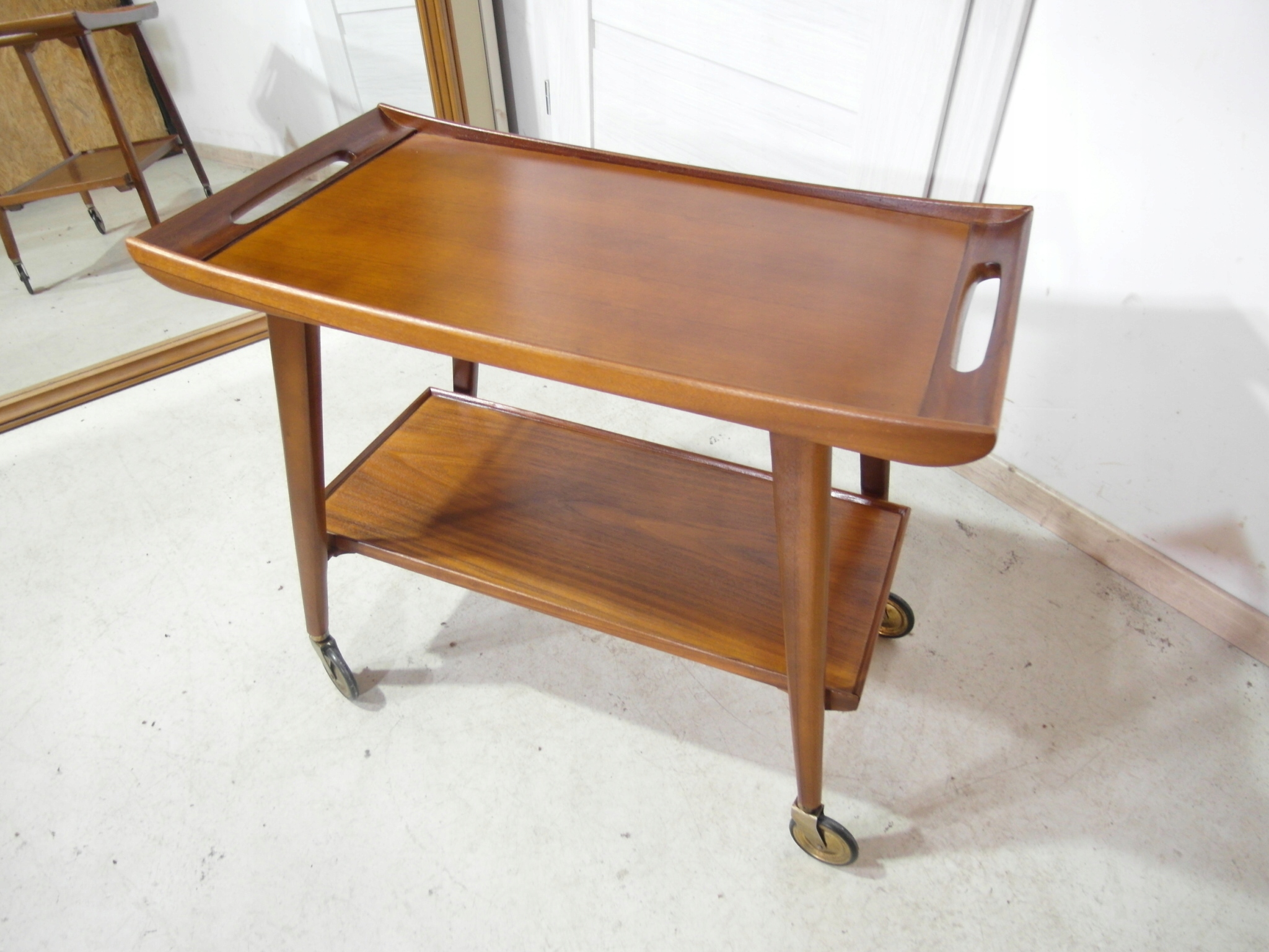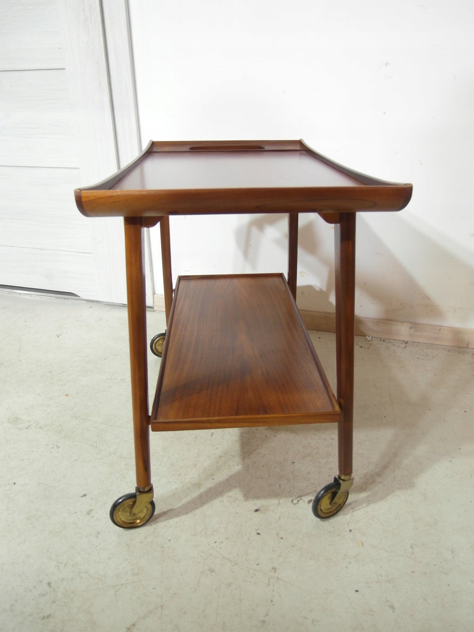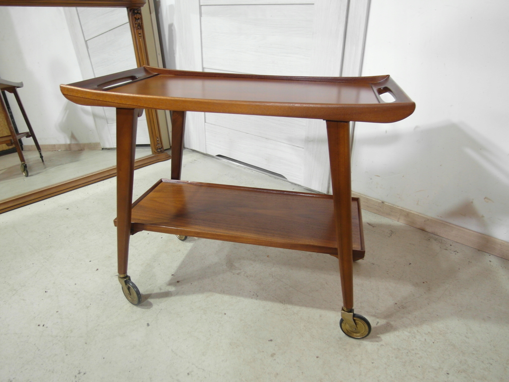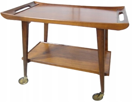 Opis: prostokątny stolik na kółkach, drewniany , stabilny, bardzo ładny , slicznie fornirowany