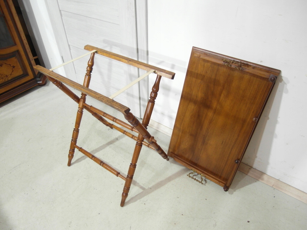 Opis: stolik z tacą , po zdjęciu tacy podstawa stoi w miejscu , można ja także złożyć