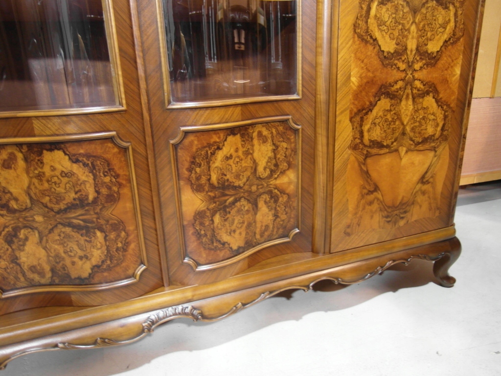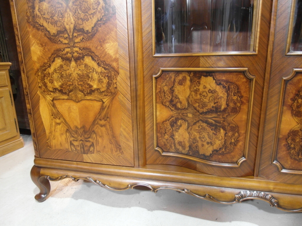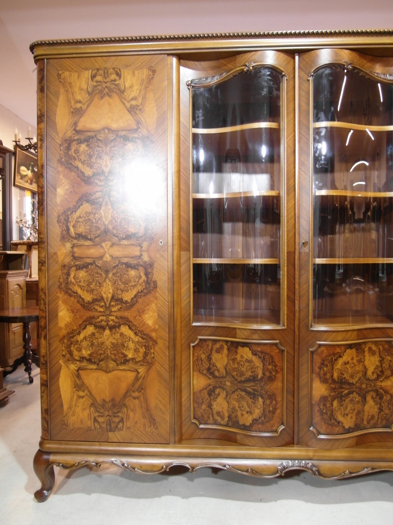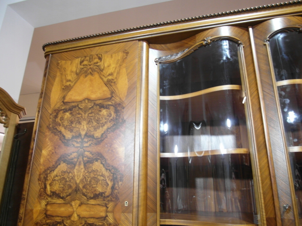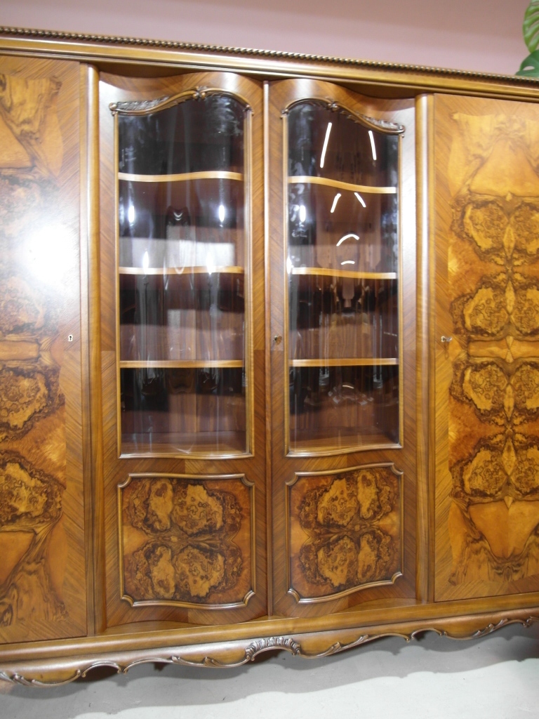 Opis: biblioteka z półkami przeszklona ZAMYKANA NA KLUCZ , W ŚRODKU PÓŁKI , kompletna , wszystko sprawne , oryginalne okucia,