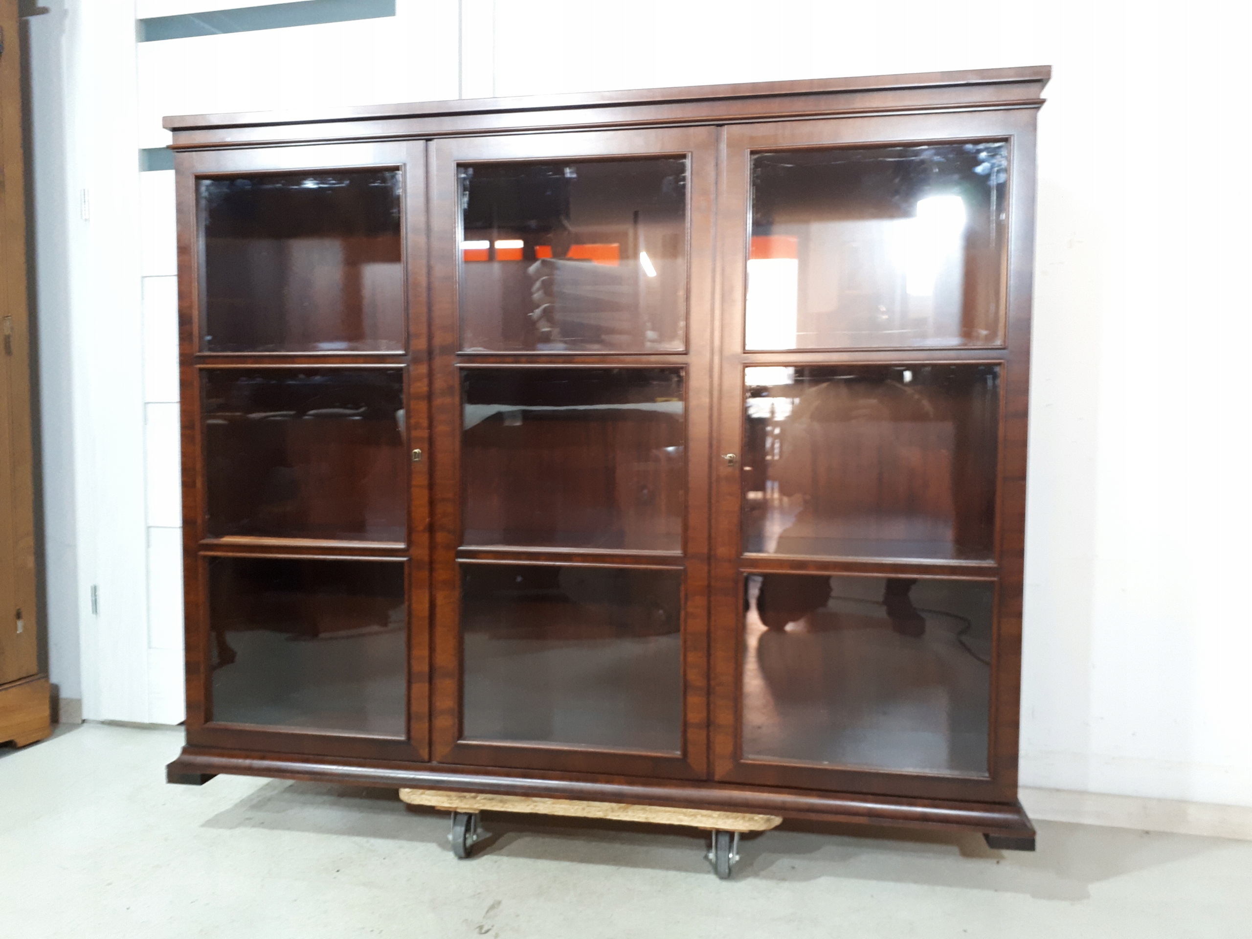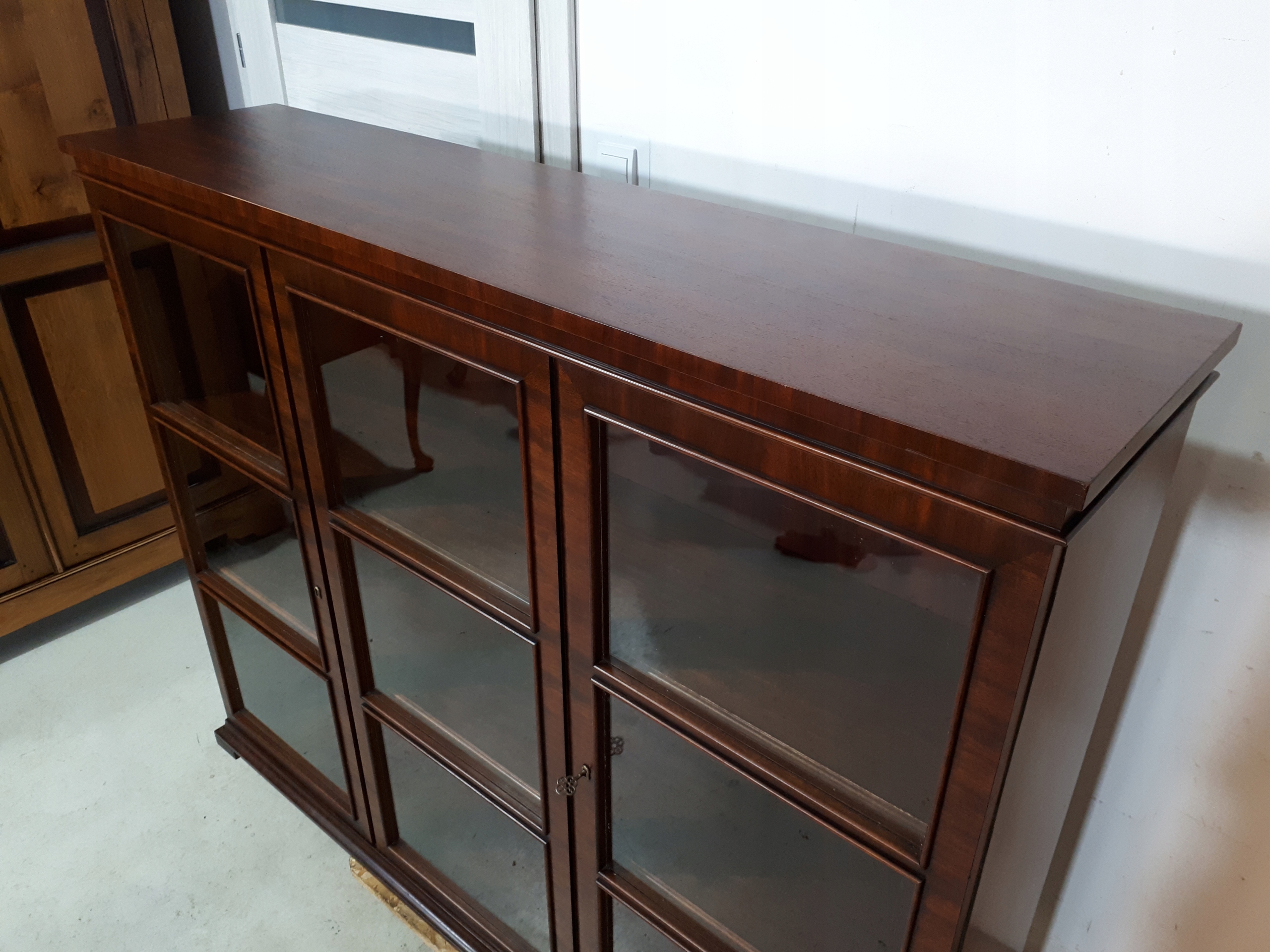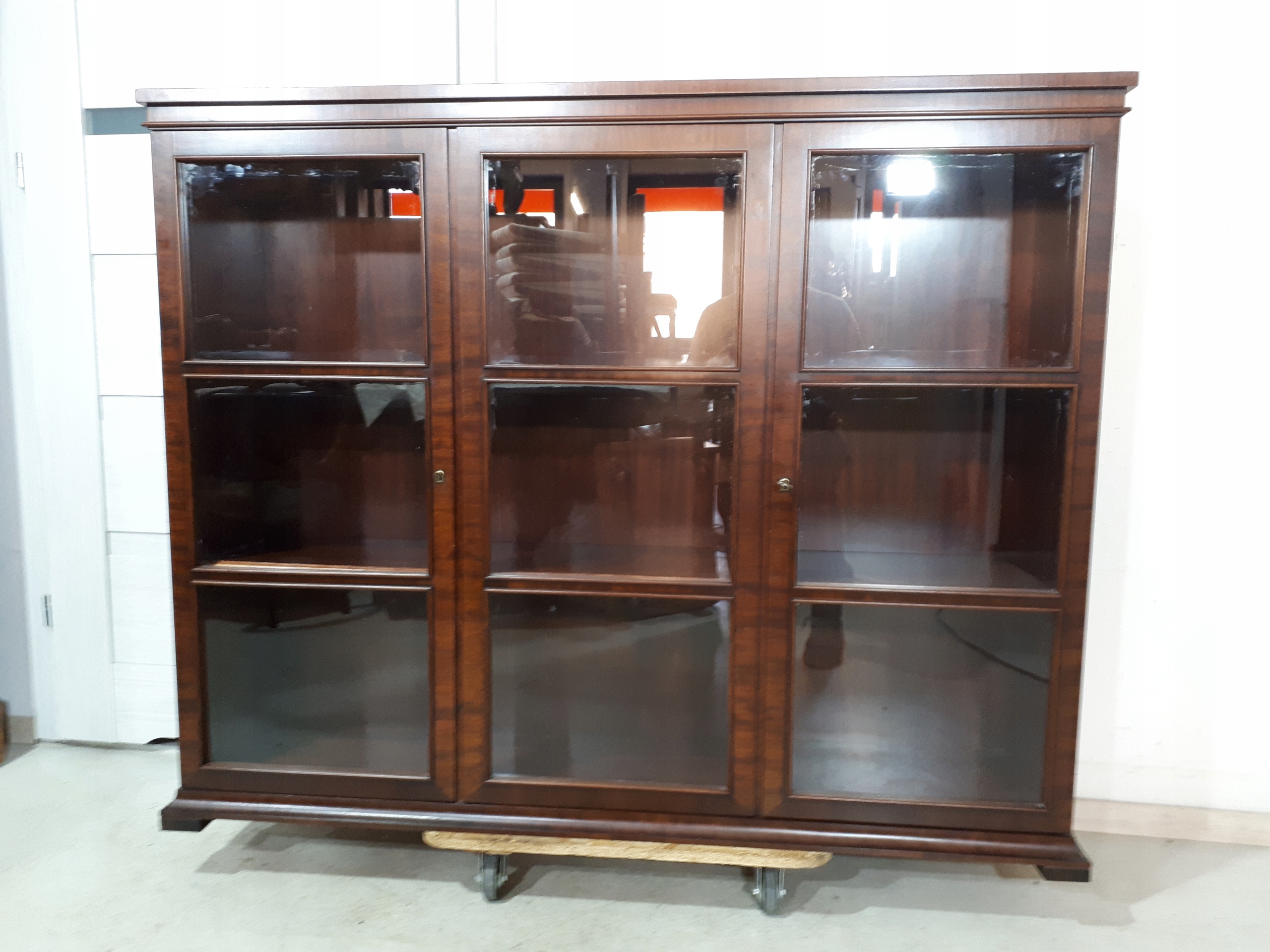 Opis: witryna przeszklona ZAMYKANA NA KLUCZ , W ŚRODKU PÓŁKI , kompletna , wszystko sprawne , oryginalne okucia,