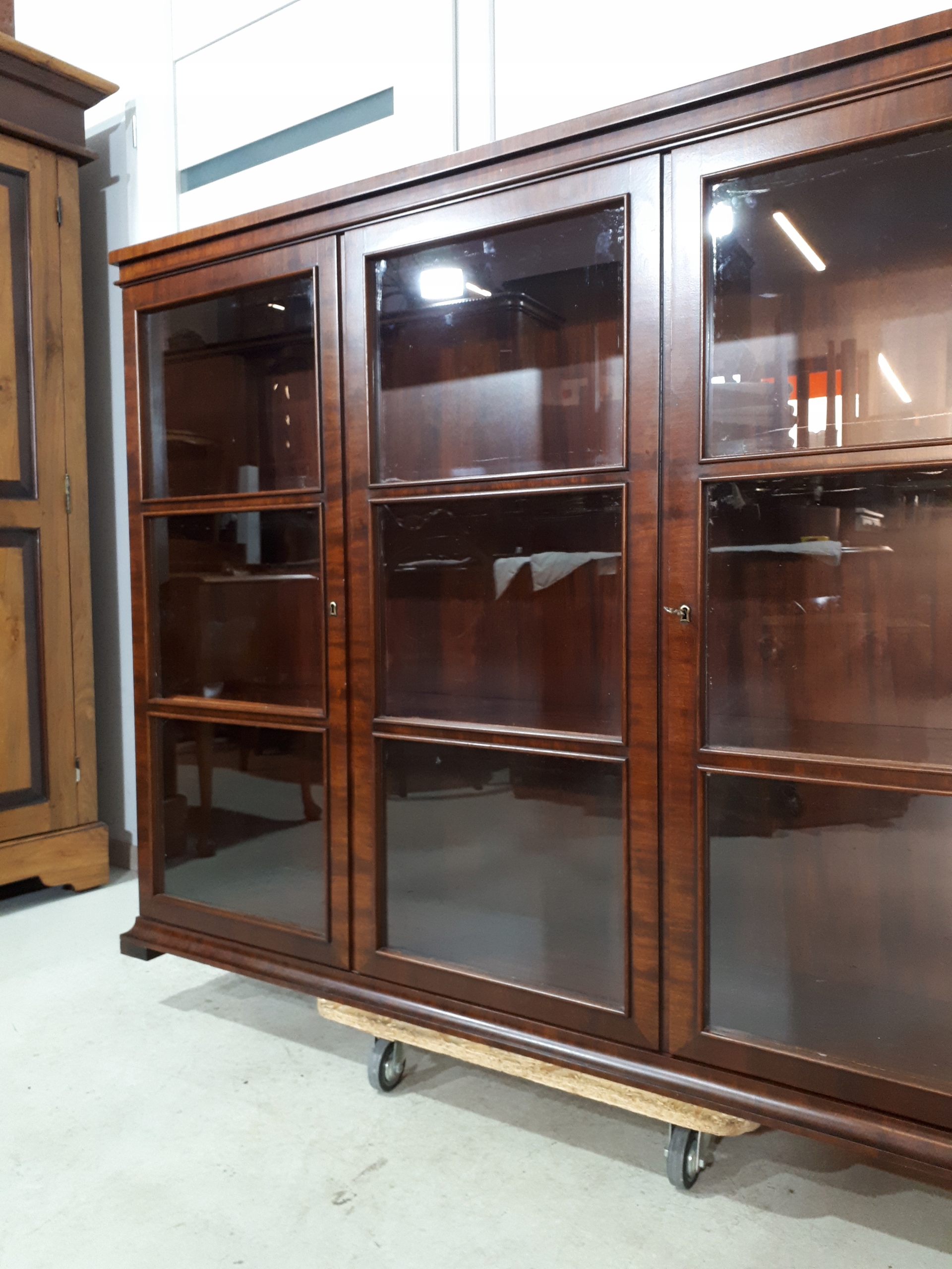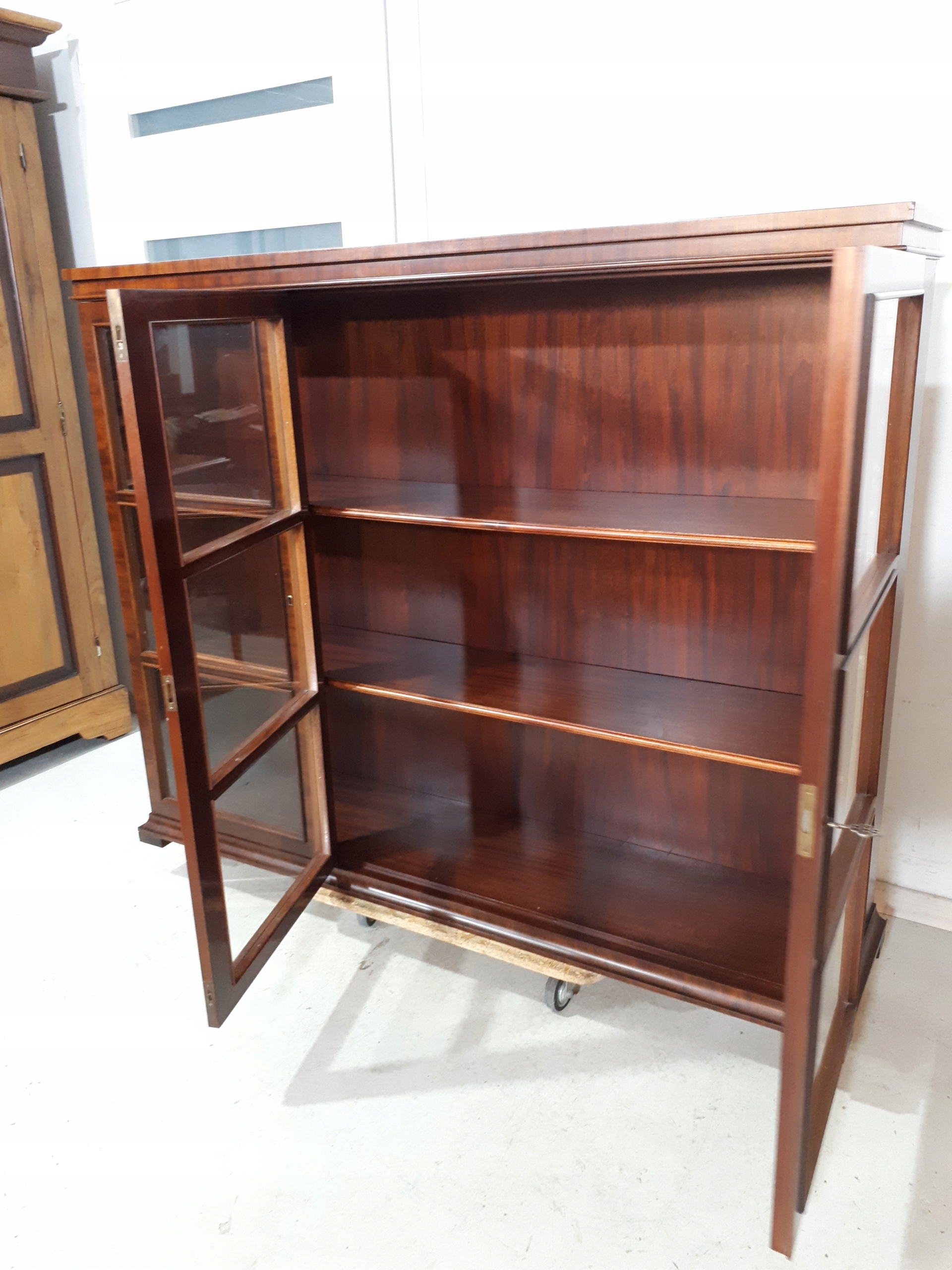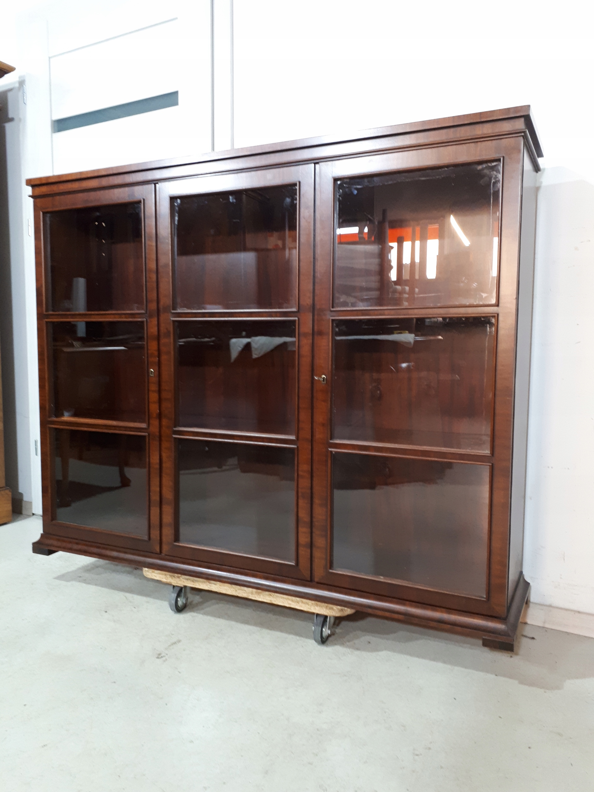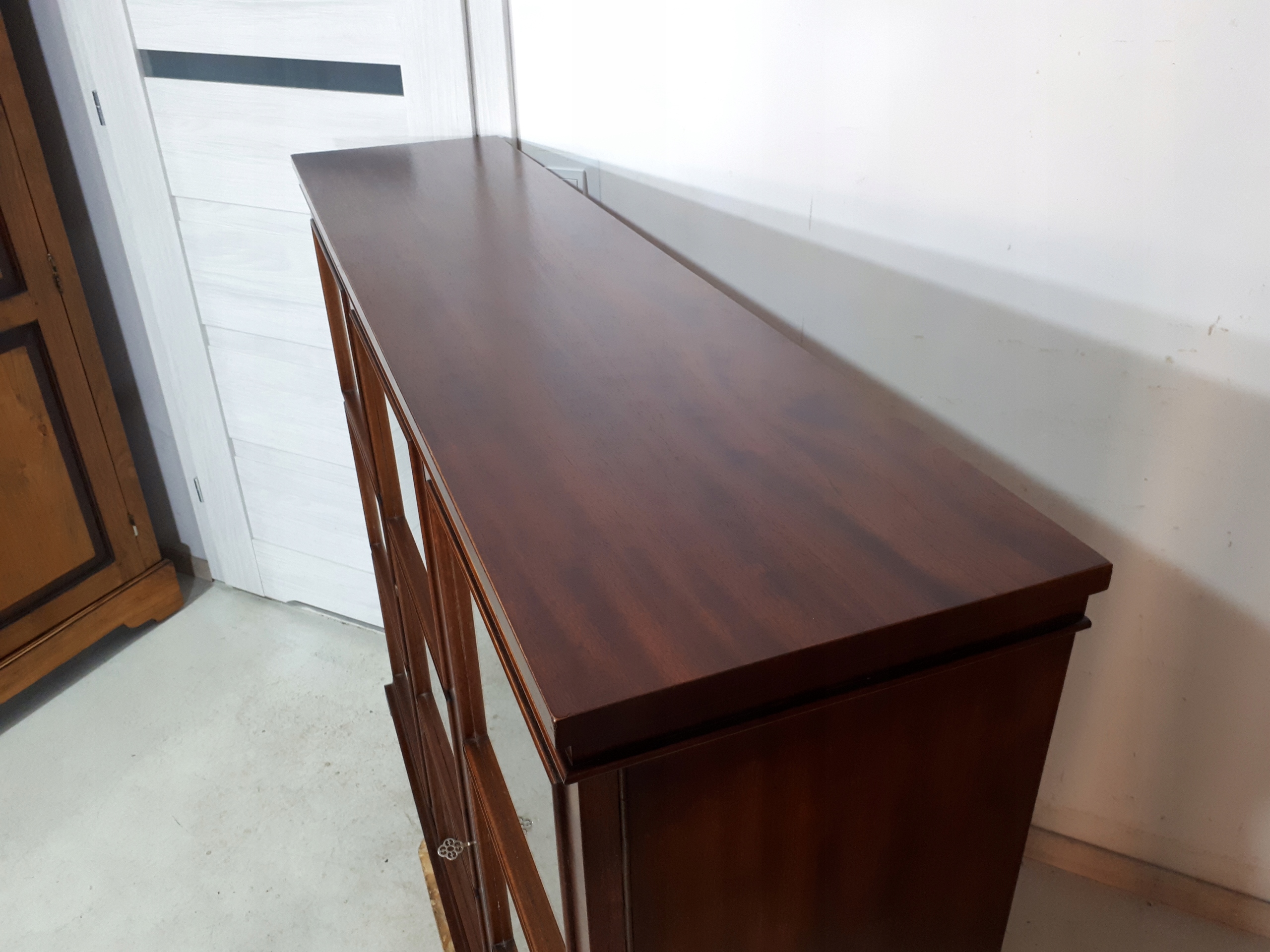 Opis: witryna przeszklona ZAMYKANA NA KLUCZ , W ŚRODKU PÓŁKI , kompletna , wszystko sprawne , oryginalne okucia,
