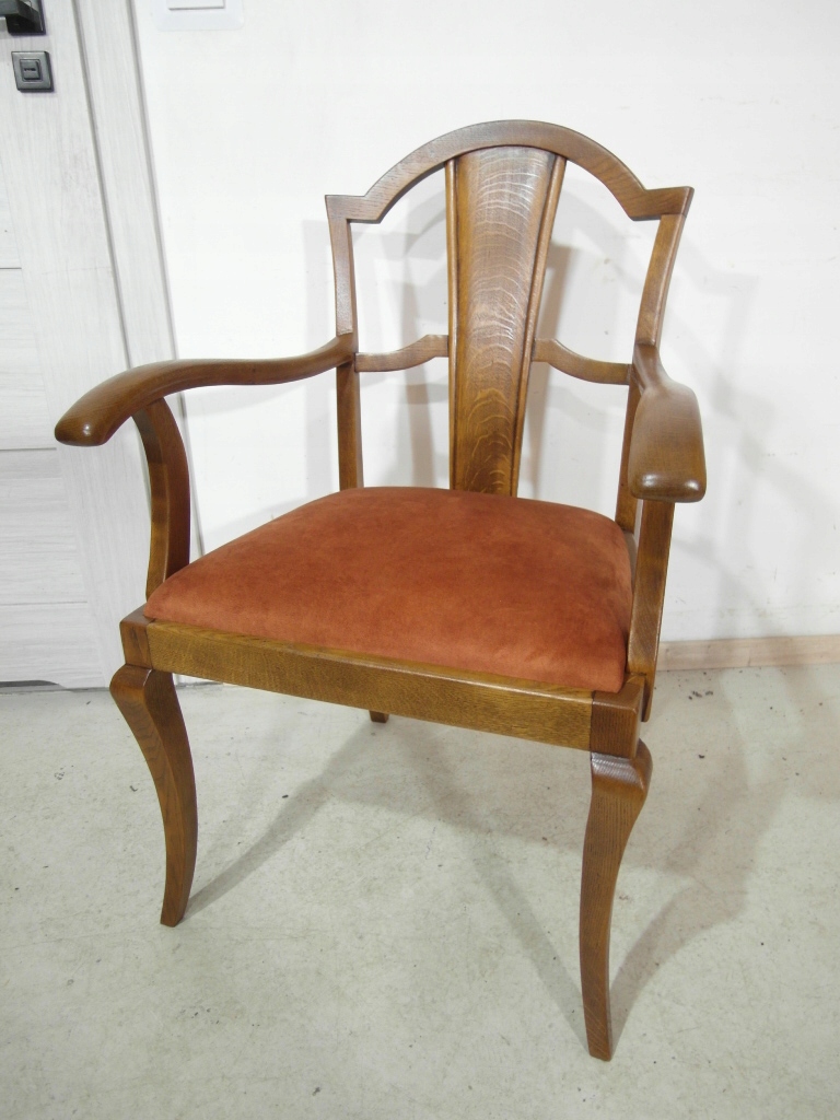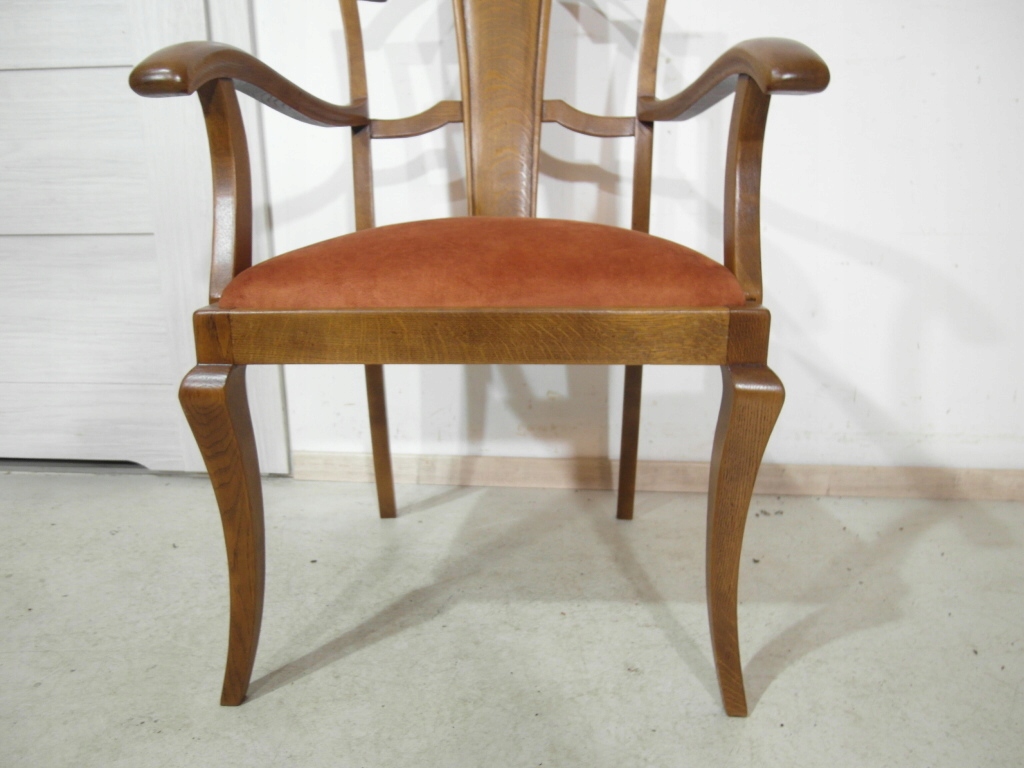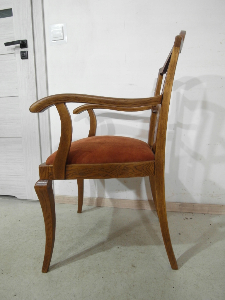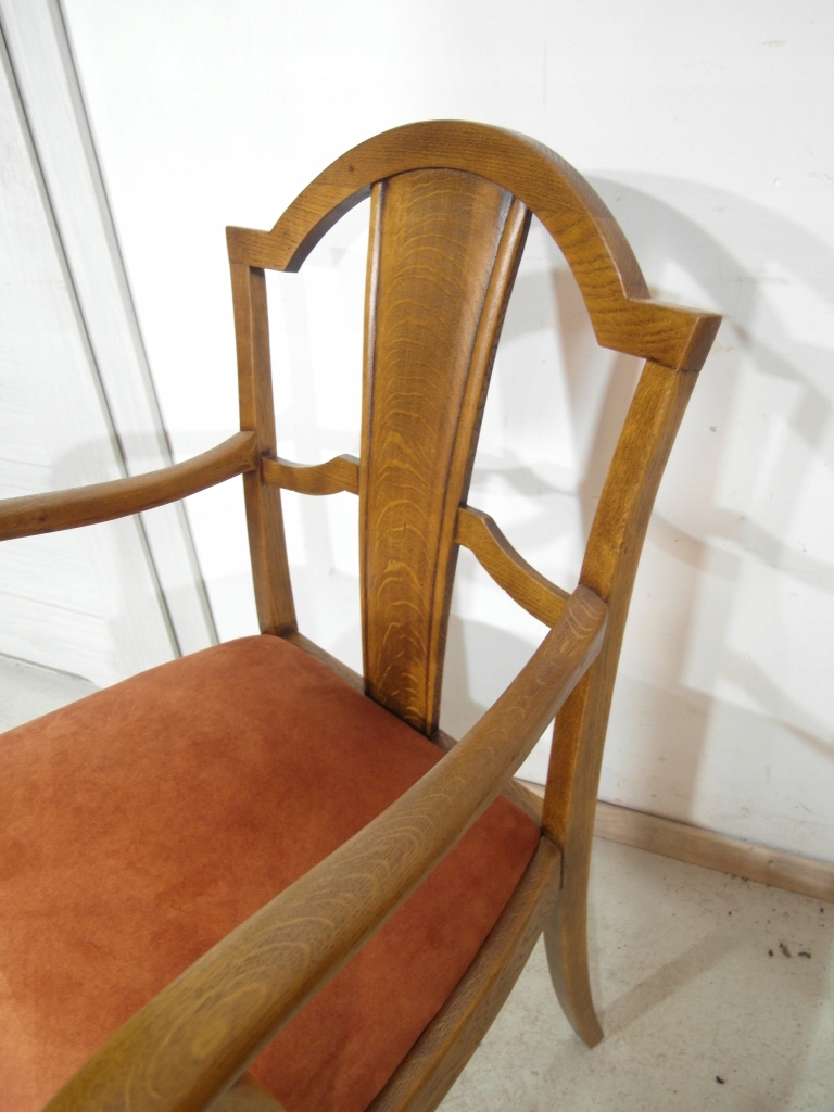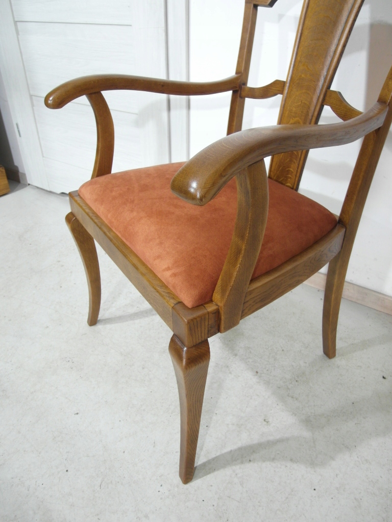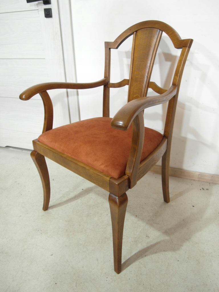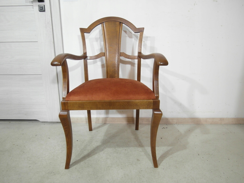 Opis: fotel z podłokietnikami z drewna , stabilny i bardzo mocny, siedzisko pokryte grubym wytrzymałym materiałem ( nowym)