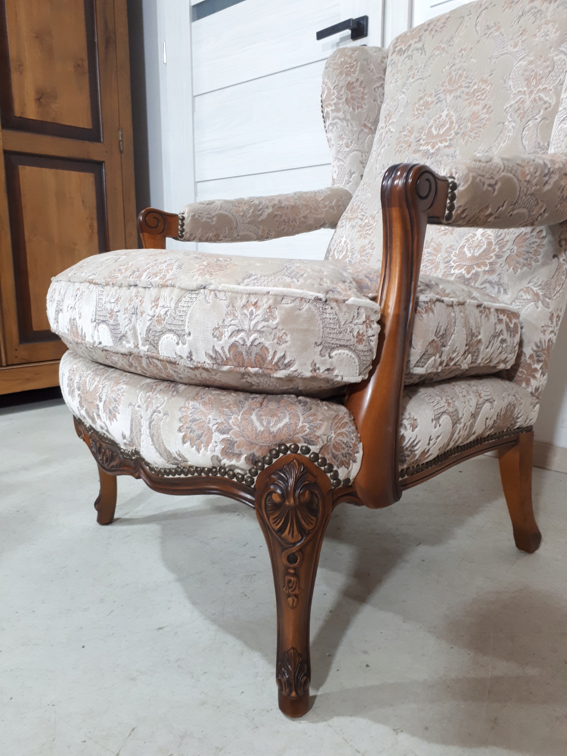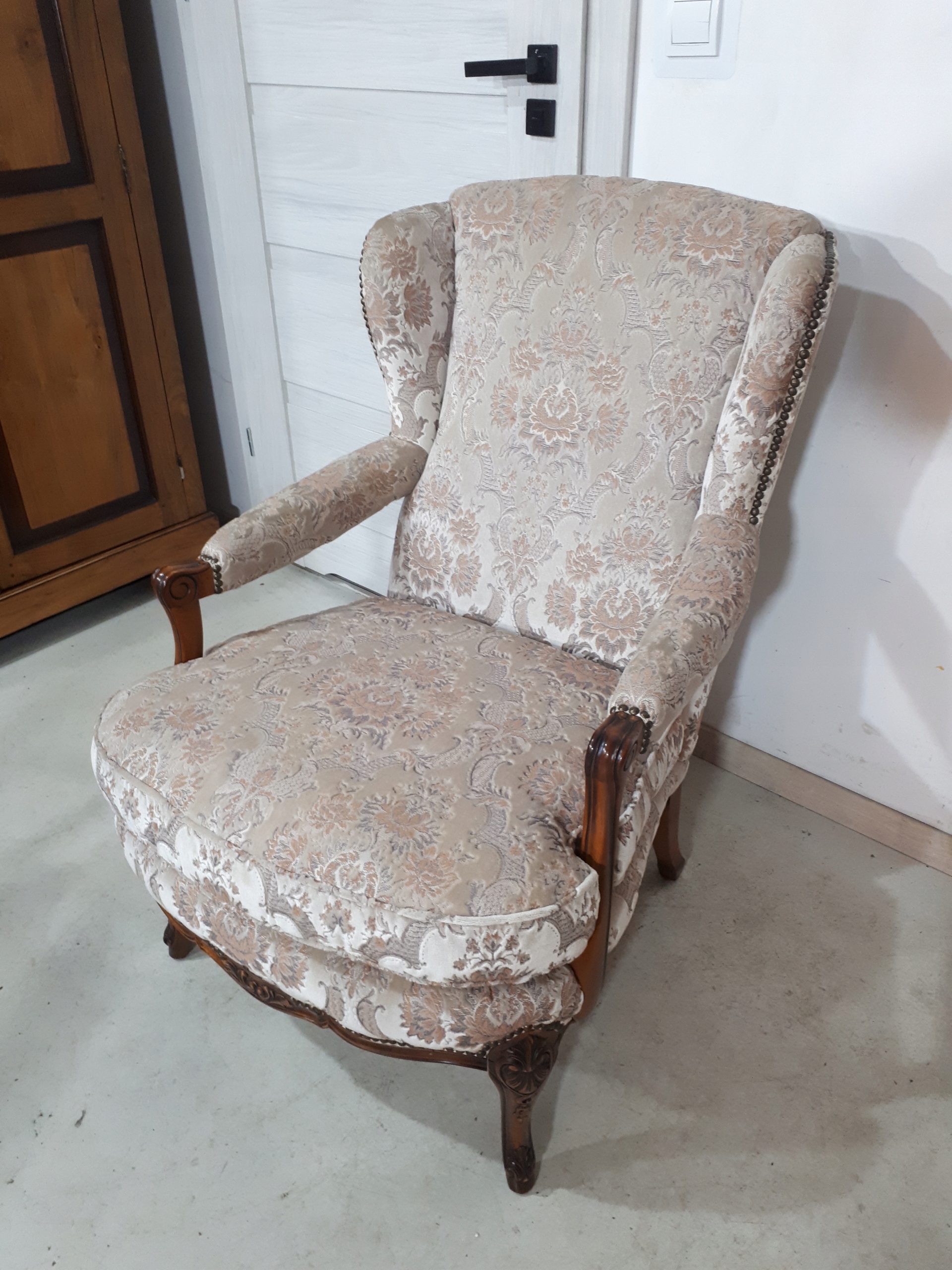 Opis: fotel z podłokietnikami z drewna , stabilny i bardzo mocny, wypoczynkowy , bardzo wygodny ,