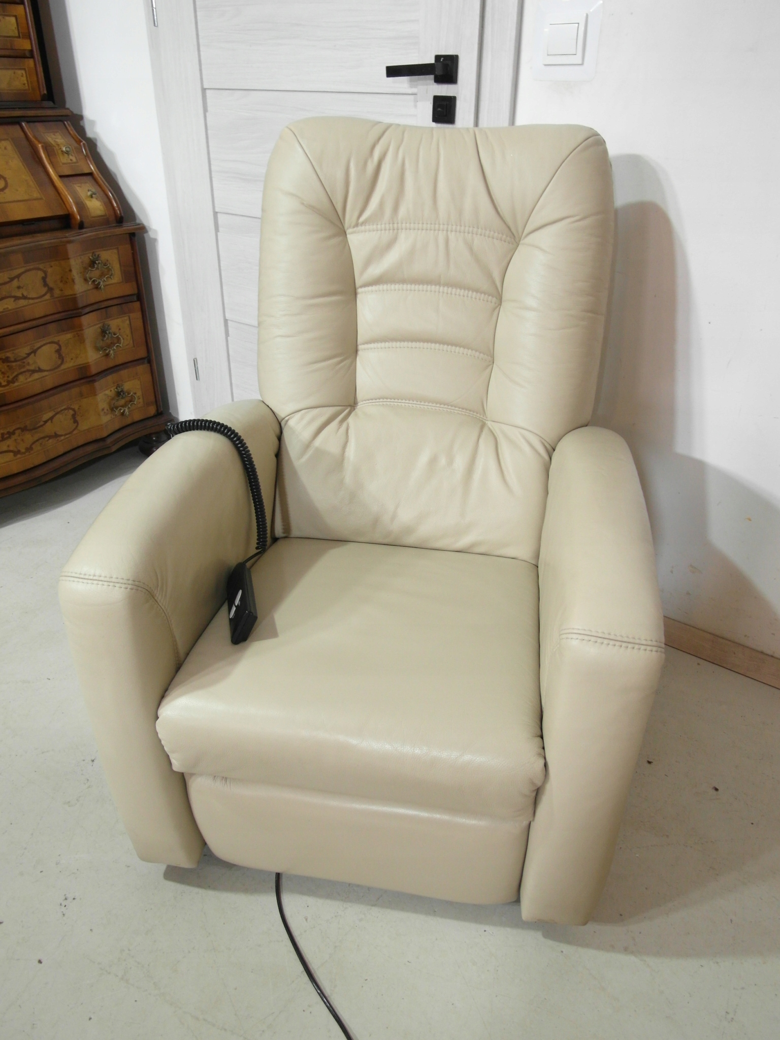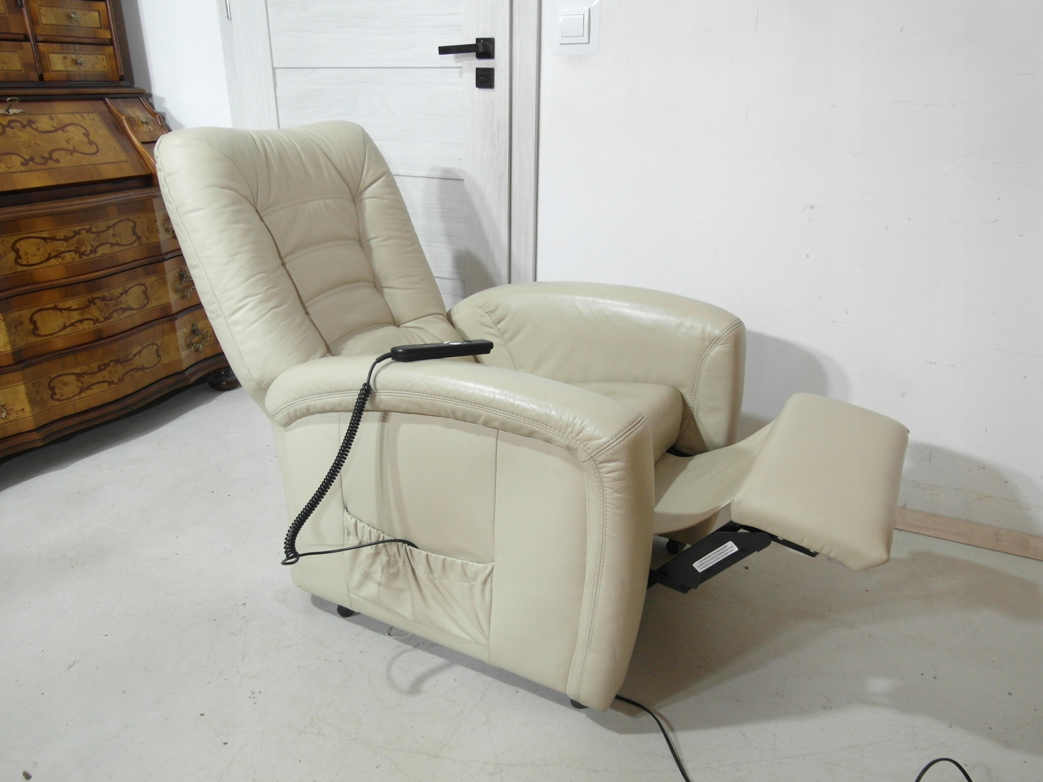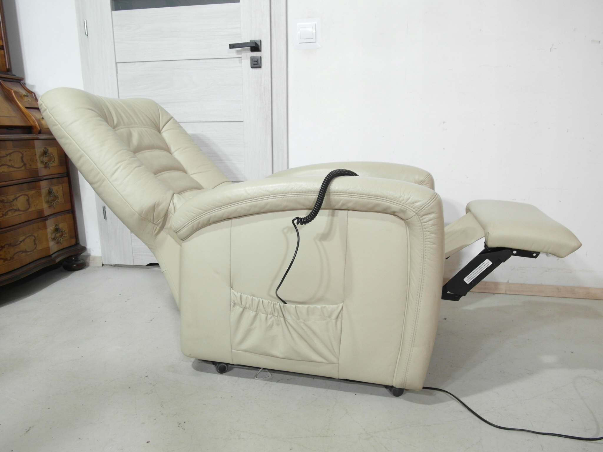 Opis: elektrycznie rozkładany fotel wypoczynkowy z funkcją wstawania