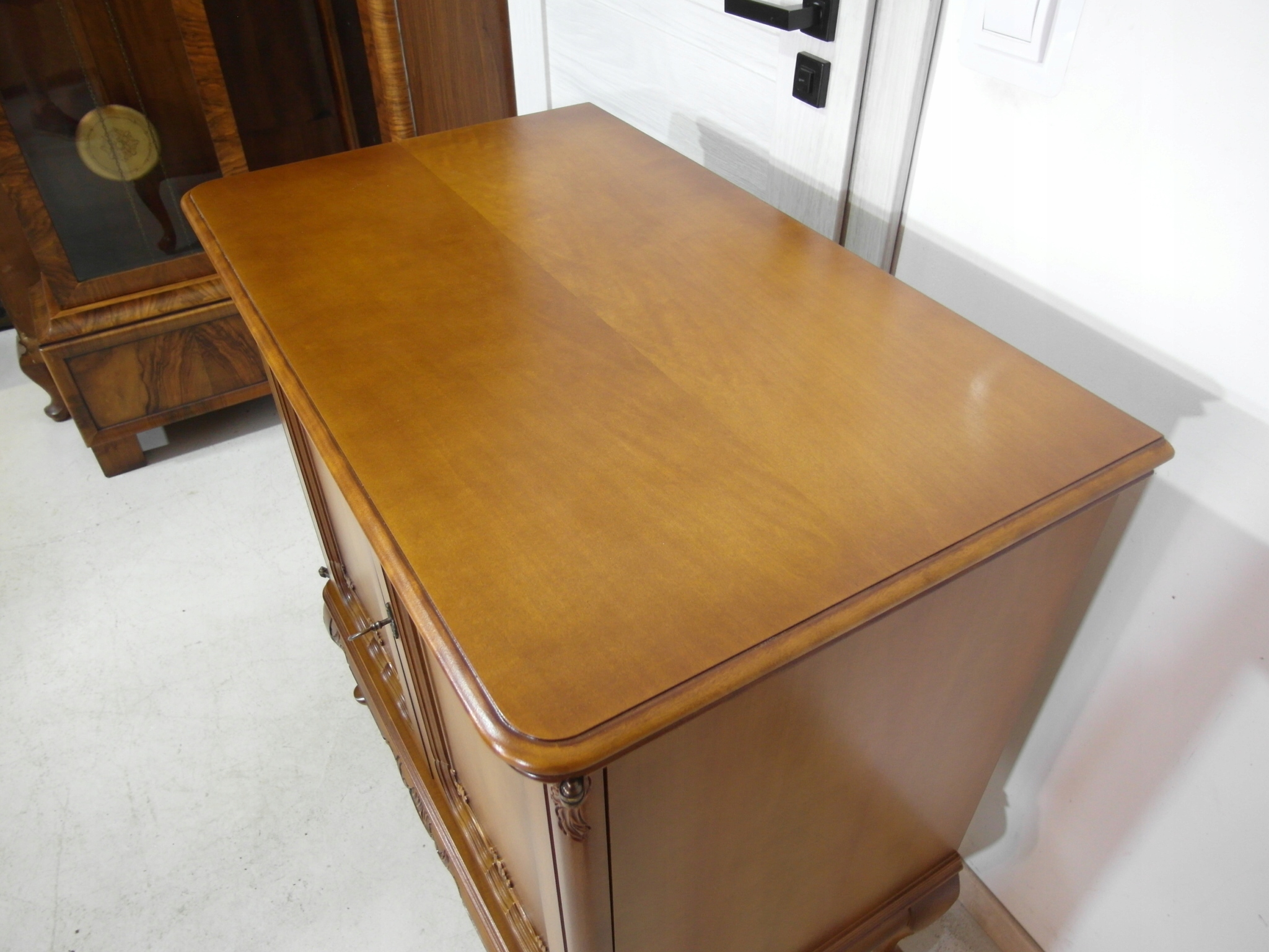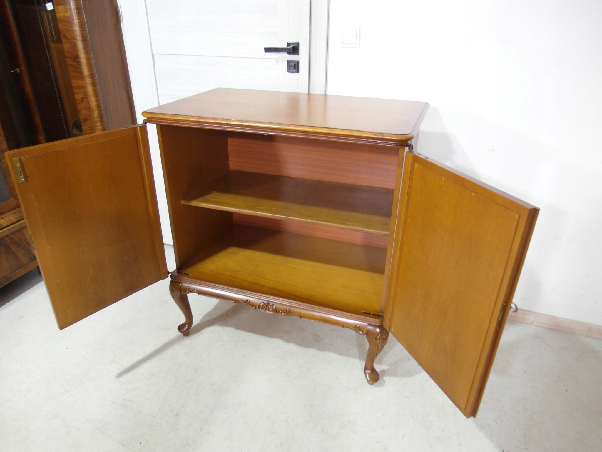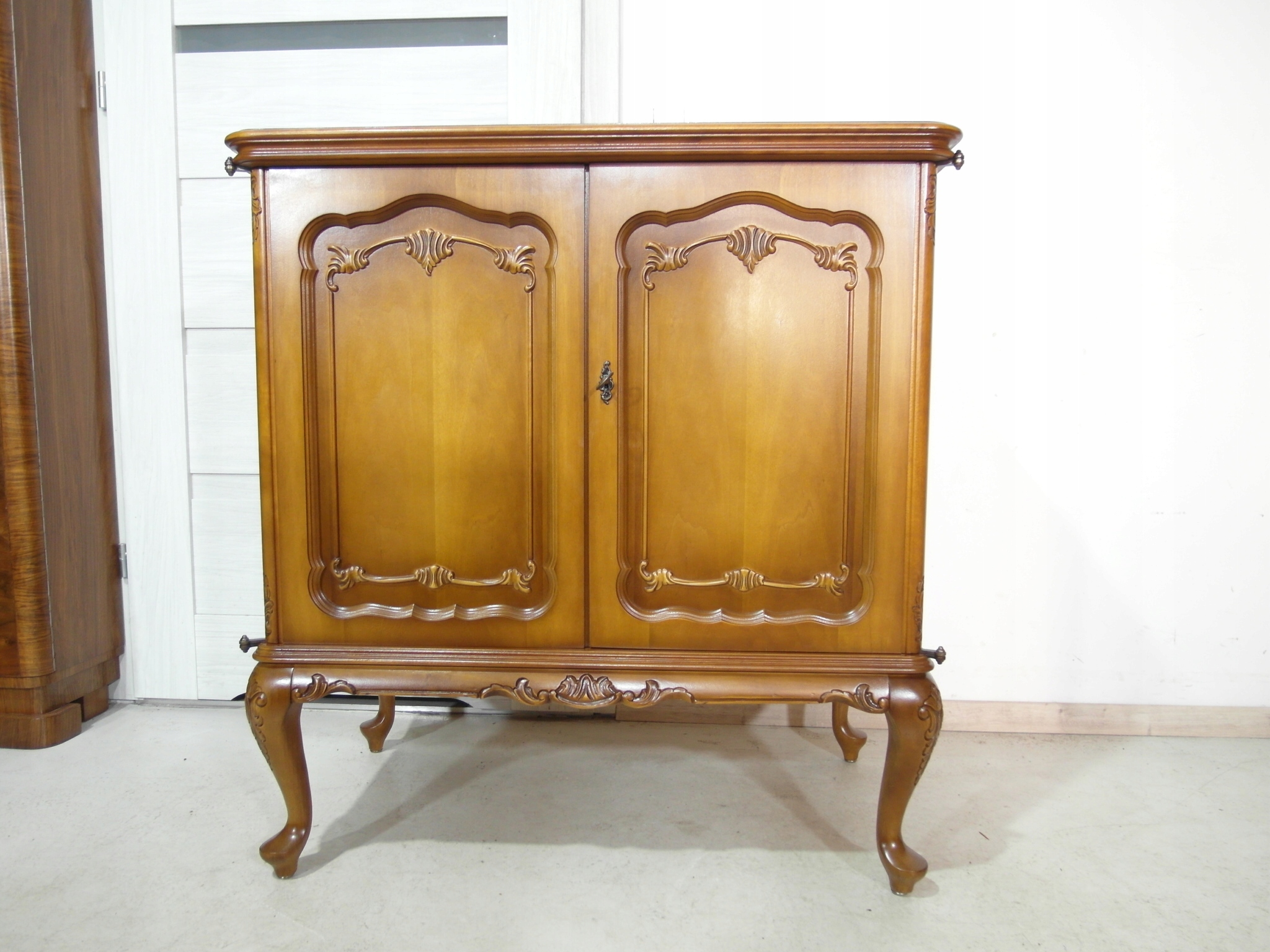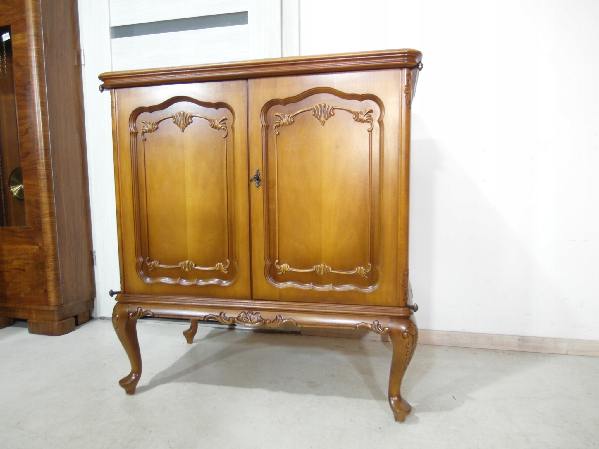 Opis: komoda z drzwiczkami – ludwikowska, ogromna , ale za to stabilna bardzo mocna ,drzwiczki można wyłożyć na boki