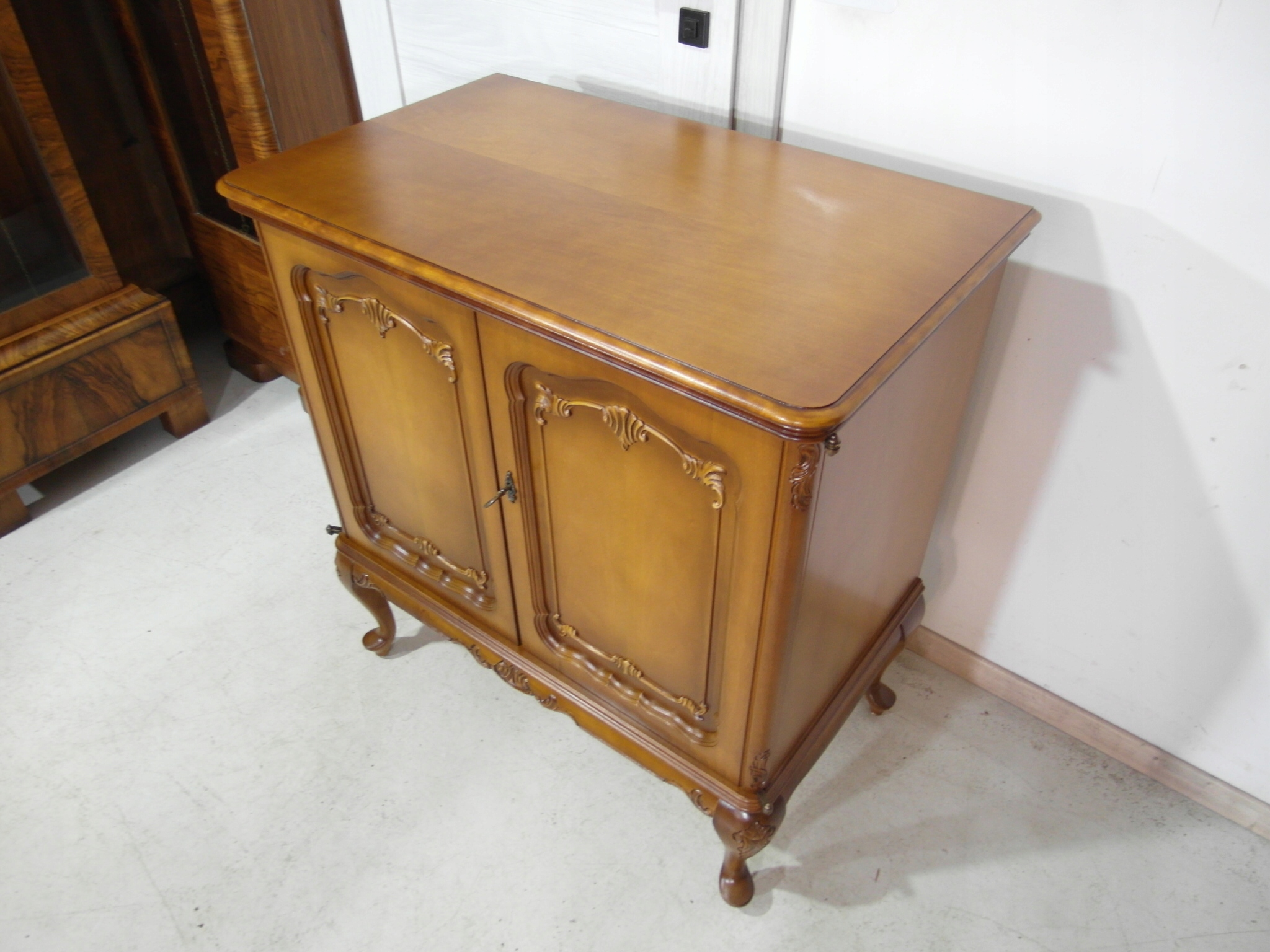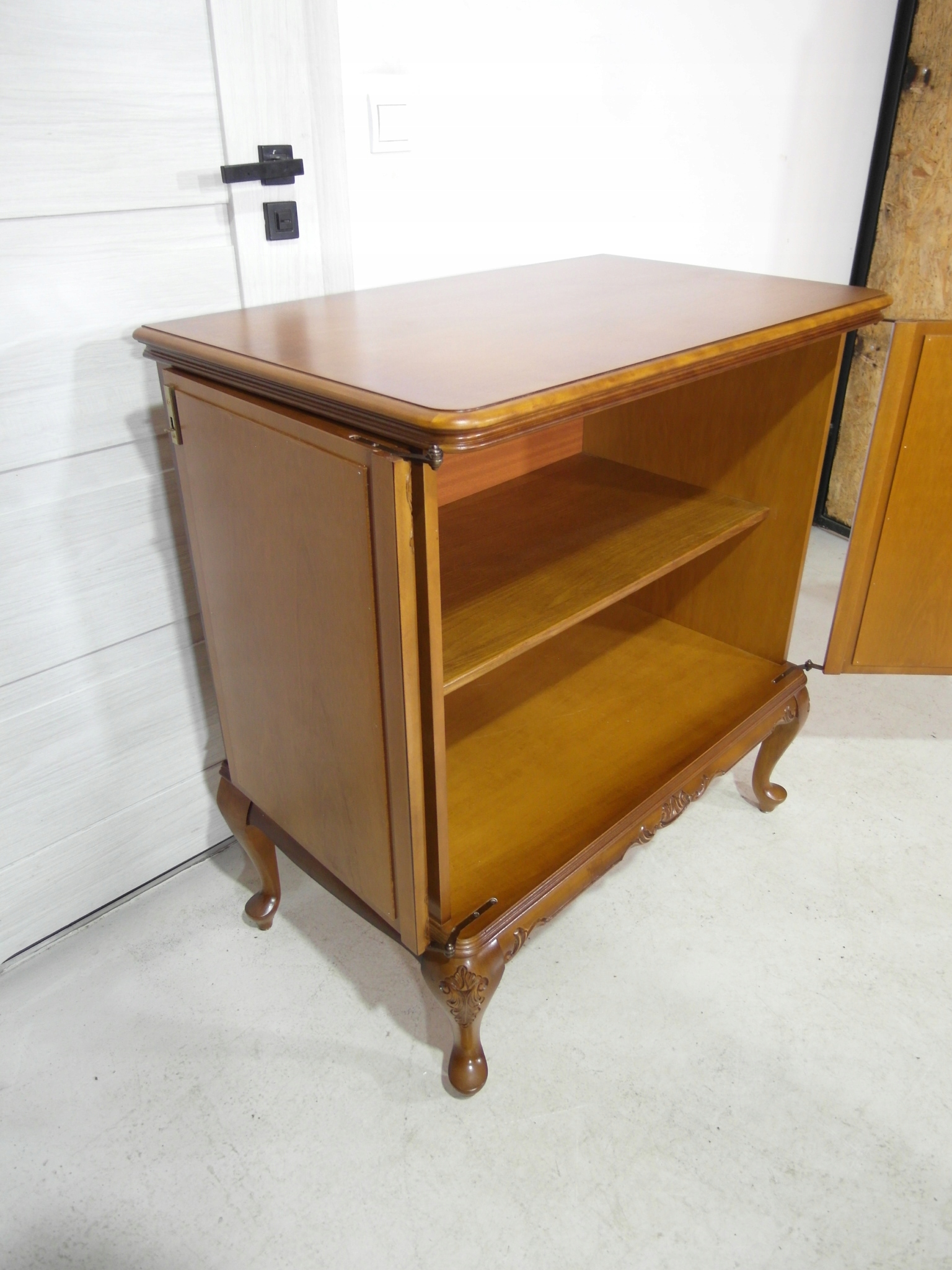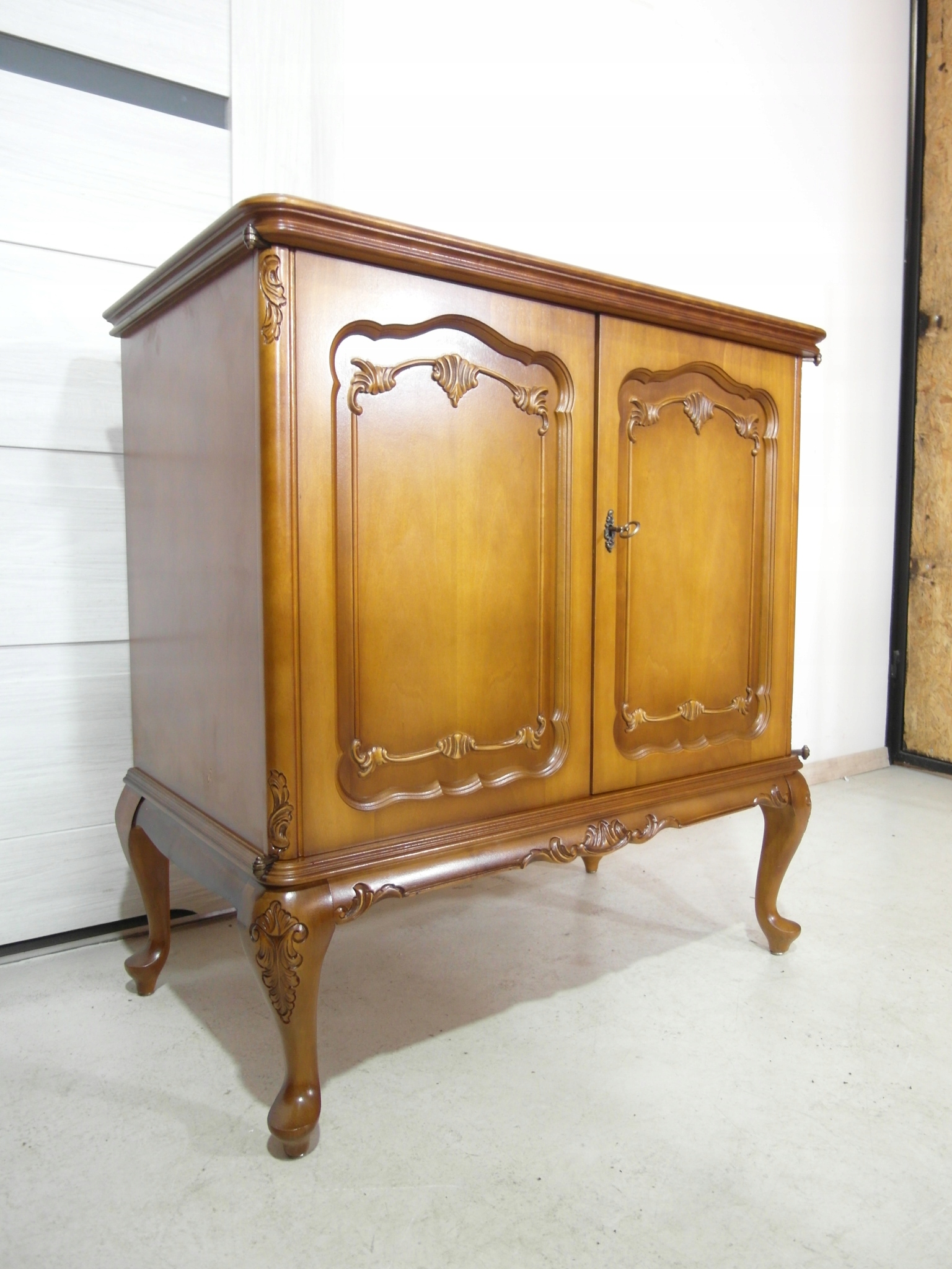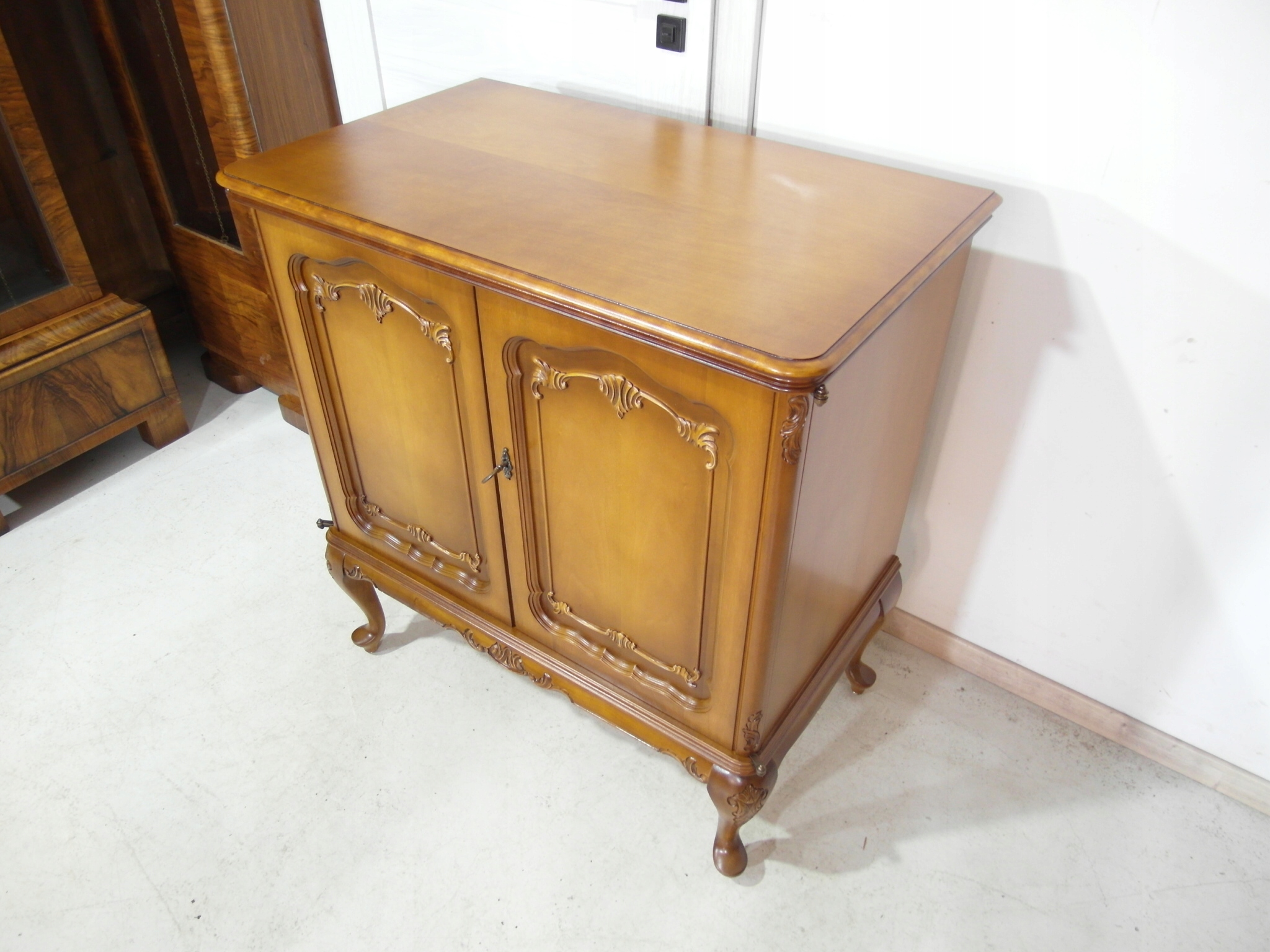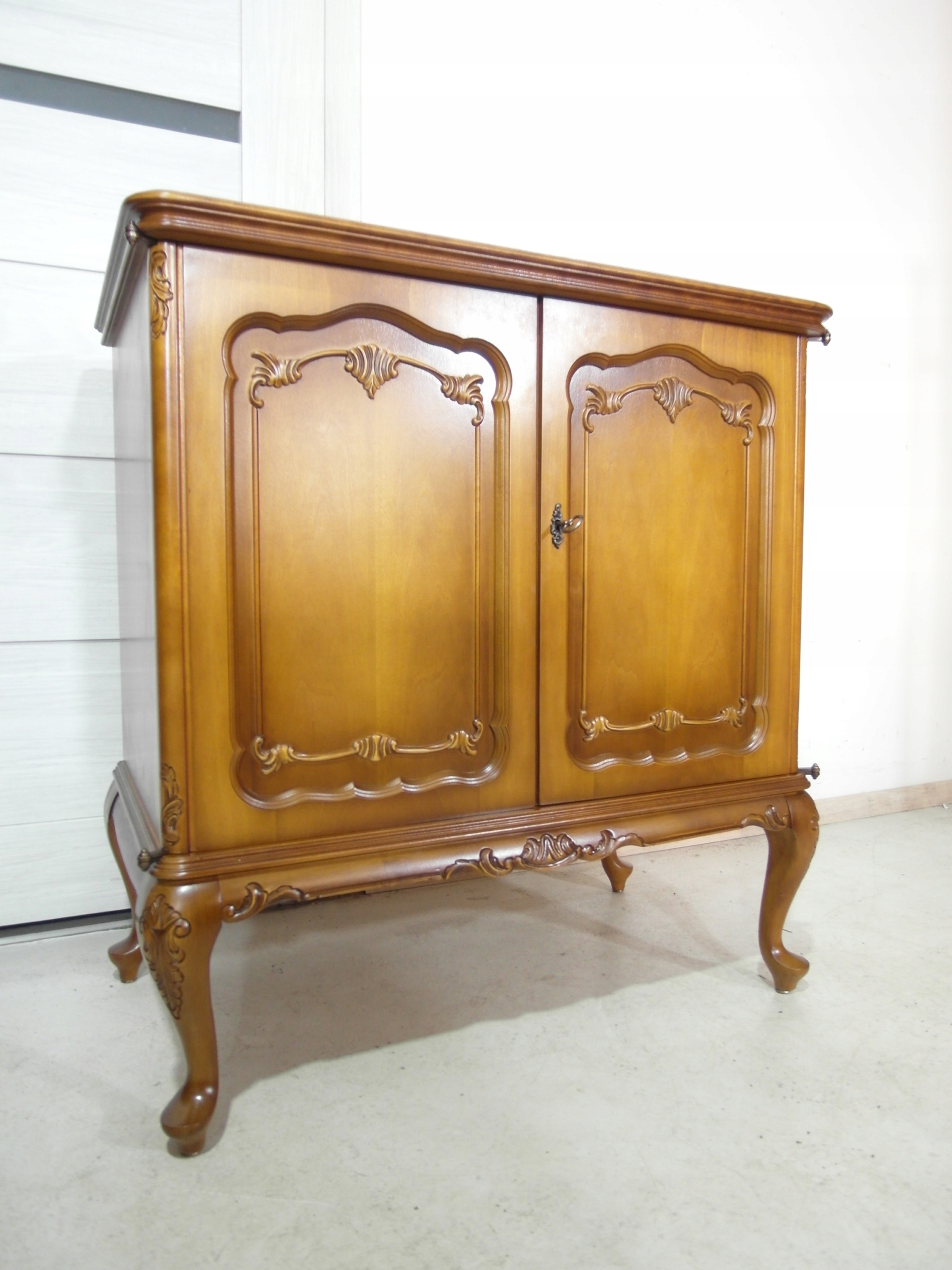 Opis: komoda z drzwiczkami – ludwikowska, ogromna , ale za to stabilna bardzo mocna ,drzwiczki można wyłożyć na boki