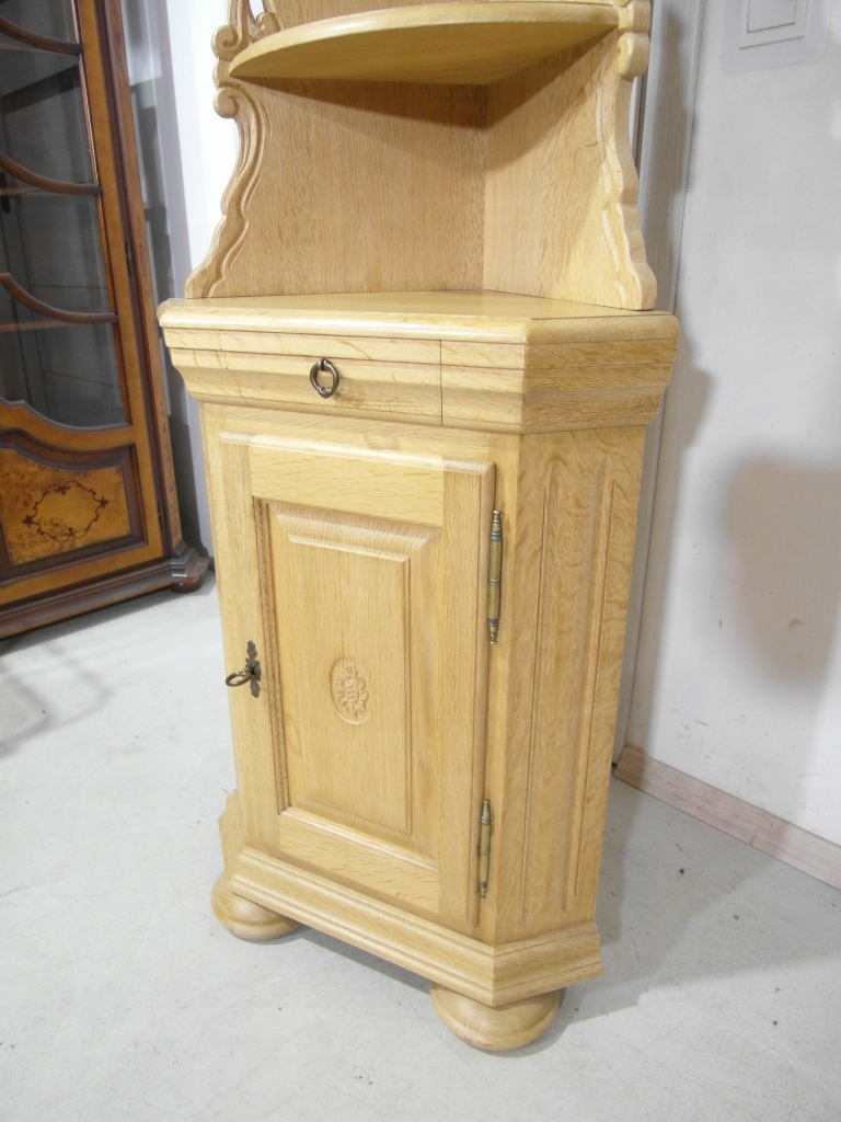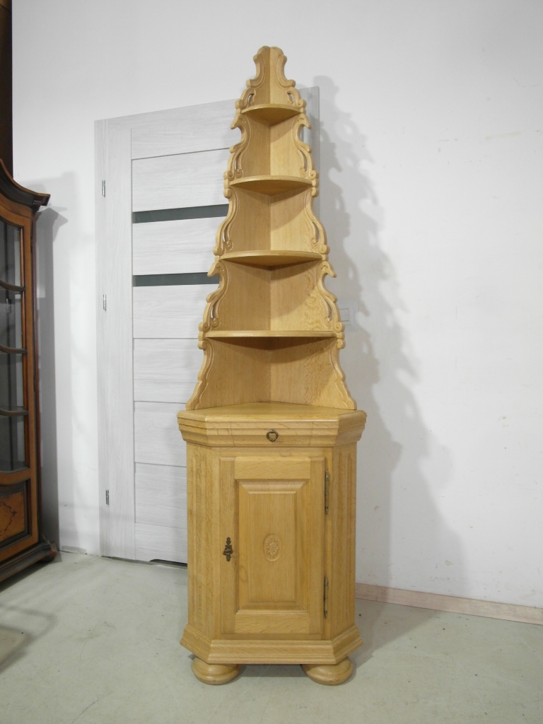 Opis: narożna komoda z drzwiczkami zamykana na kluczyk
