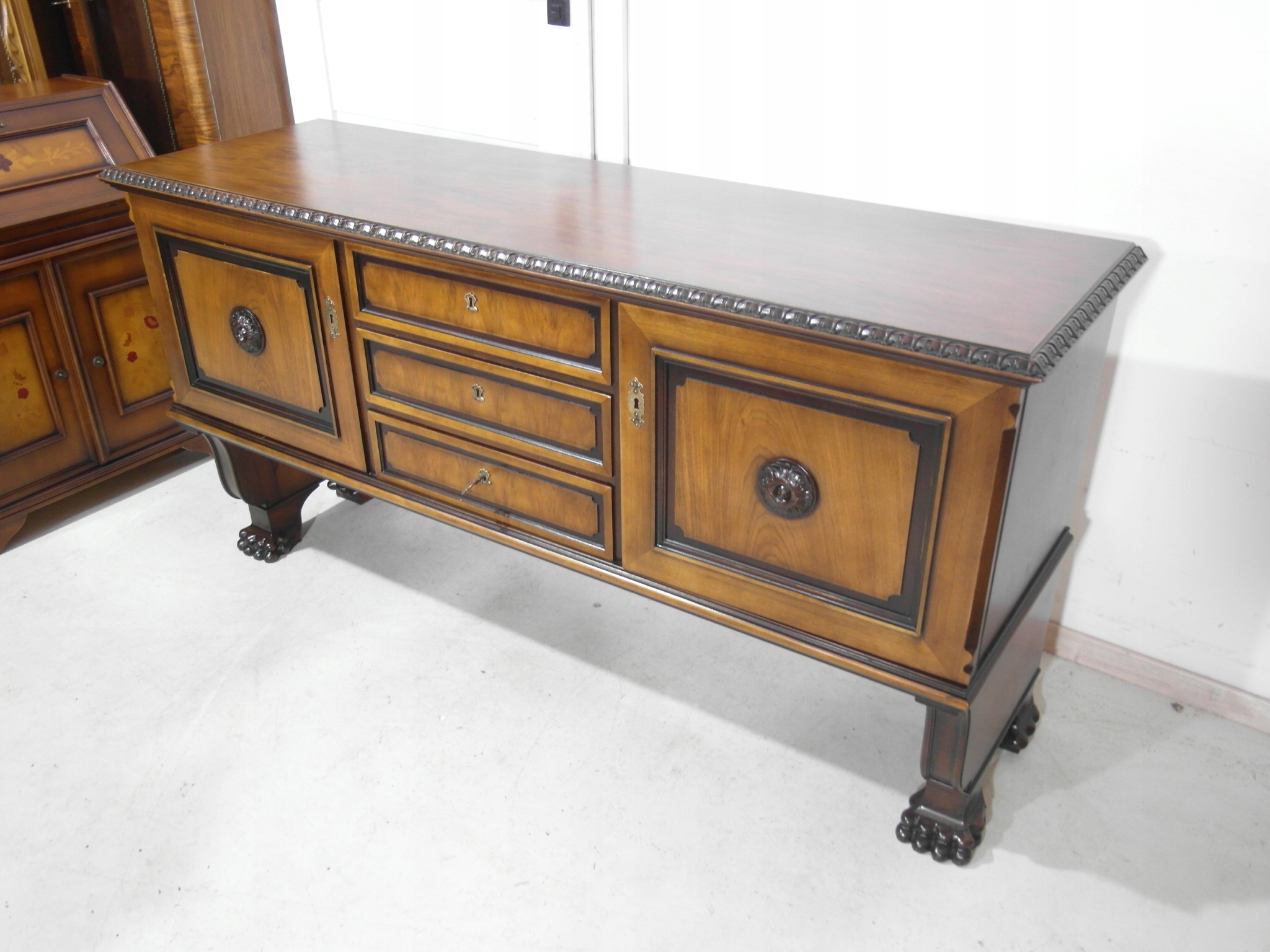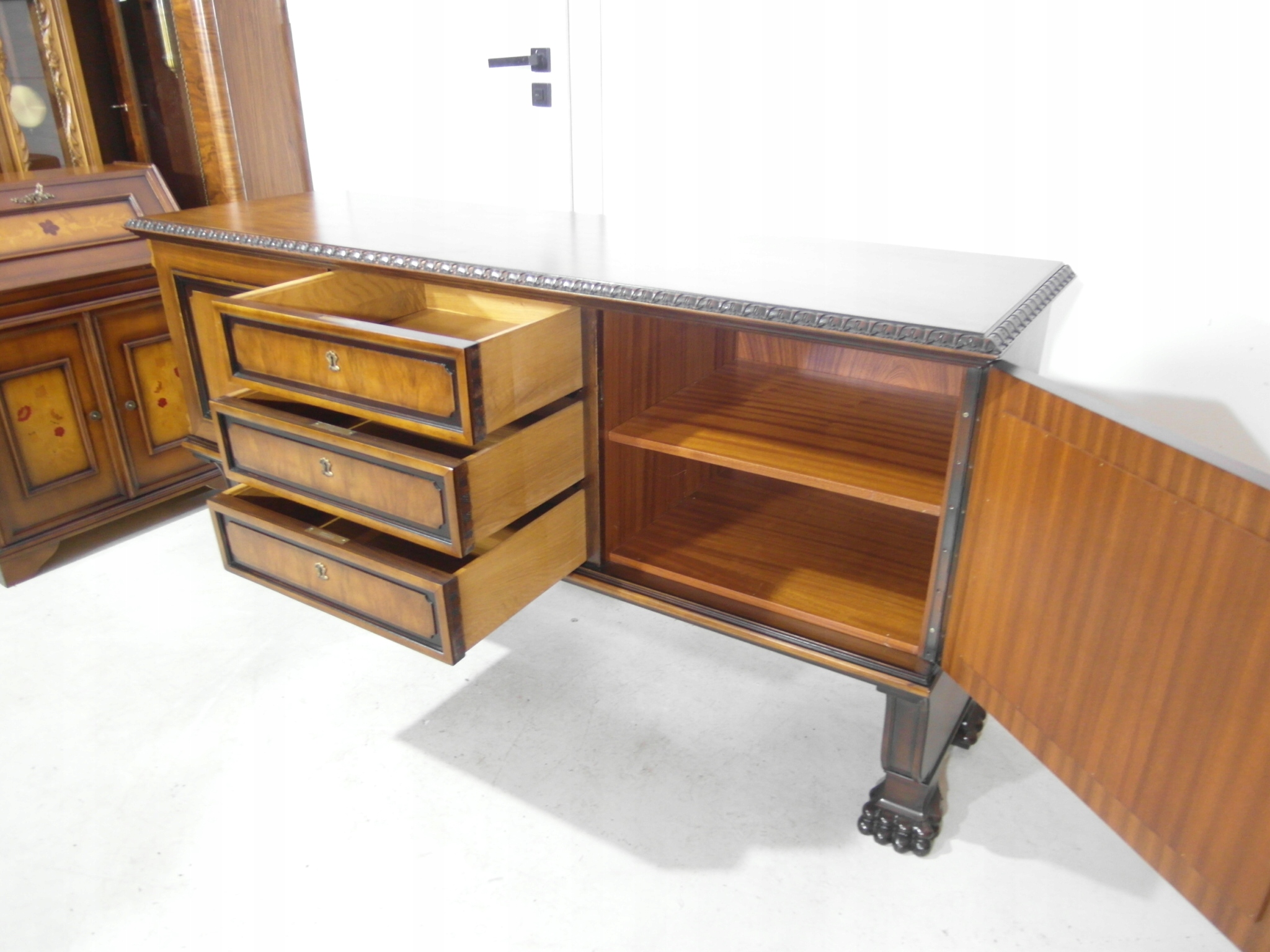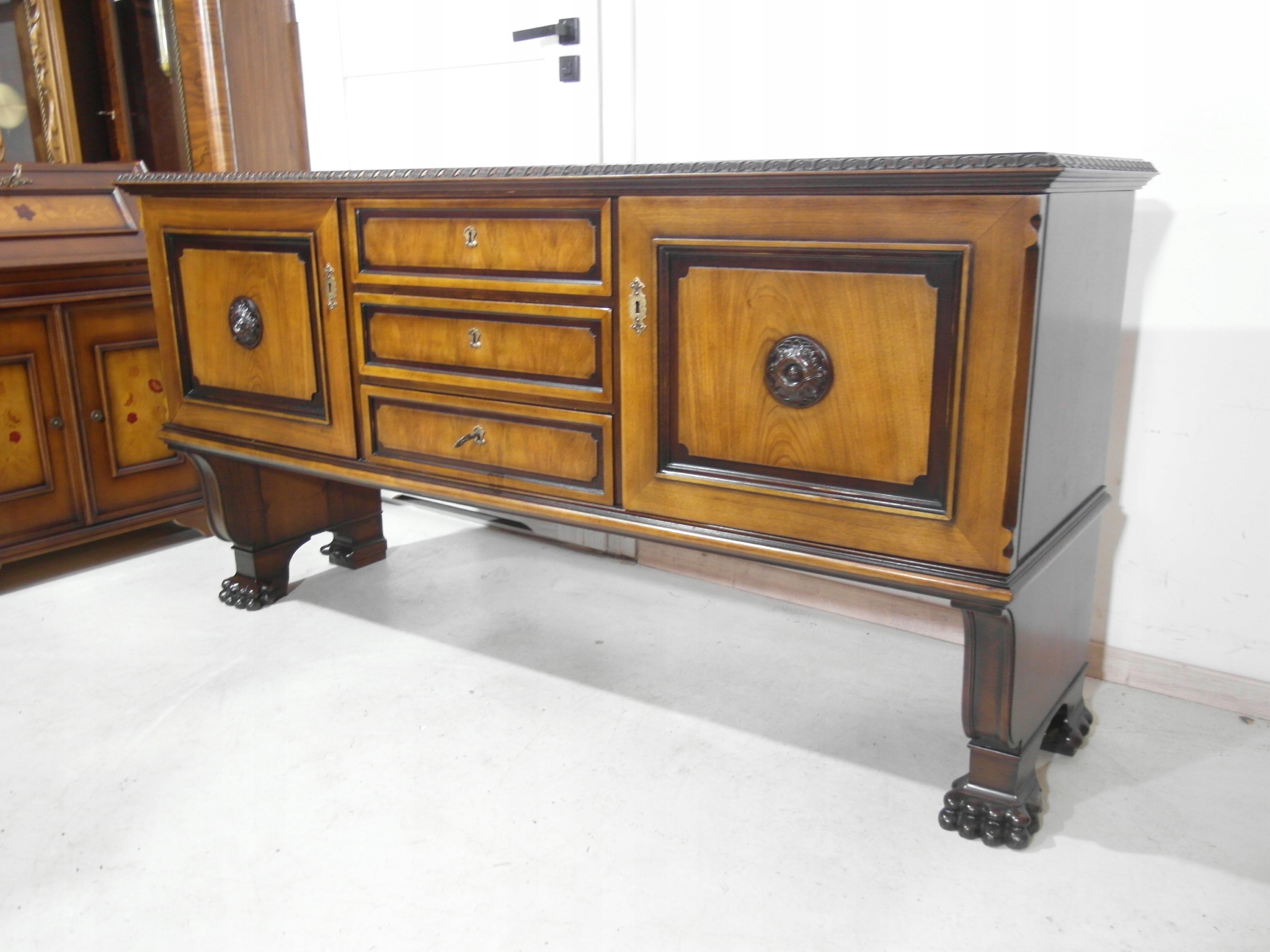 Opis: komoda z drzwiczkami , bardzo stabilna i pojemna , oryginalna , z szufladami , w środku półeczki