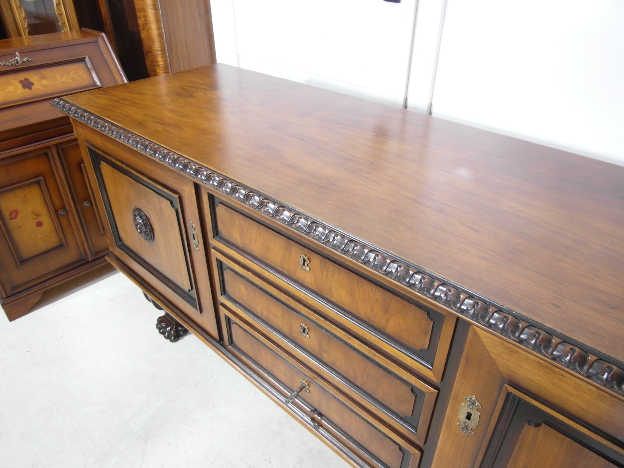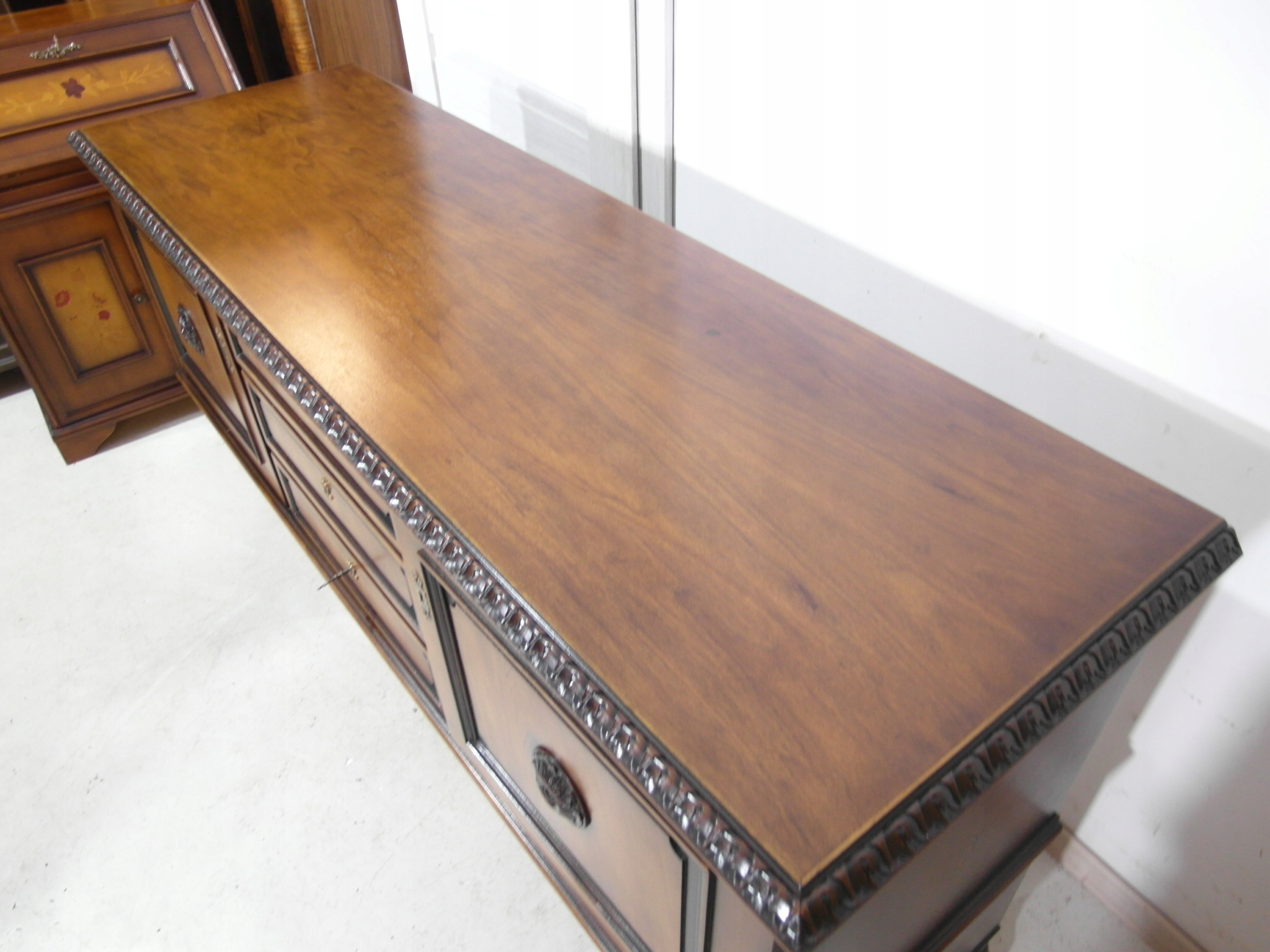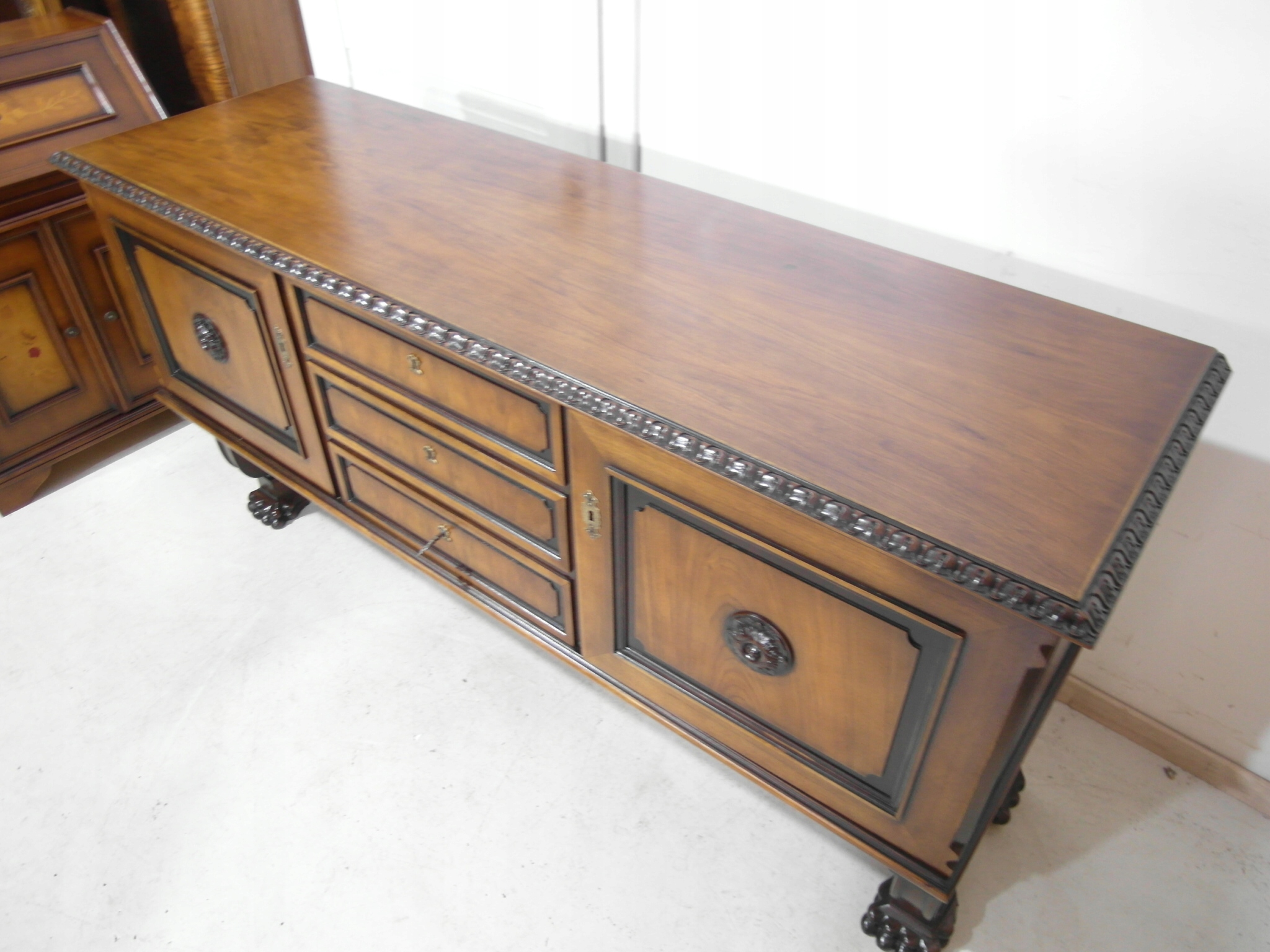 Opis: komoda z drzwiczkami , bardzo stabilna i pojemna , oryginalna , z szufladami , w środku półeczki