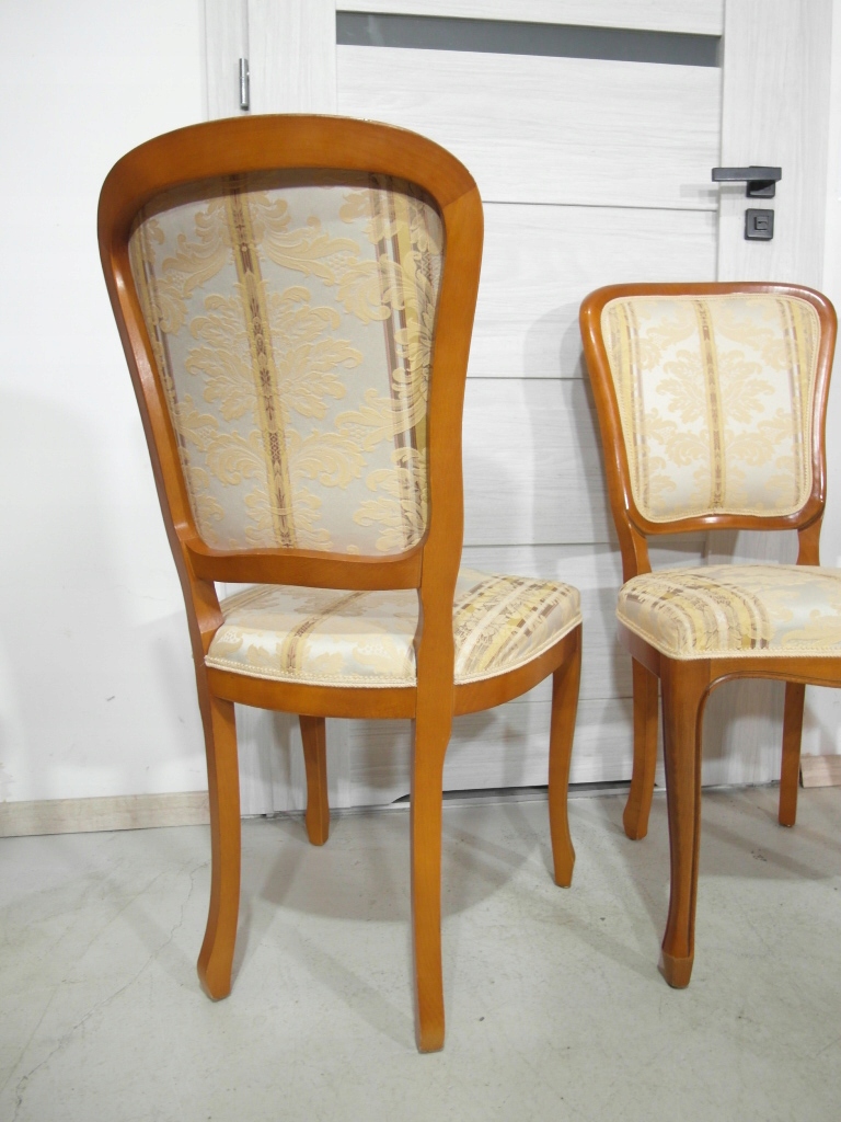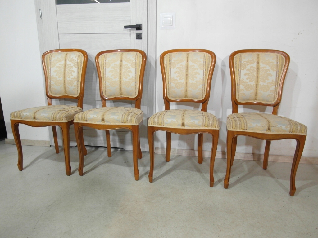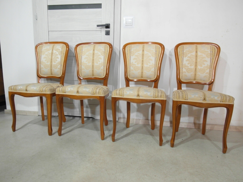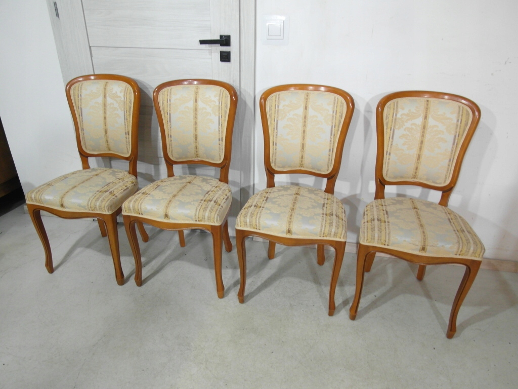 komplet 4 krzeseł , w super stanie , z drewna , materiał obszyci owy w super stanie żadnych uszkodzeń