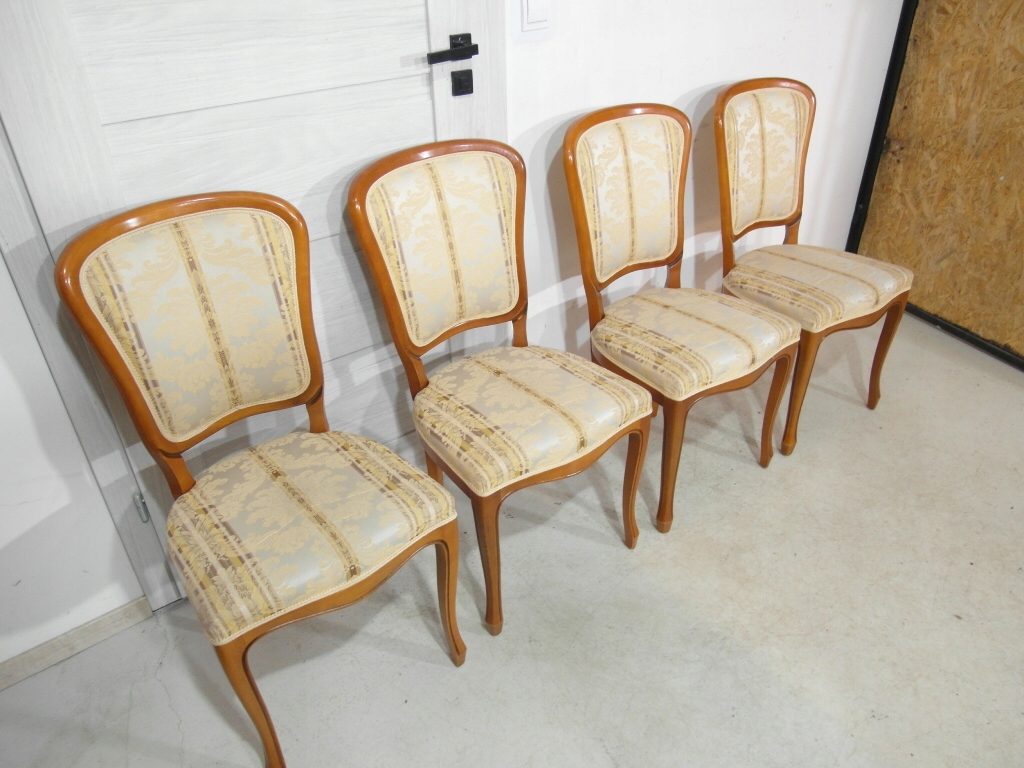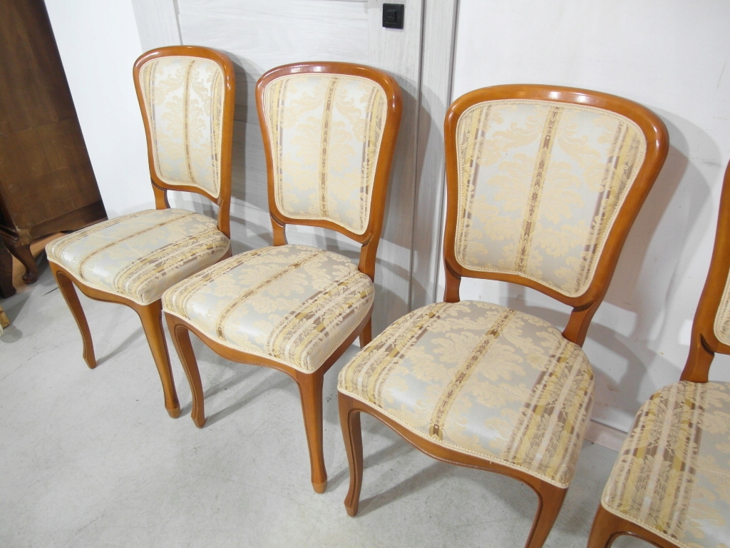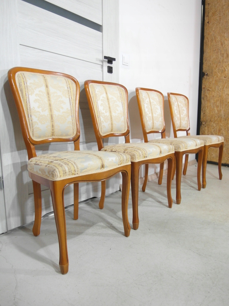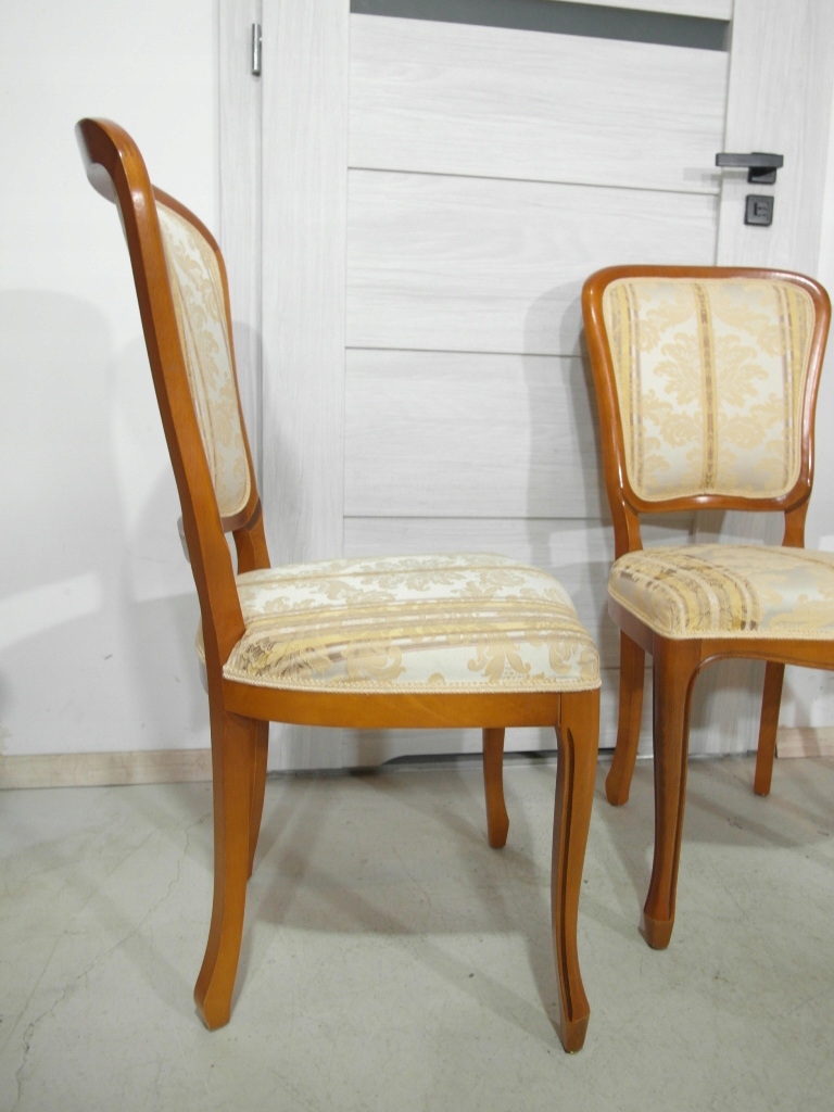 komplet 4 krzeseł , w super stanie , z drewna , materiał obszyci owy w super stanie żadnych uszkodzeń