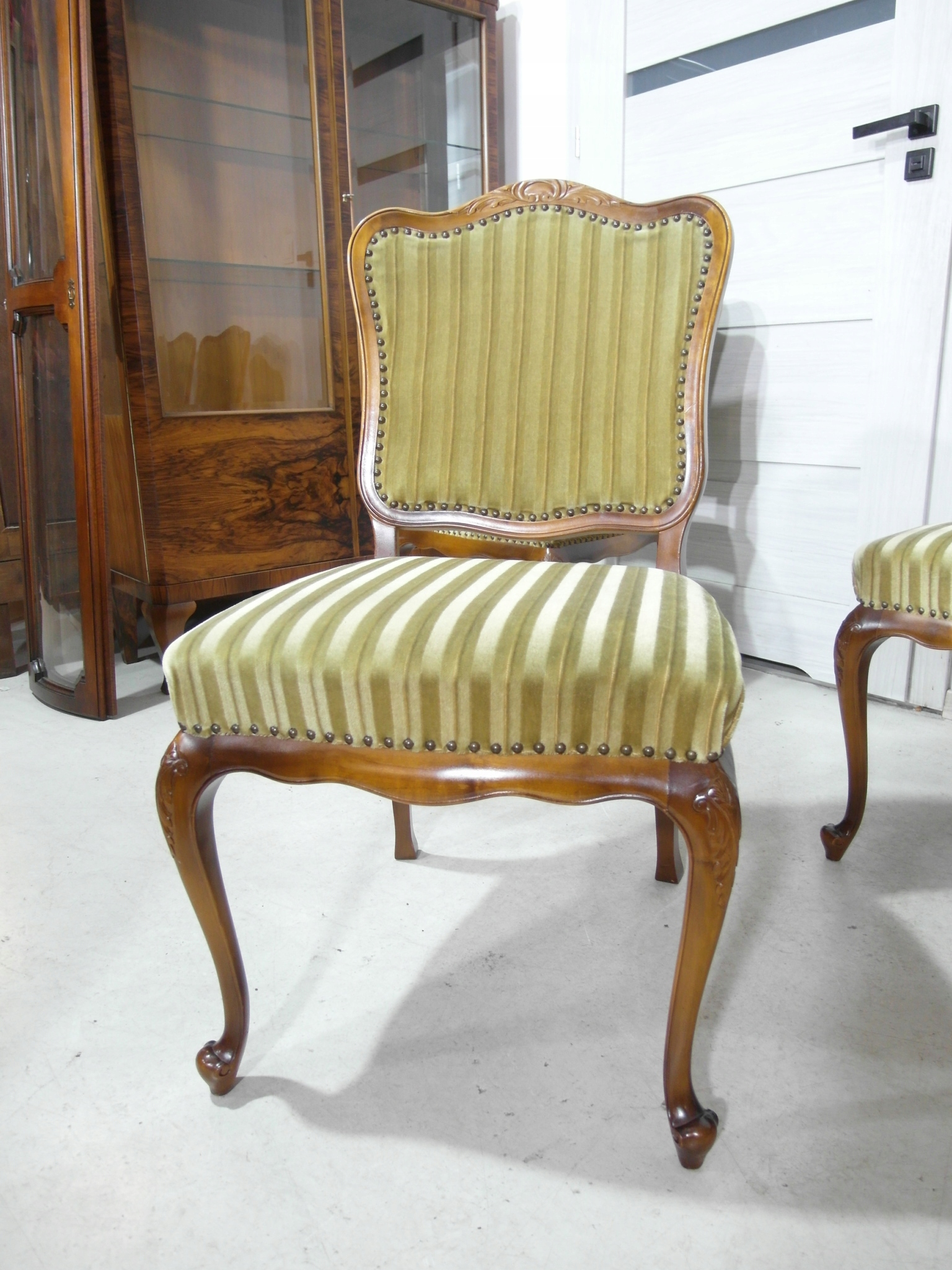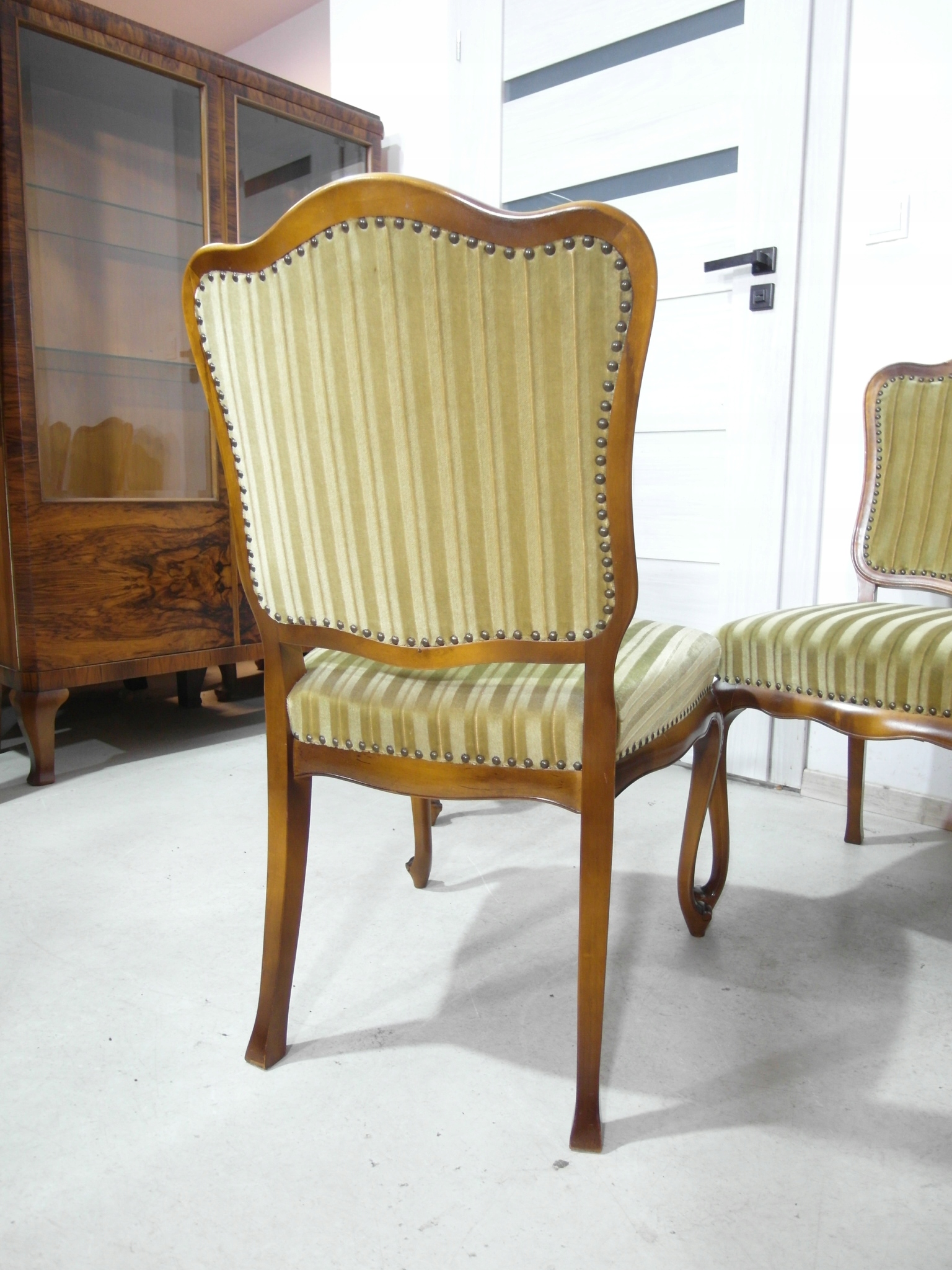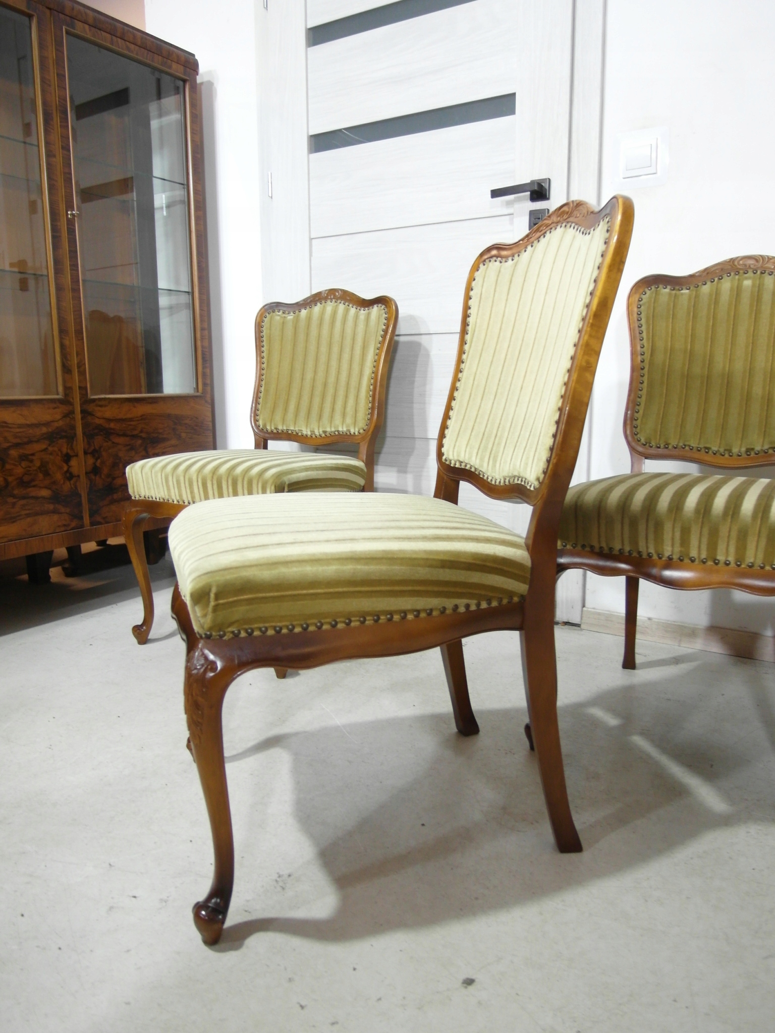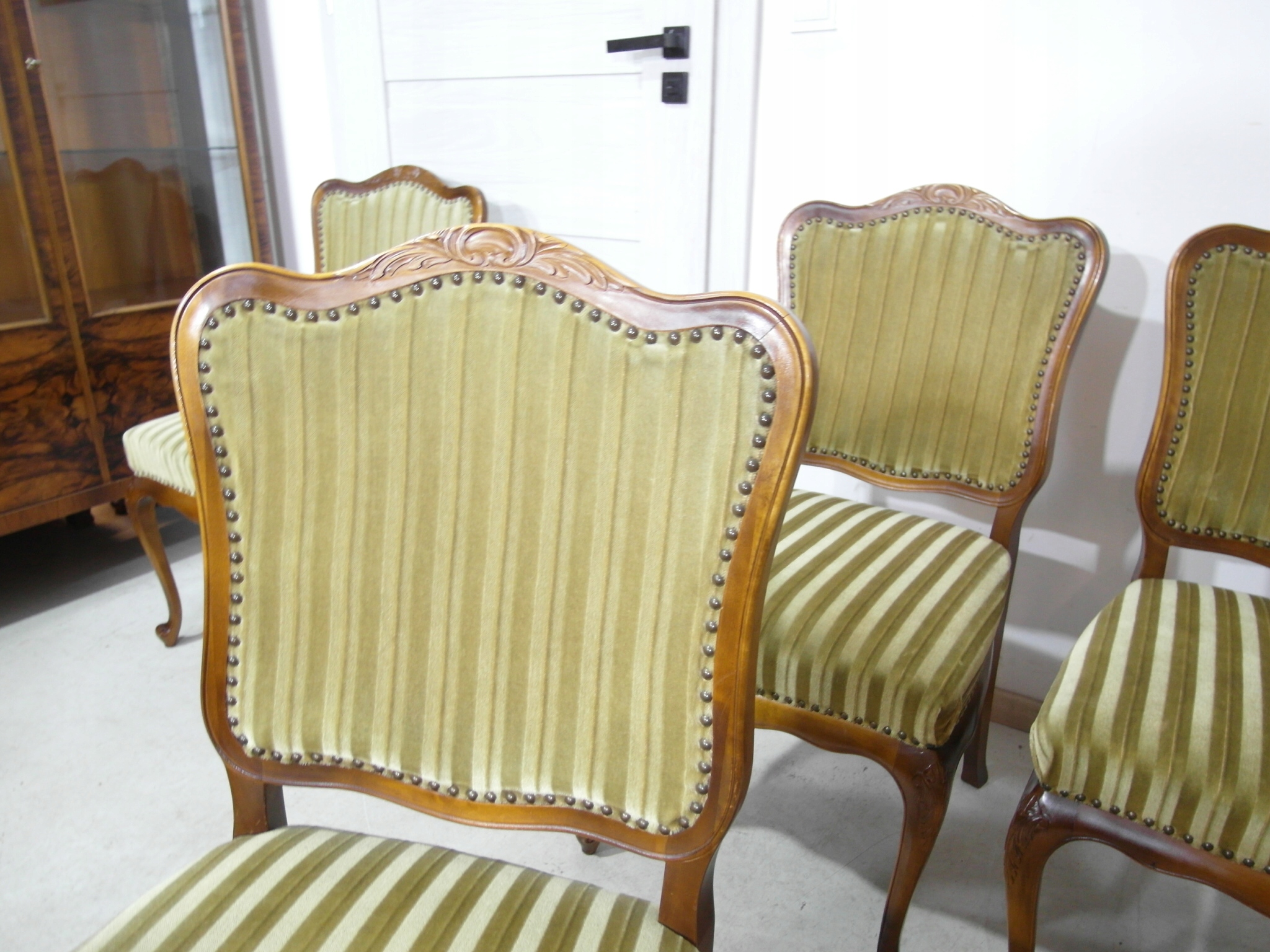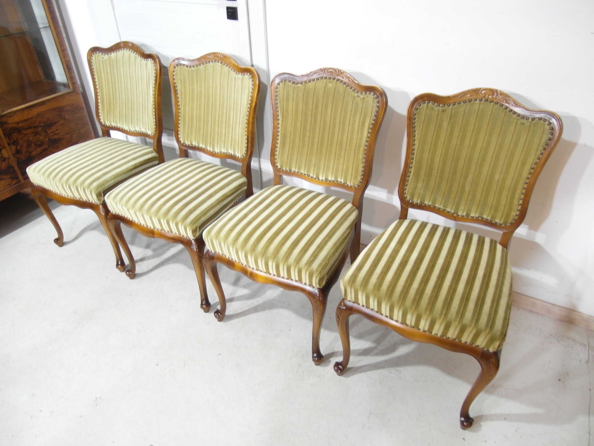 komplet 4 krzeseł , w super stanie , z drewna , materiał obszyci owy w super stanie żadnych uszkodzeń