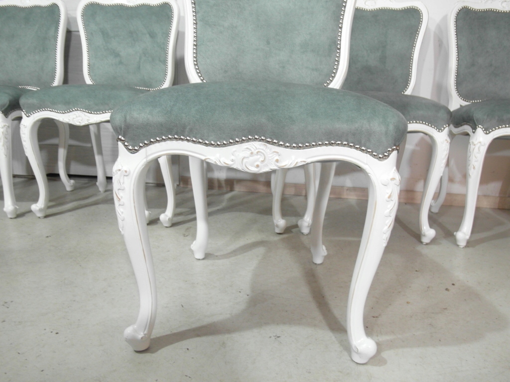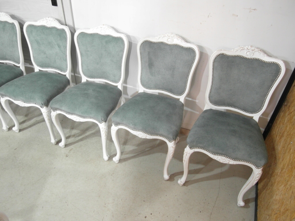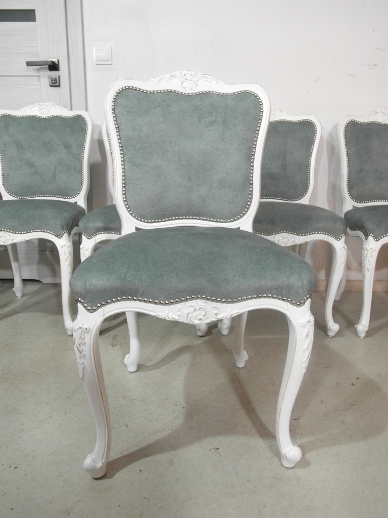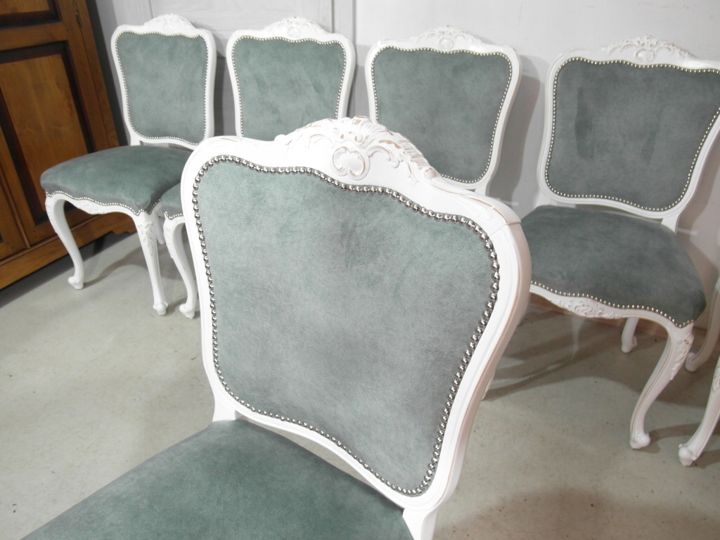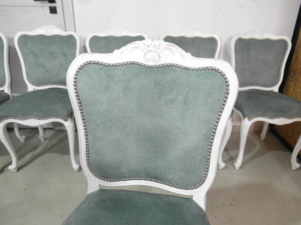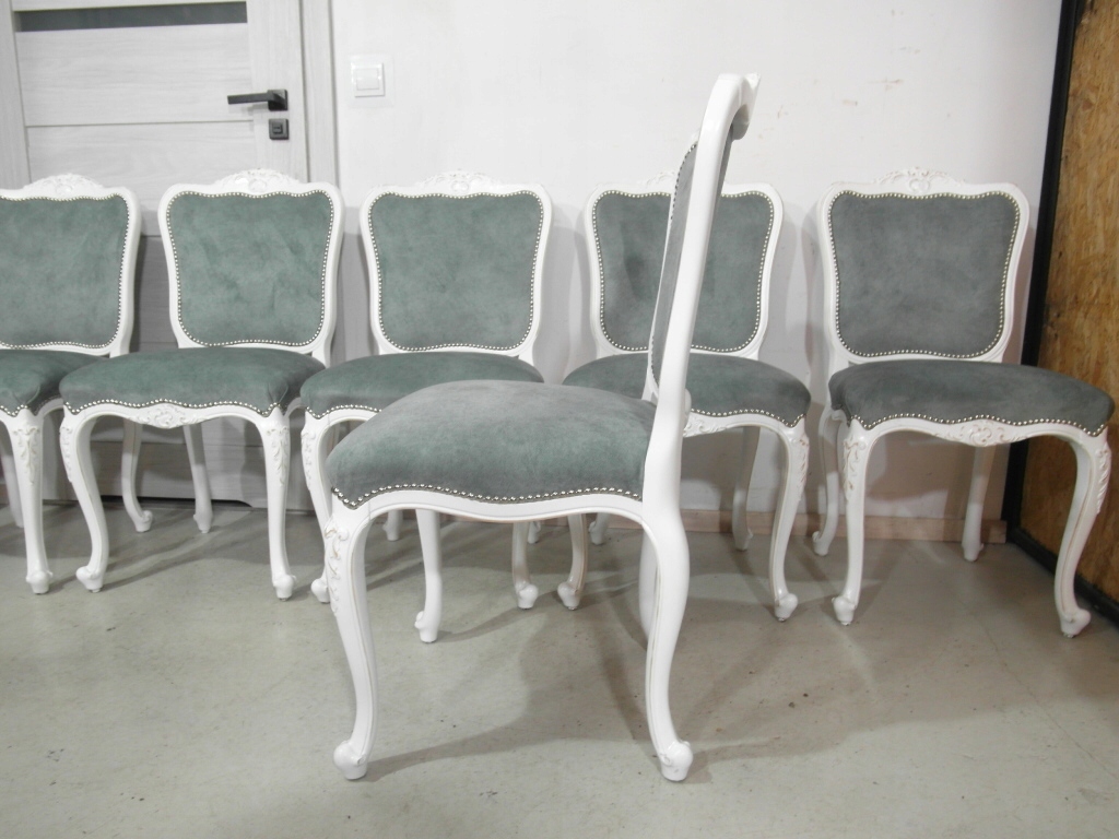 komplet 6 krzeseł , w super stanie krzesła po renowacji na nowo pomalowane na biało z przecierką , materiał obszyciowy nowy