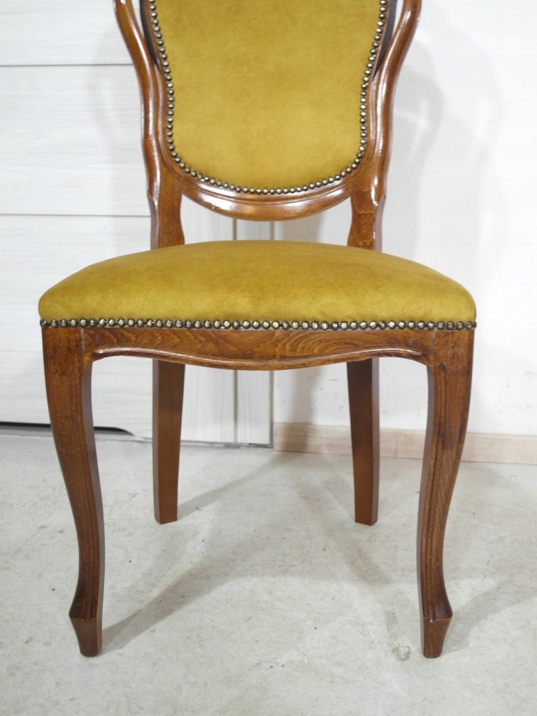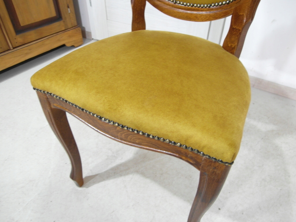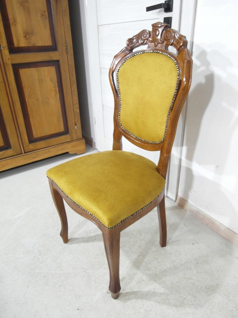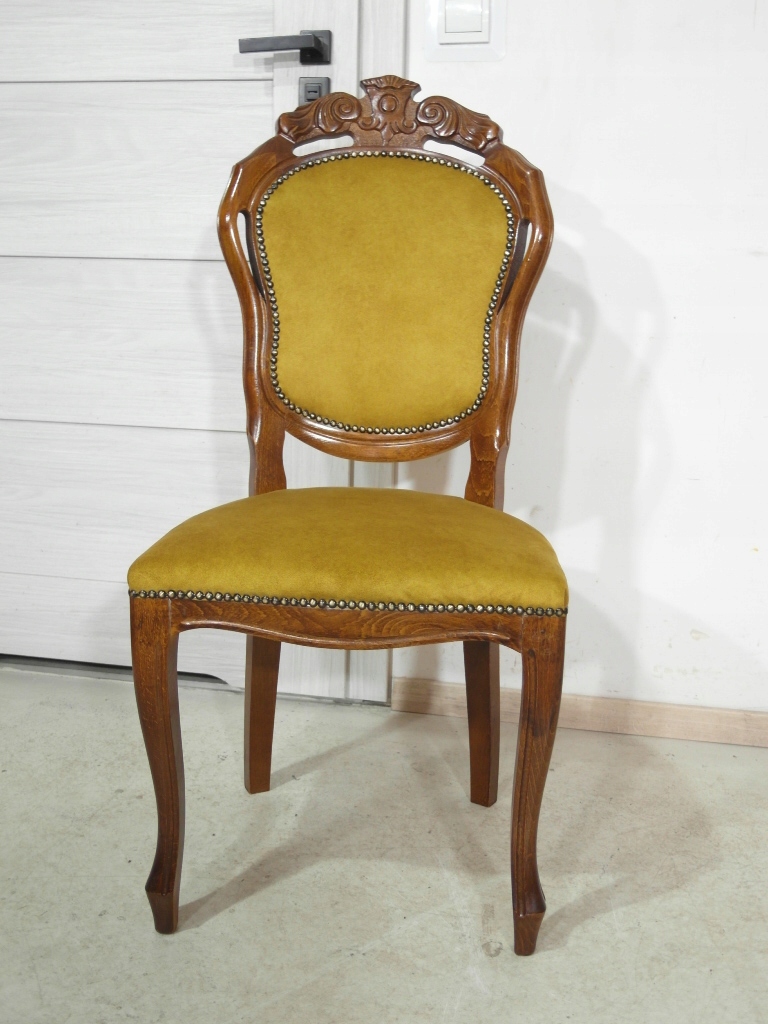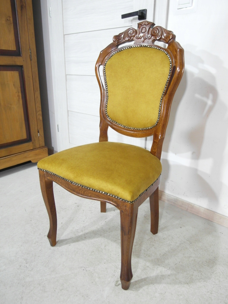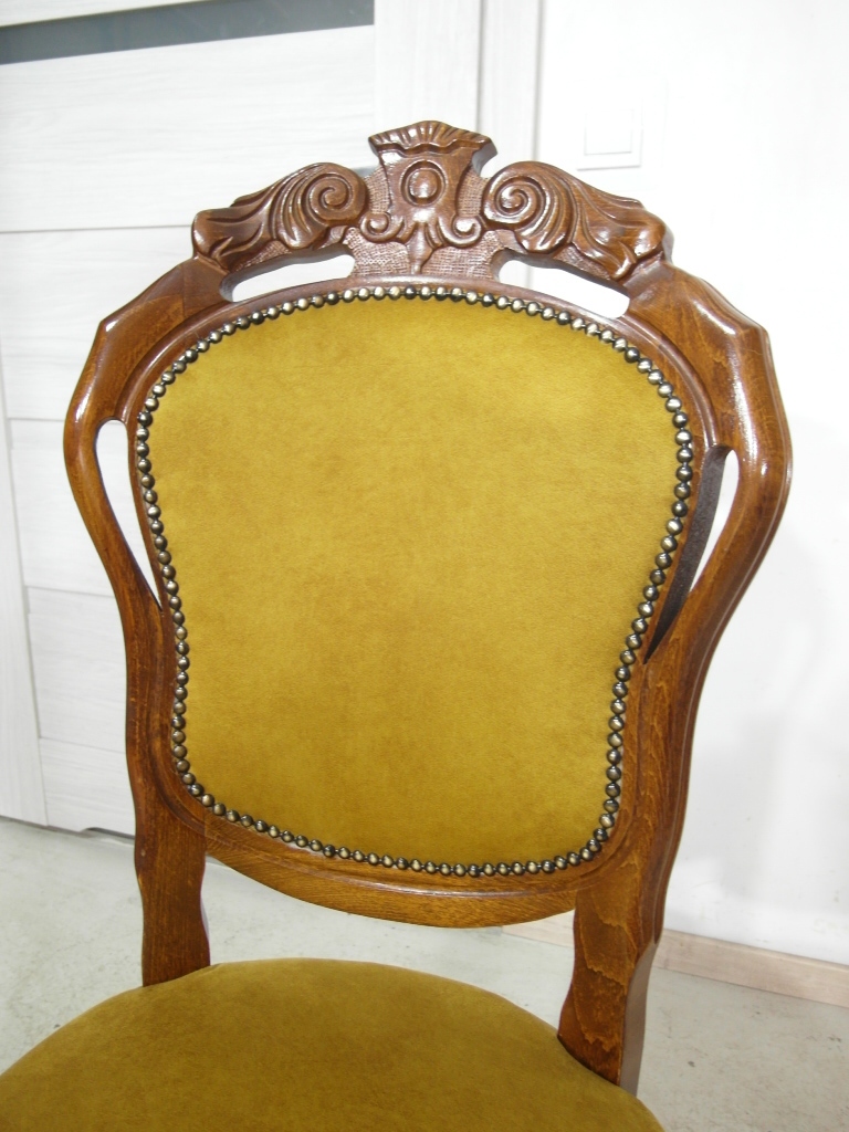 Opis: krzesło w idealnym stanie , siedzisko pokryte materiałem – materiał nowy, drewno po renowacji