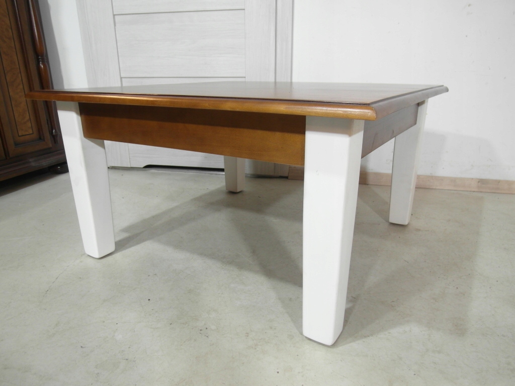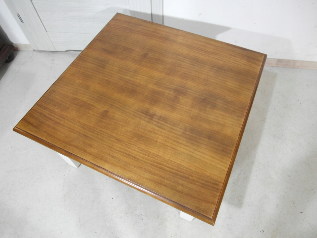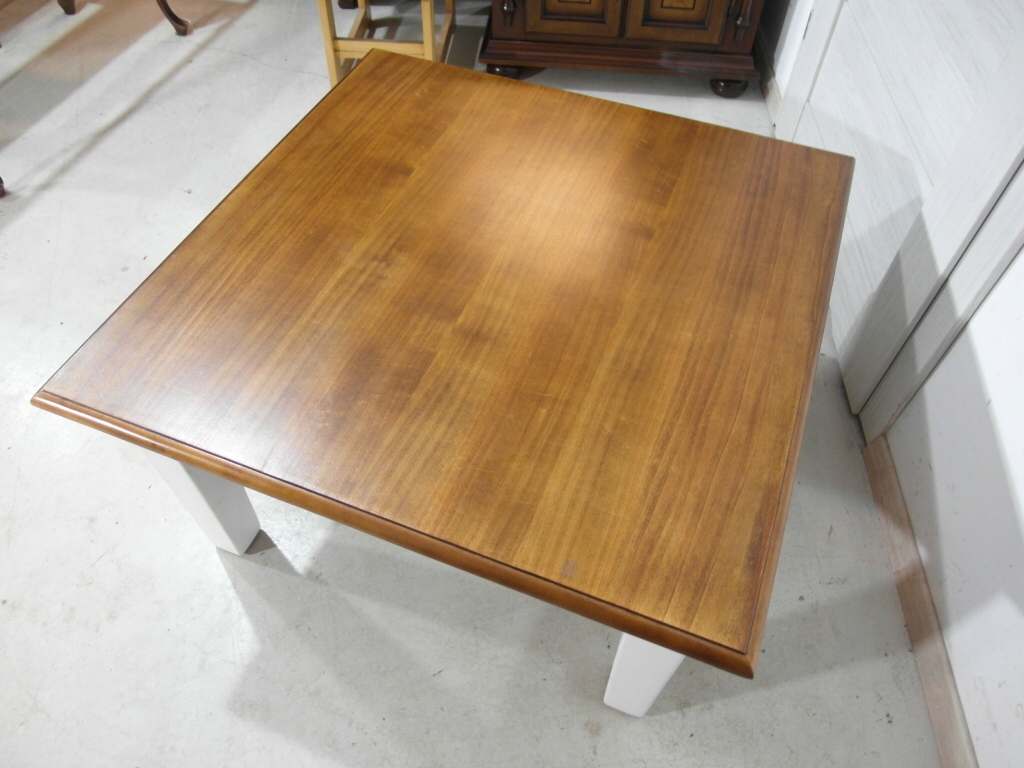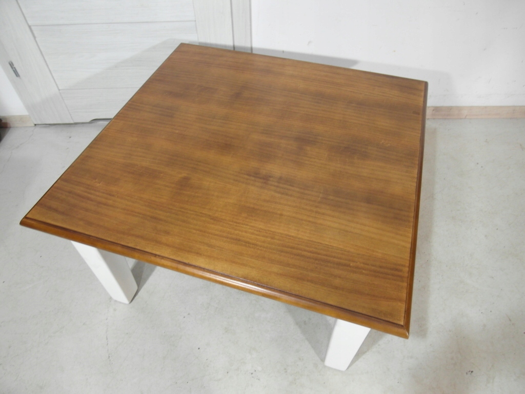 Opis: kwadratowa ława z przepięknym blatem , mocna i ciężka zarazem – z litego drewna