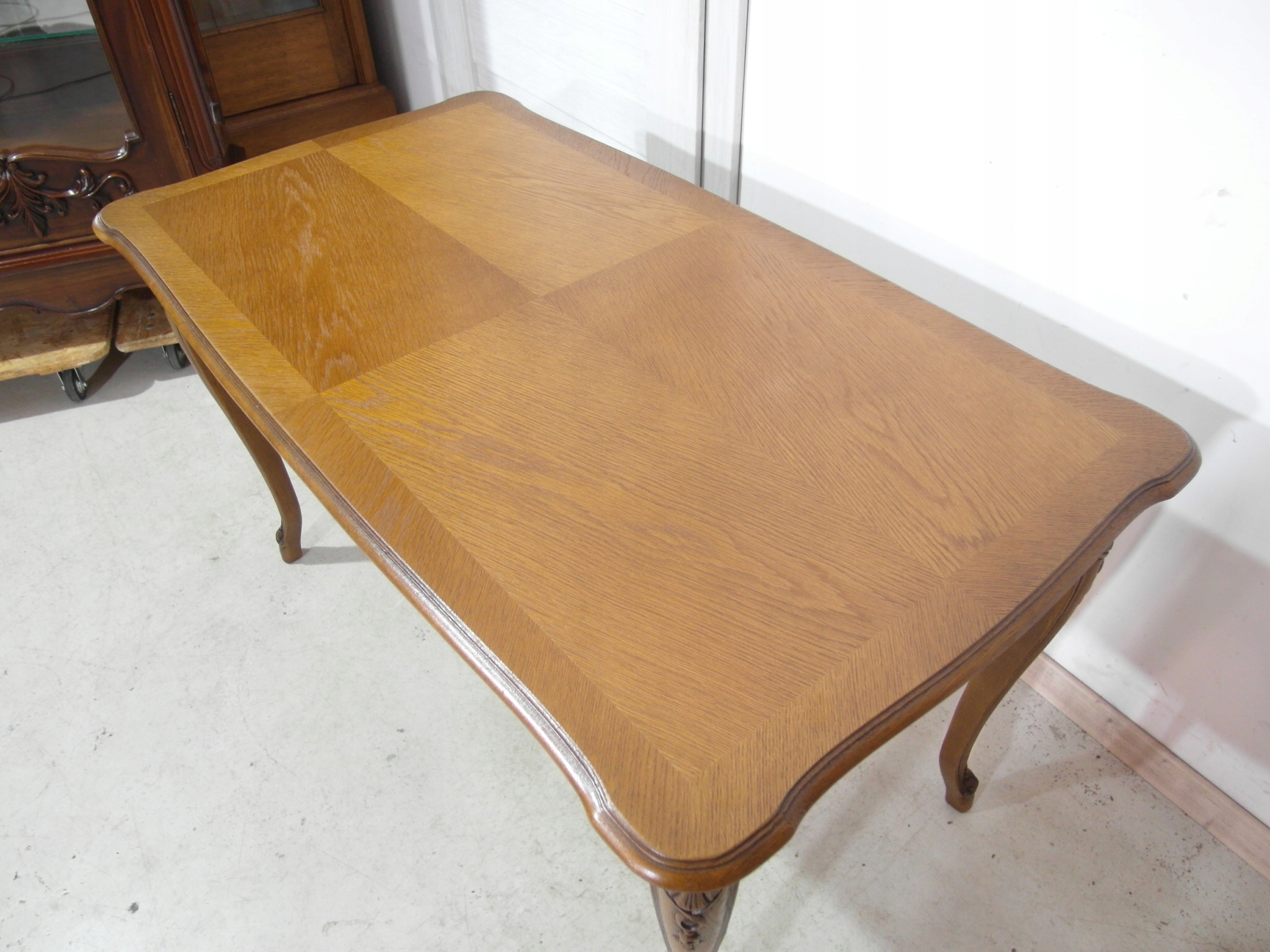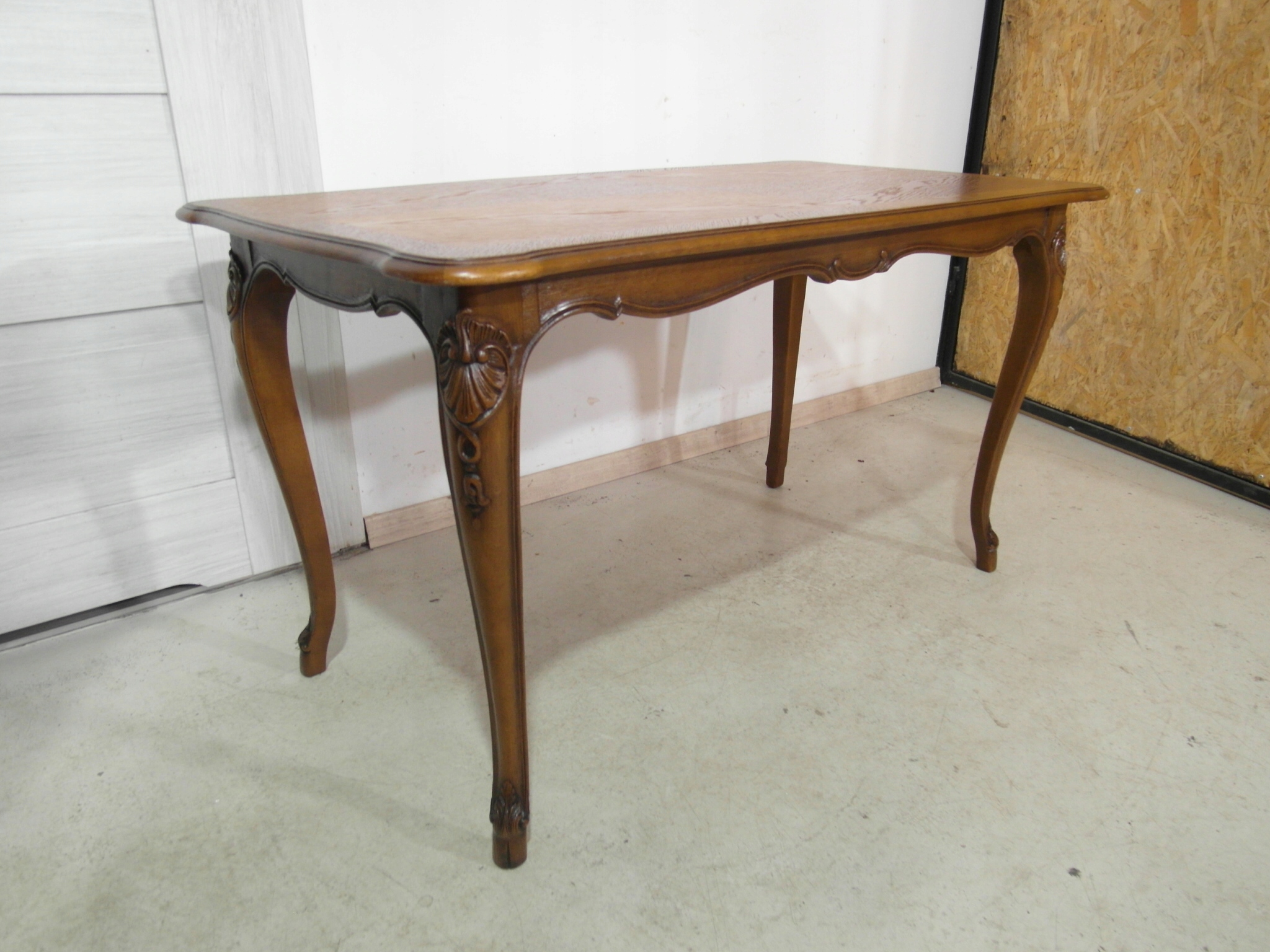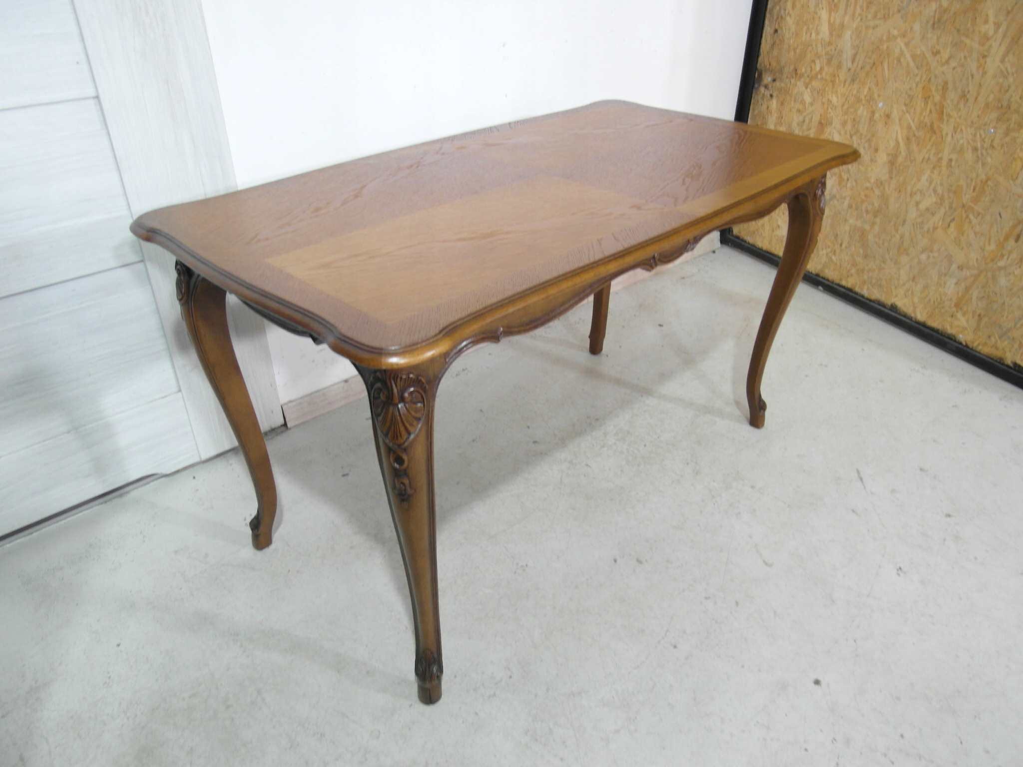 Opis: prostokątna ława z przepięknym blatem , mocna i ciężka zarazem – z drewna