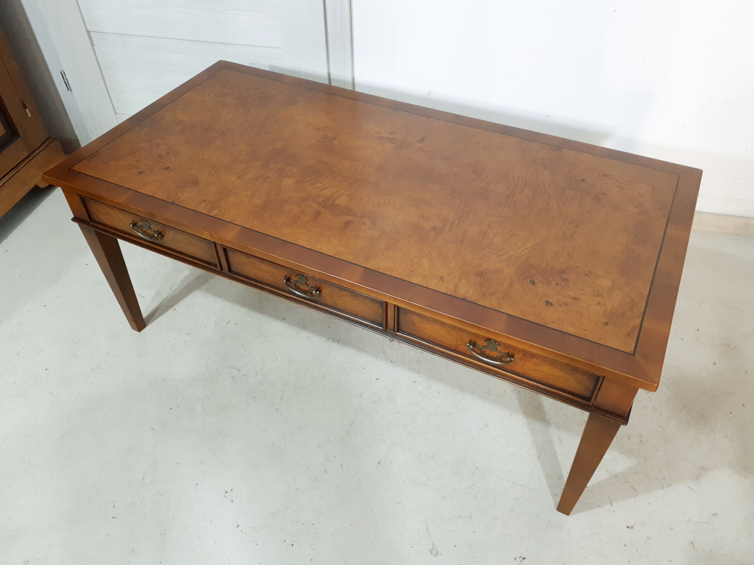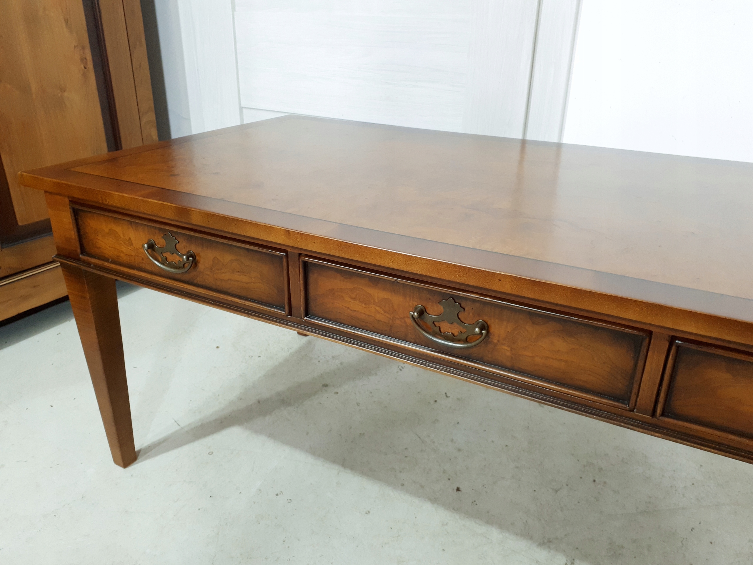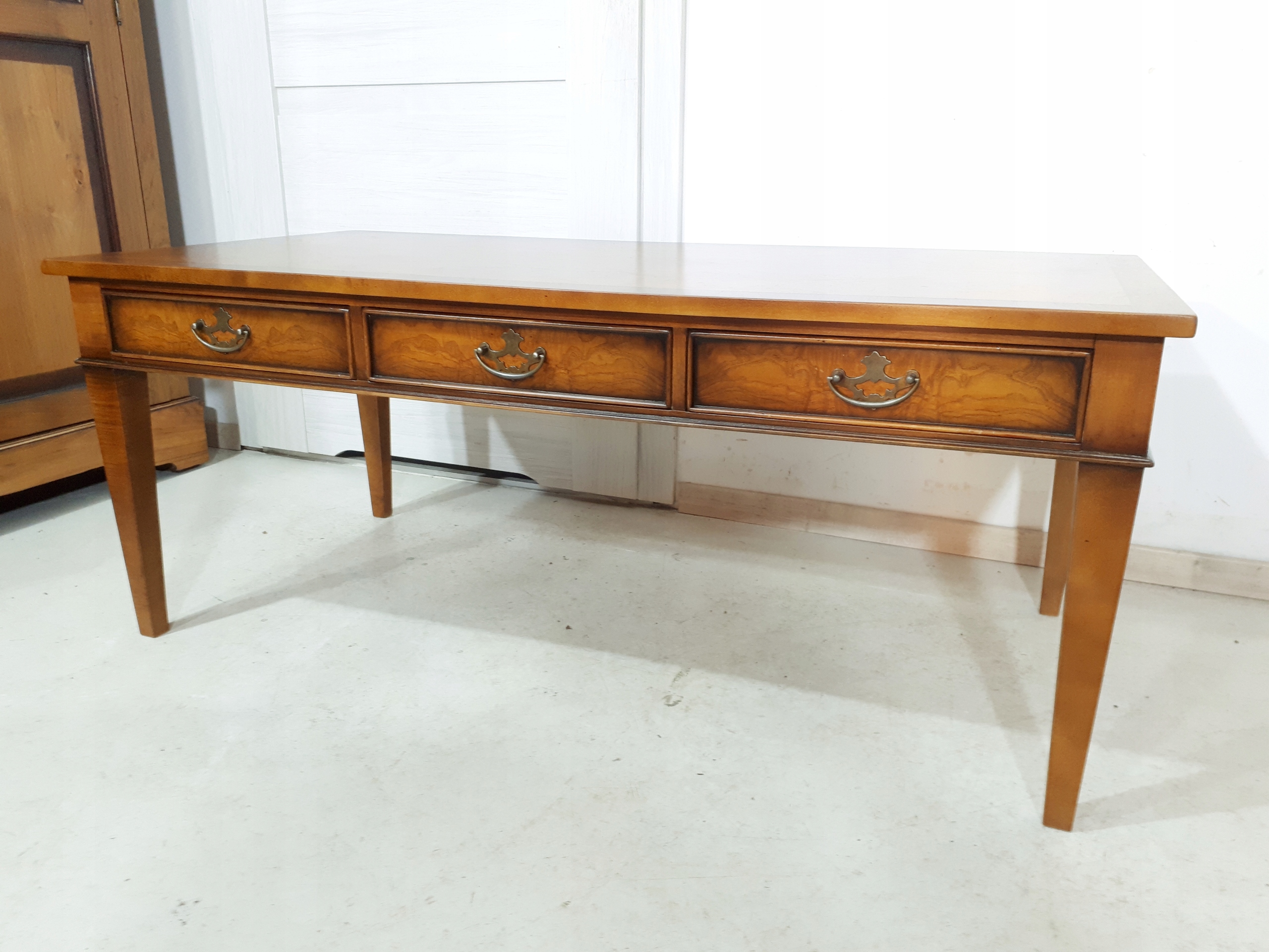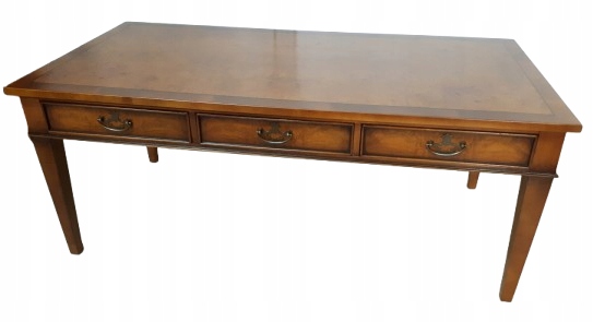 Opis: prostokątna  ława z przepięknym blatem  ,   mocna i ciężka zarazem – z drewna, pod blatem 3 bardzo pojemne szuflady