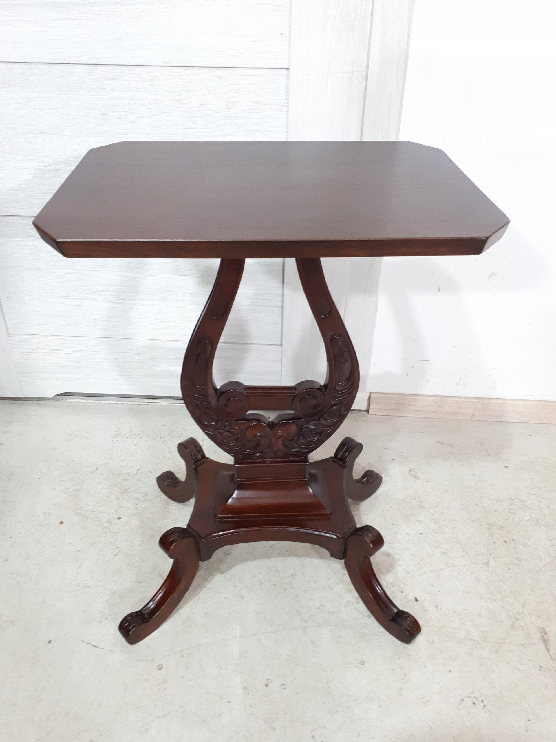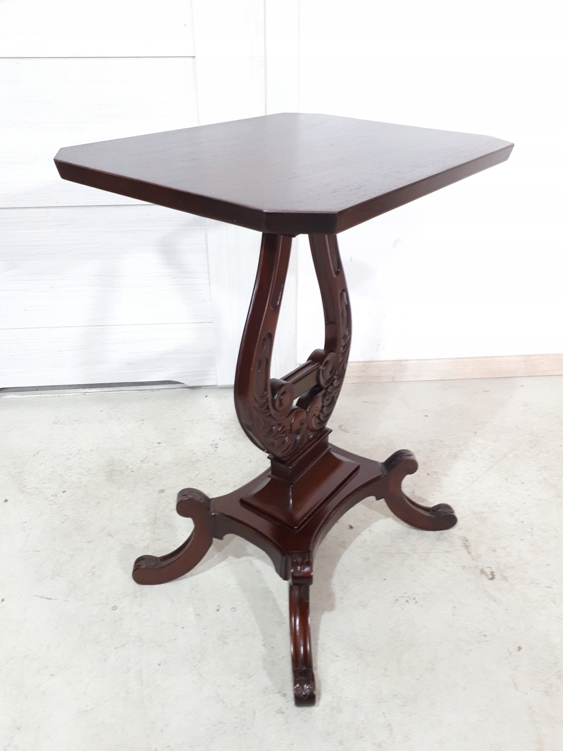 Opis: prostokątny stolik kawowy, drewniany, przepięknie rzeźbiony