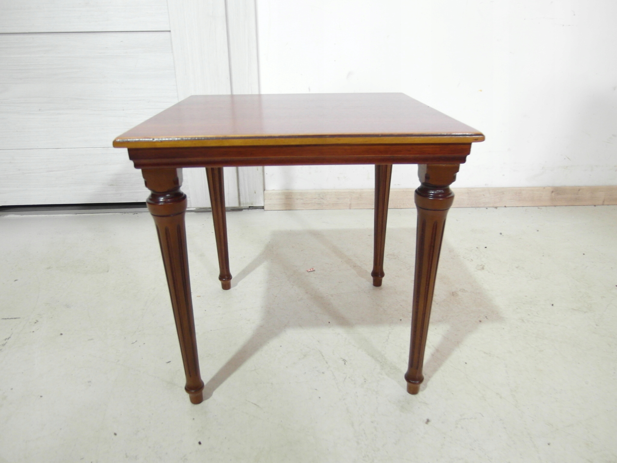 Opis: stolik kwadratowy ,na smukłych zgrabnych nóżkach , bardzo ładny i proporcionalny kształt