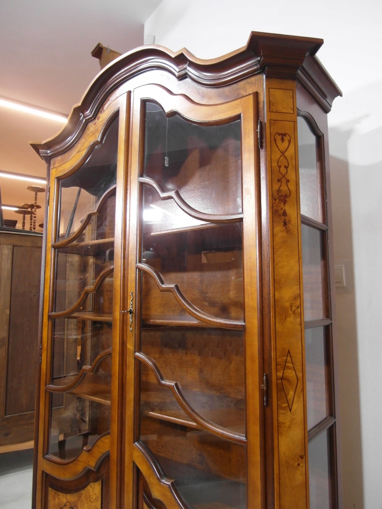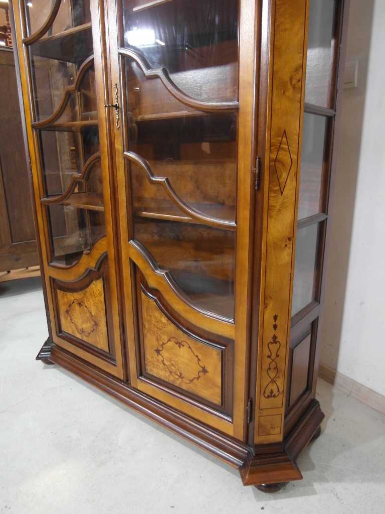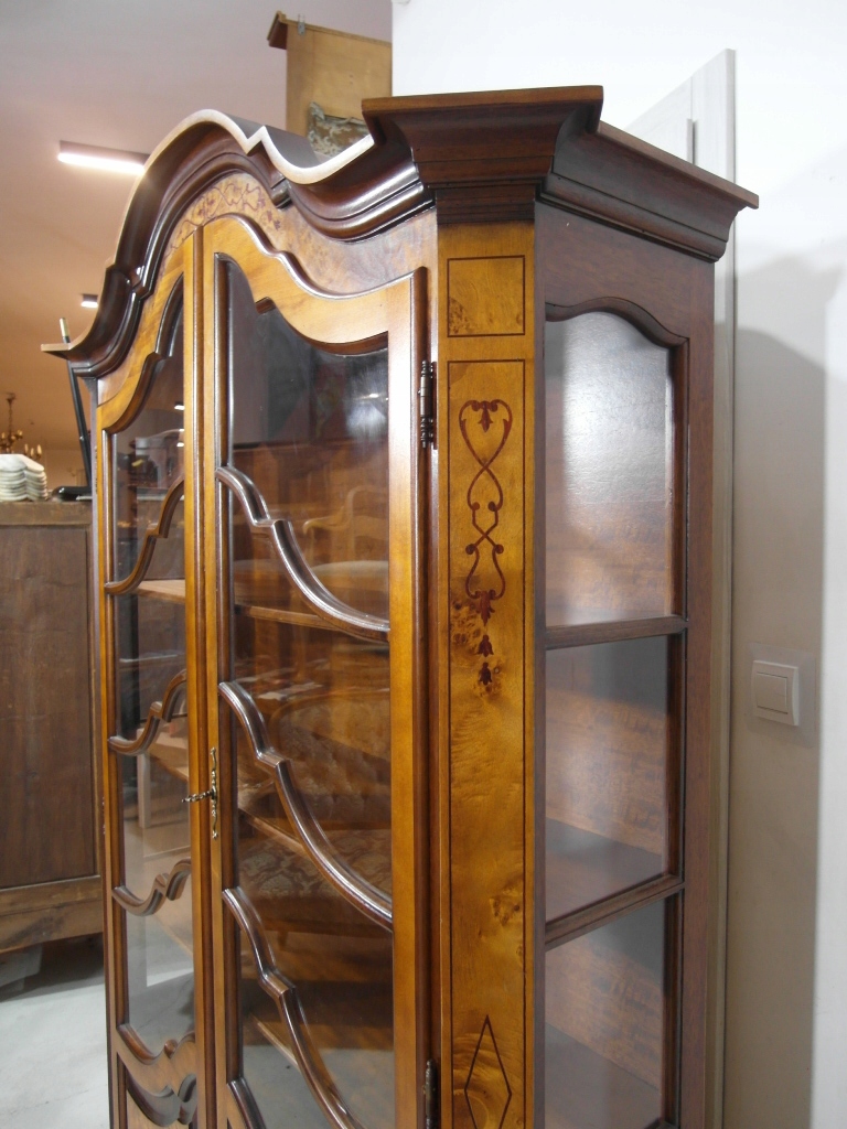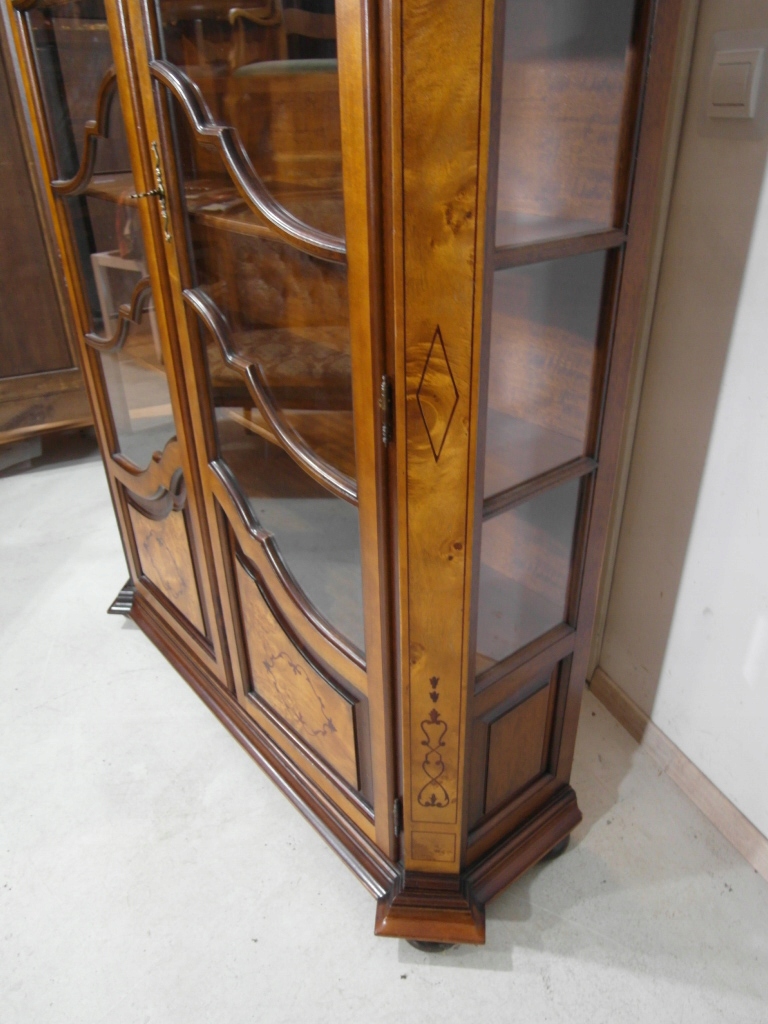 Opis: witryna przeszklona ZAMYKANA NA KLUCZ , W ŚRODKU PÓŁKI , kompletna , wszystko sprawne , oryginalne okucia,