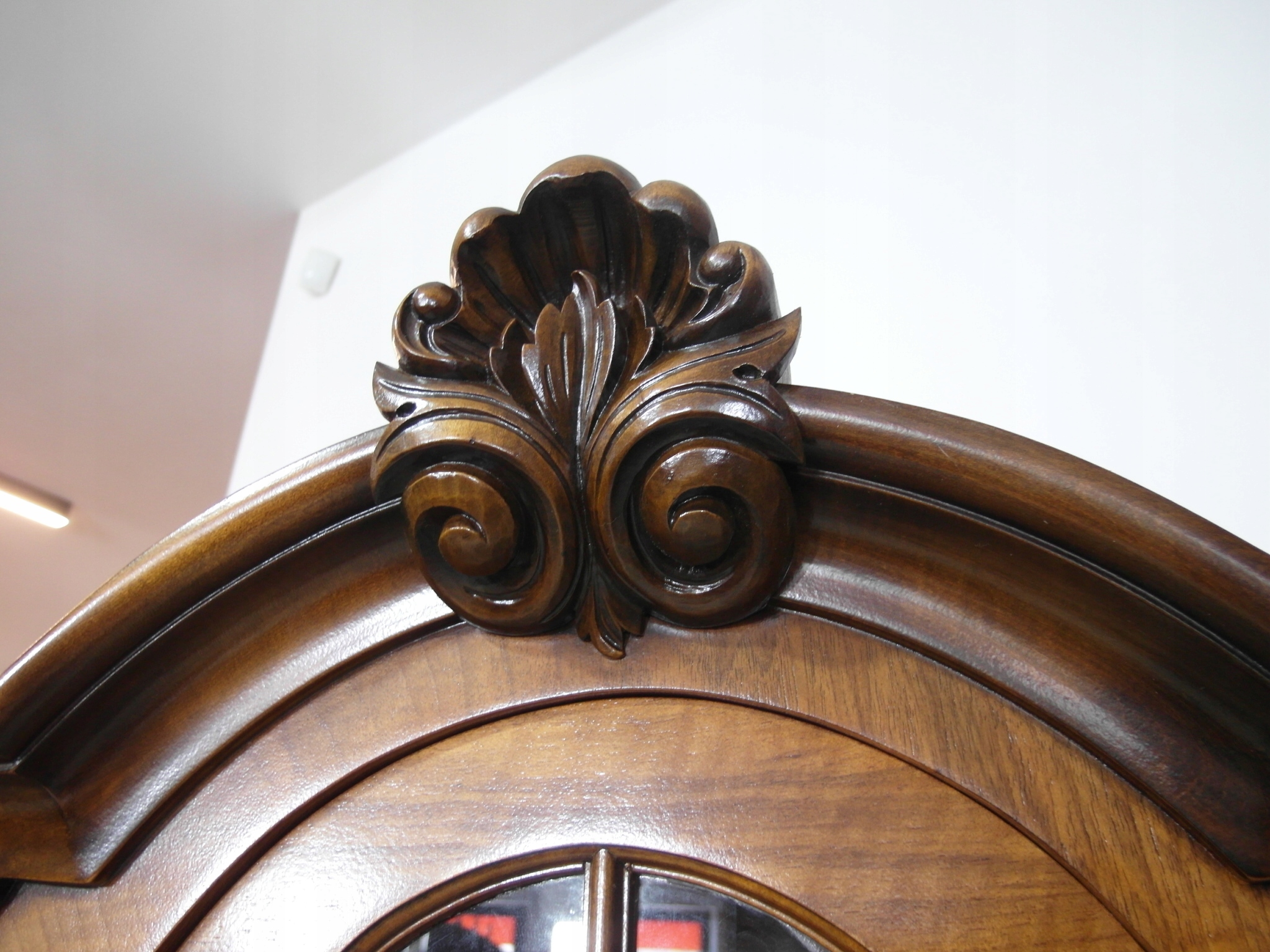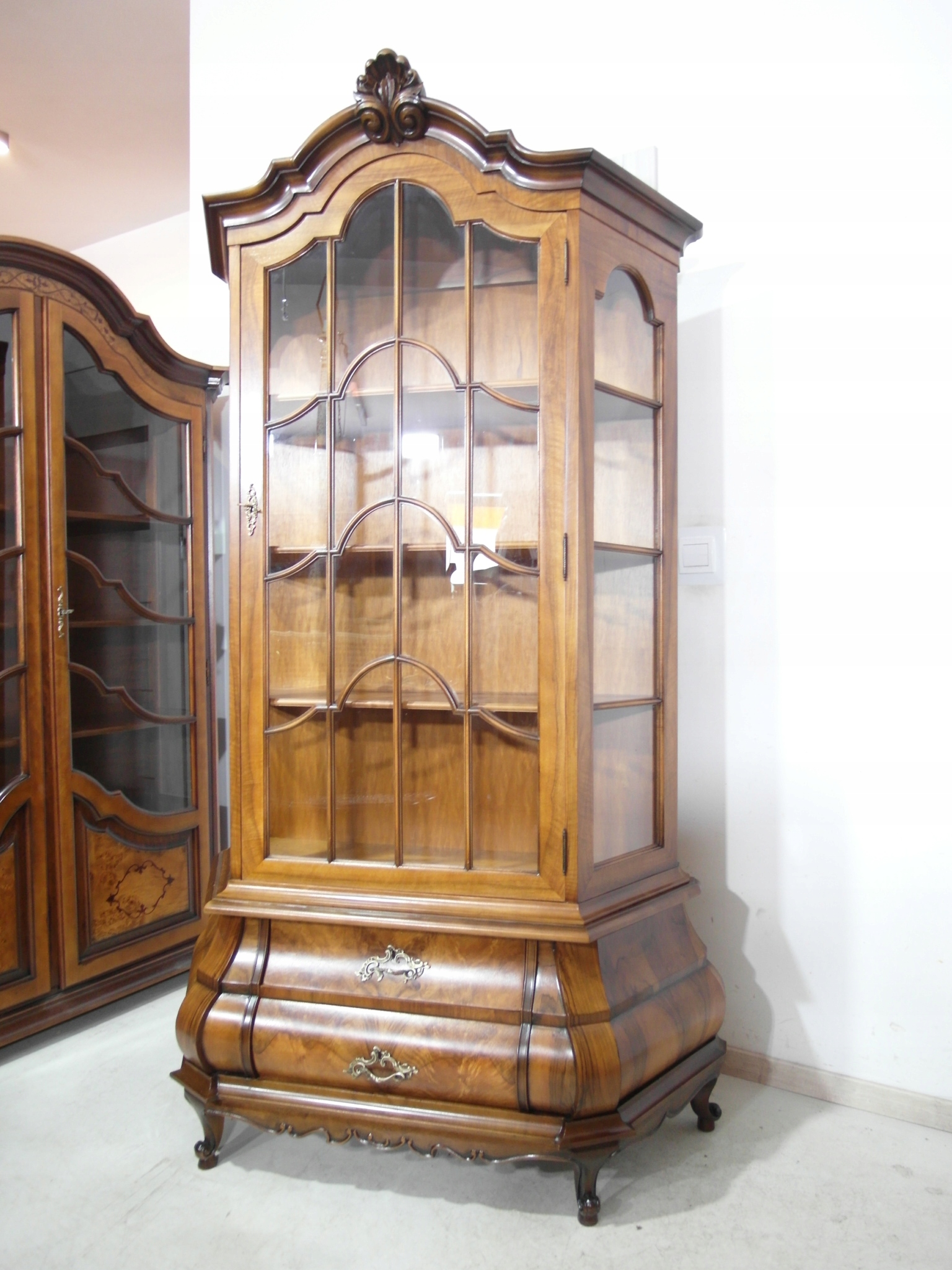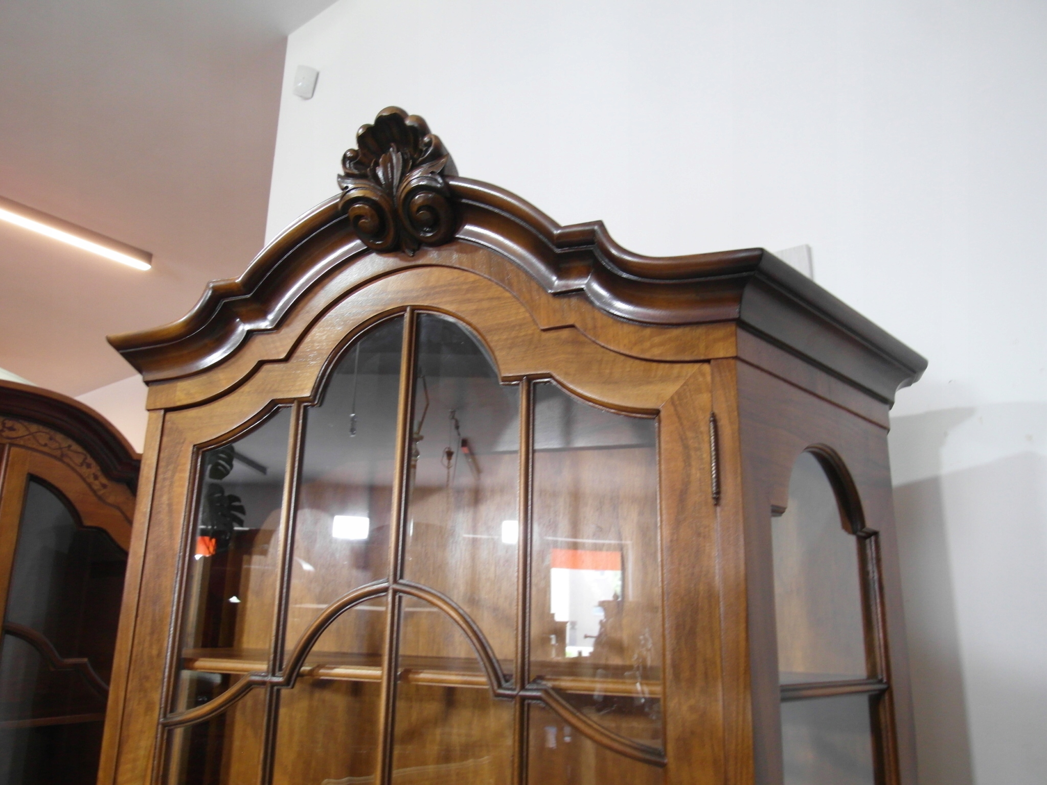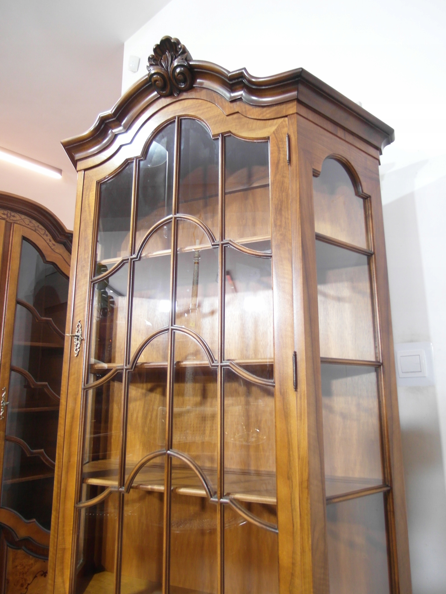 Opis: witryna przeszklona ZAMYKANA NA KLUCZ , W ŚRODKU PÓŁKI , kompletna , wszystko sprawne , oryginalne okucia,