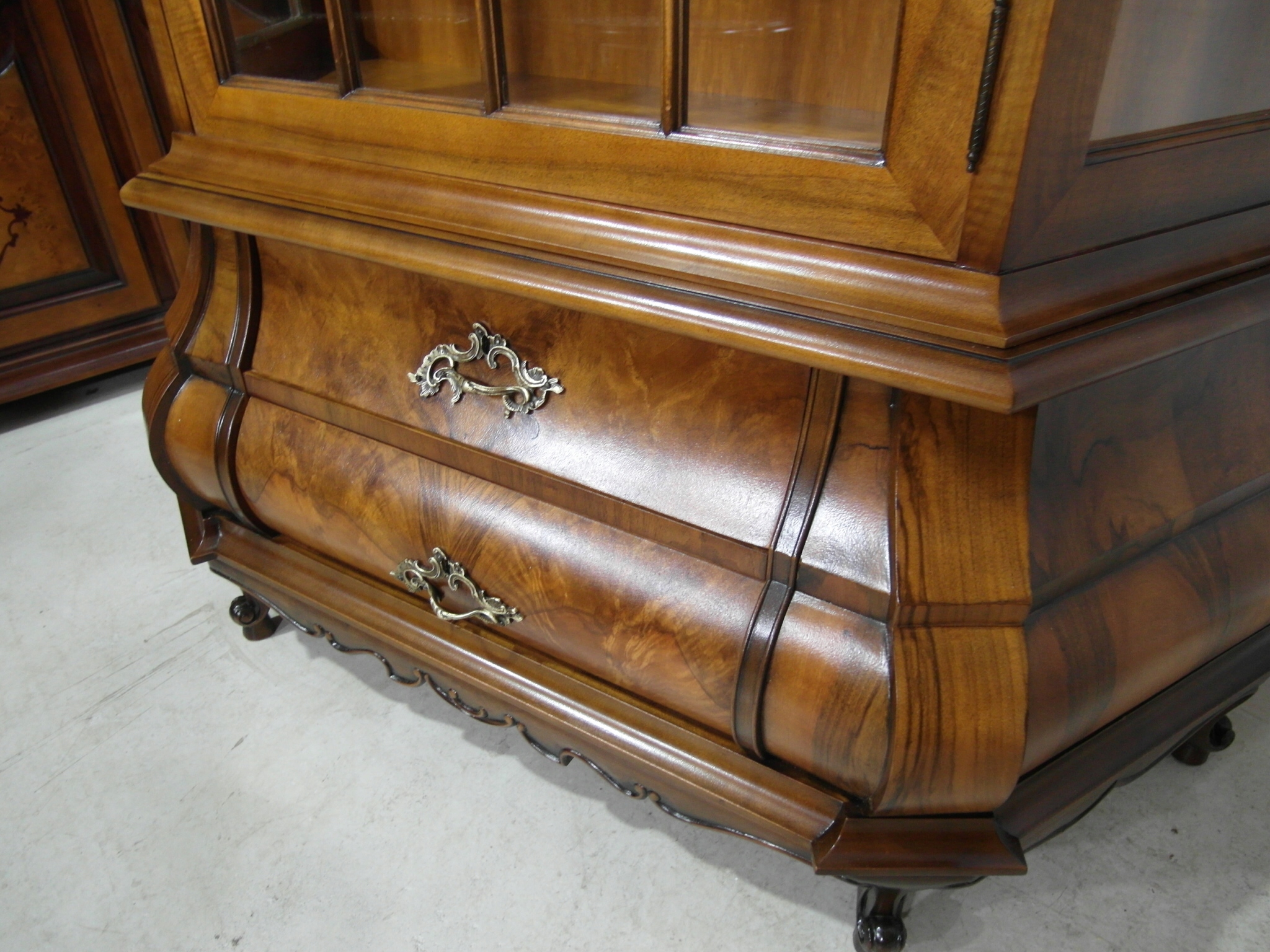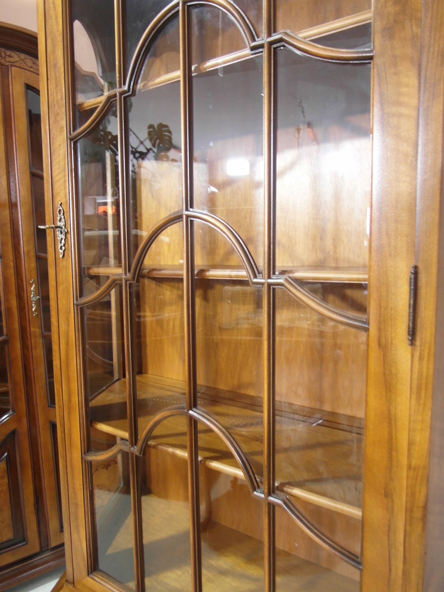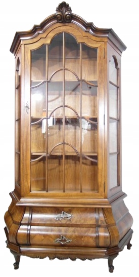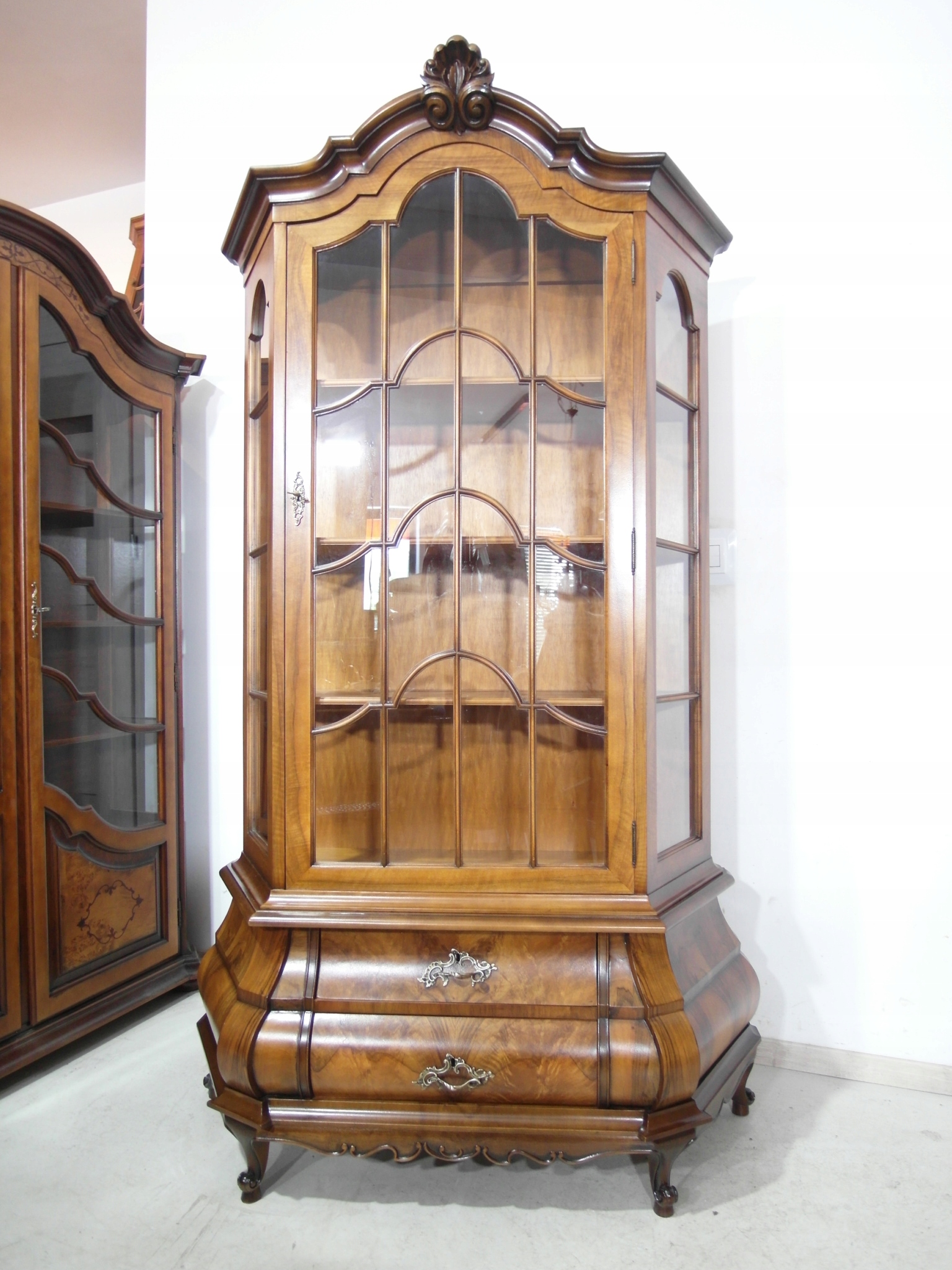 Opis: witryna przeszklona ZAMYKANA NA KLUCZ , W ŚRODKU PÓŁKI , kompletna , wszystko sprawne , oryginalne okucia,
