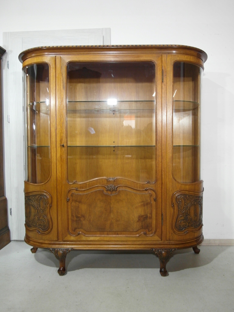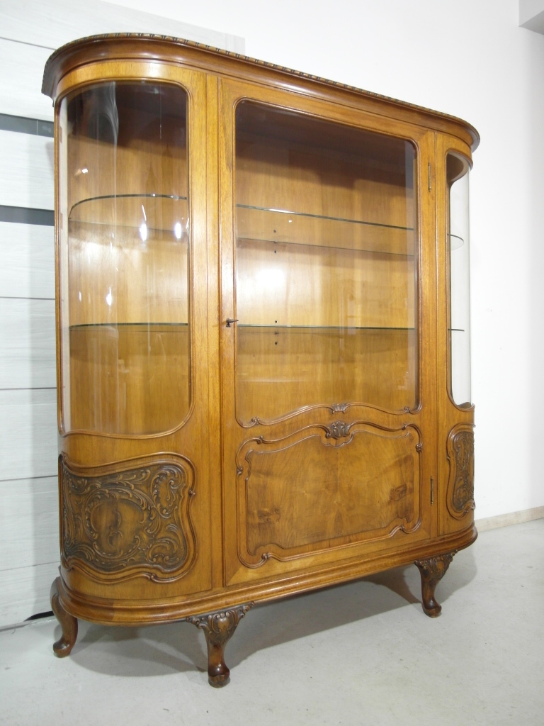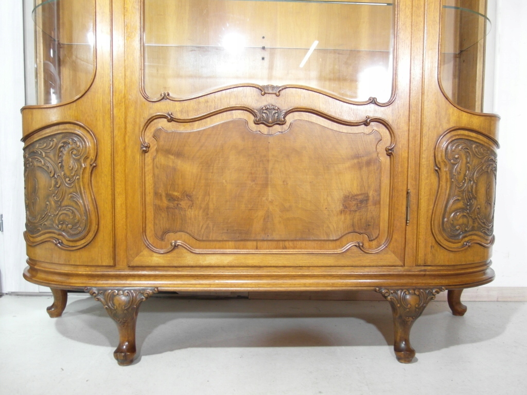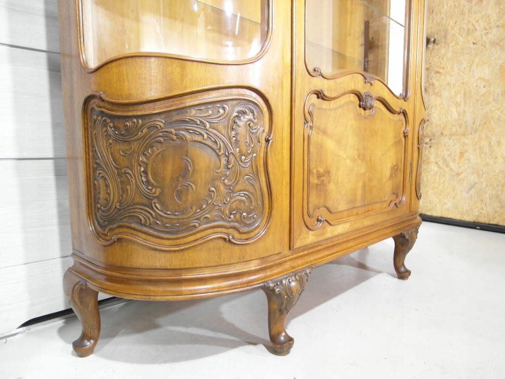 Opis: witryna przeszklona ZAMYKANA NA KLUCZ , W ŚRODKU PÓŁKI , kompletna , wszystko sprawne , oryginalne okucia,