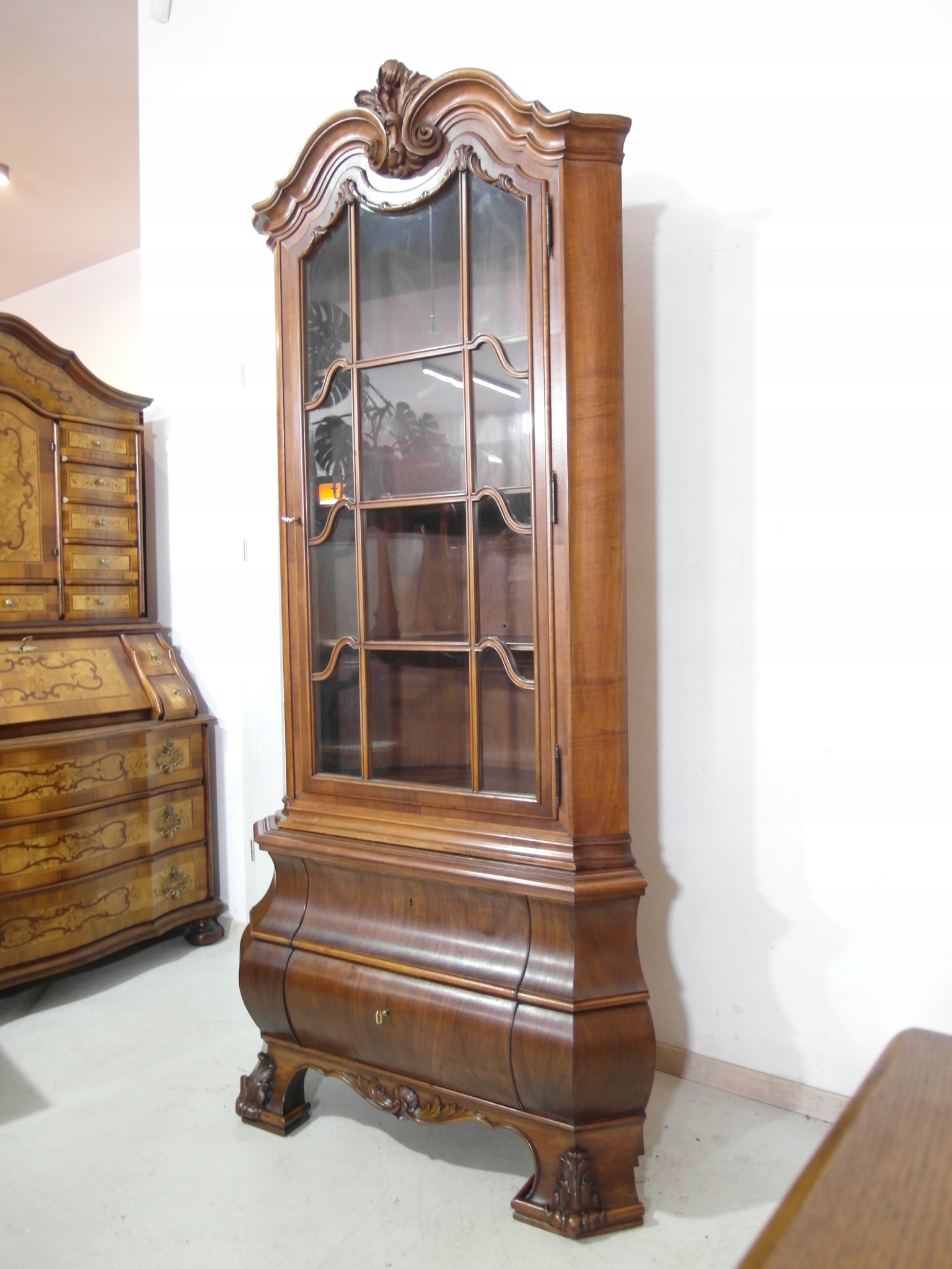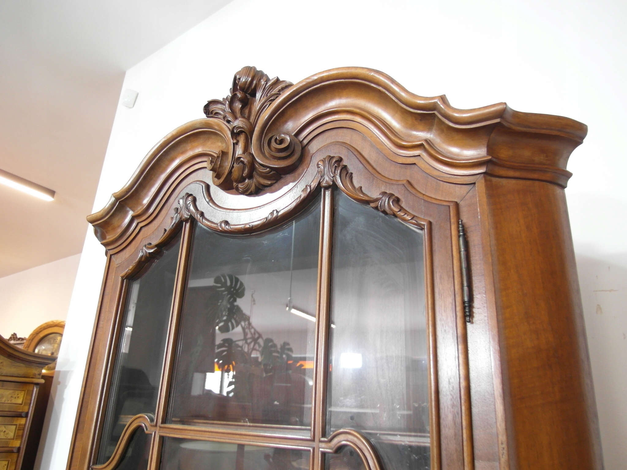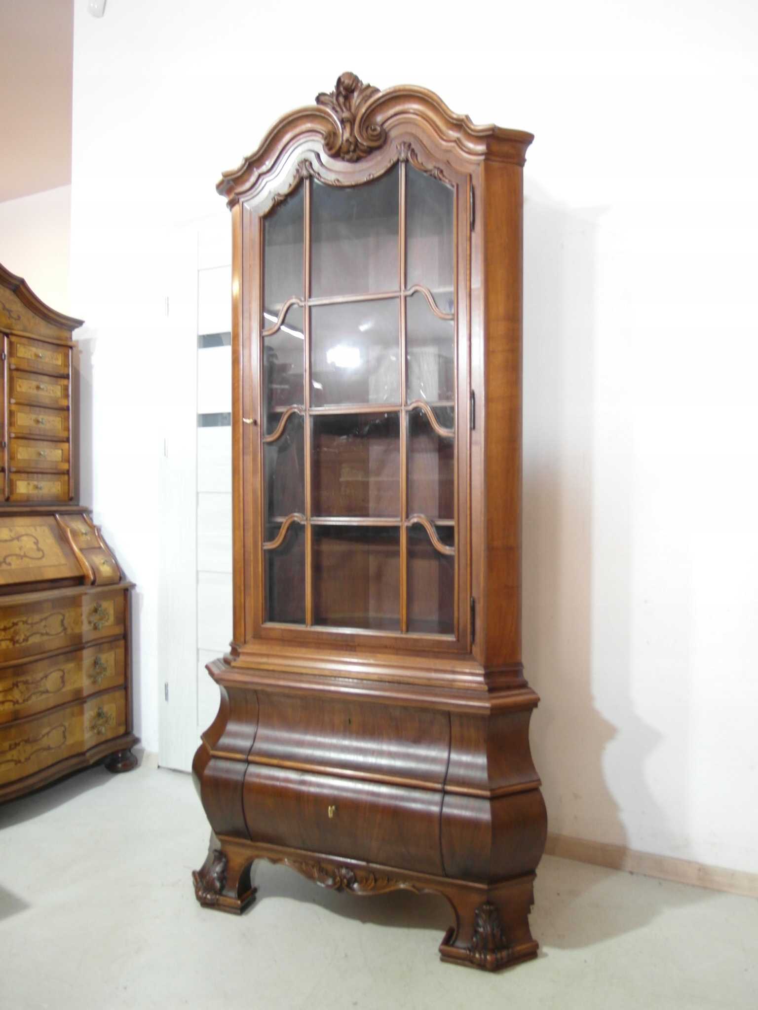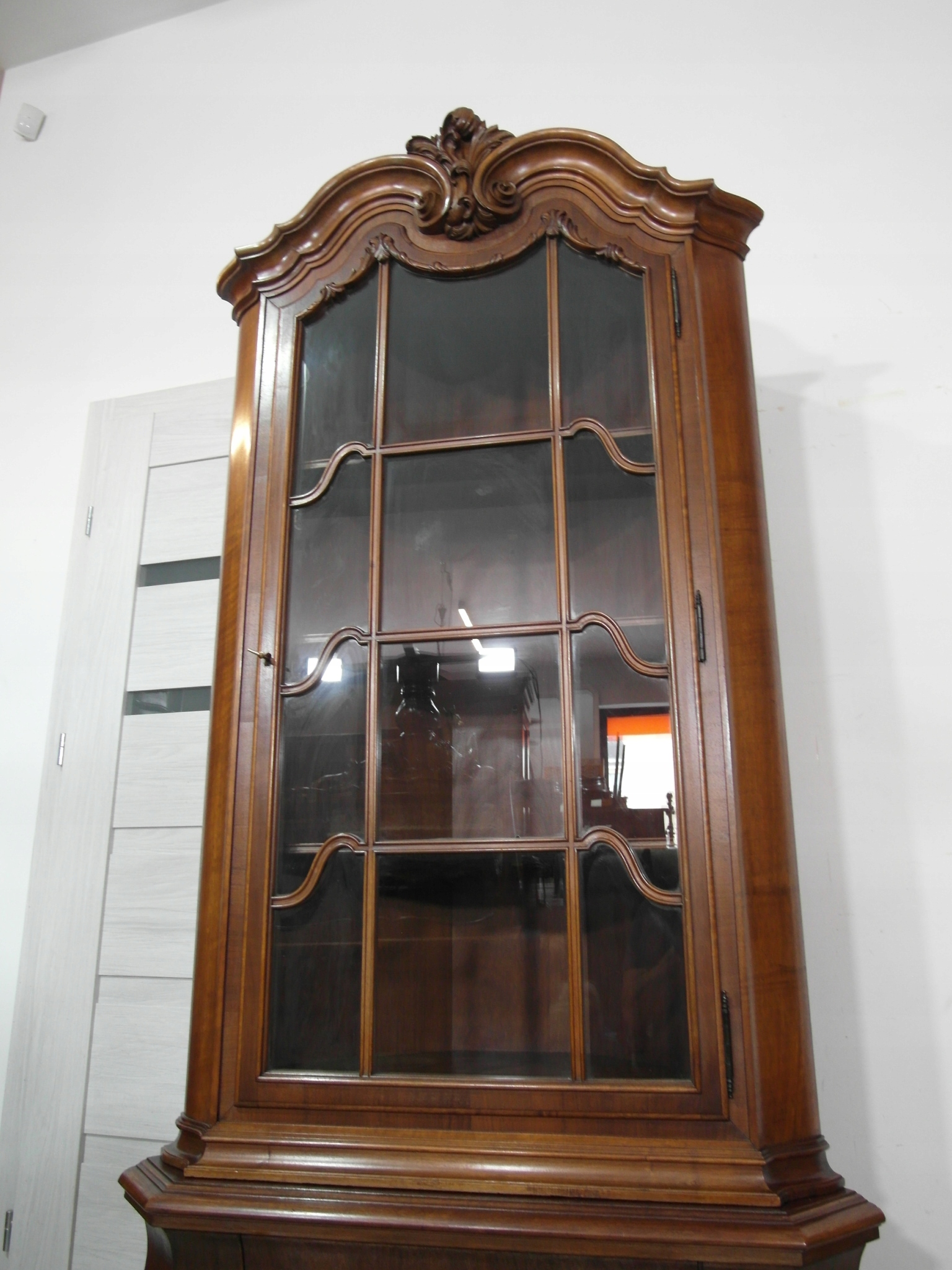 Opis: witryna przeszklona ZAMYKANA NA KLUCZ , W ŚRODKU PÓŁKI , kompletna , wszystko sprawne , oryginalne okucia,
