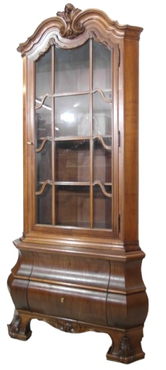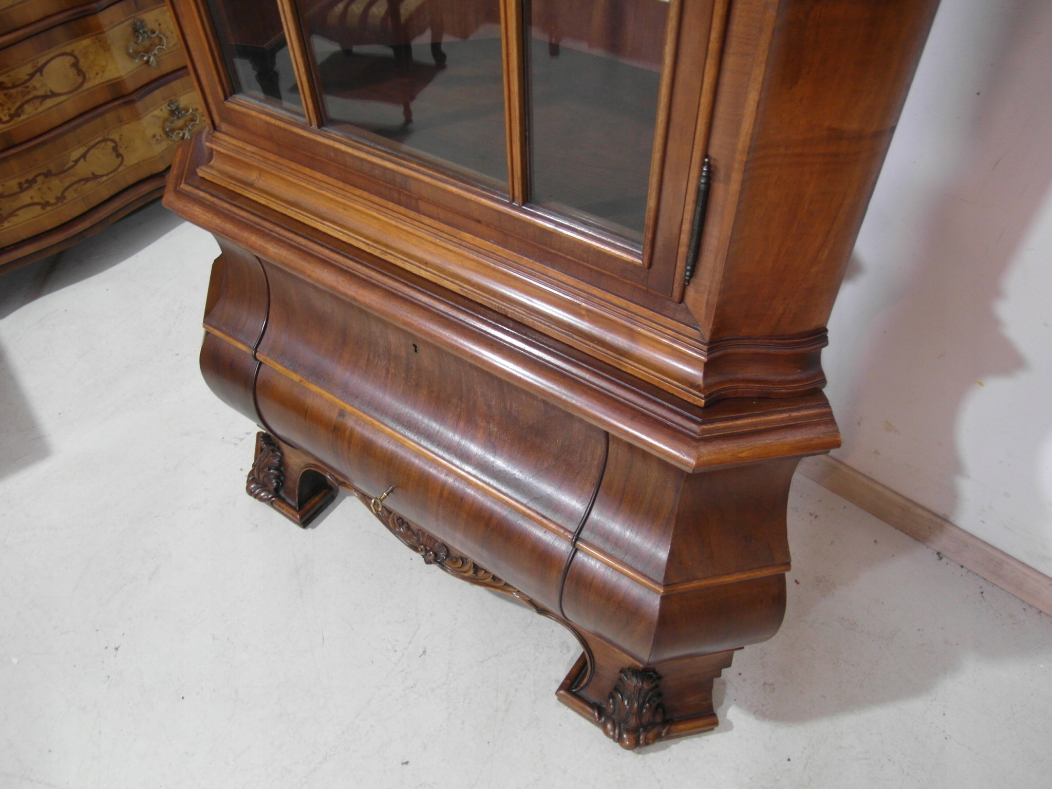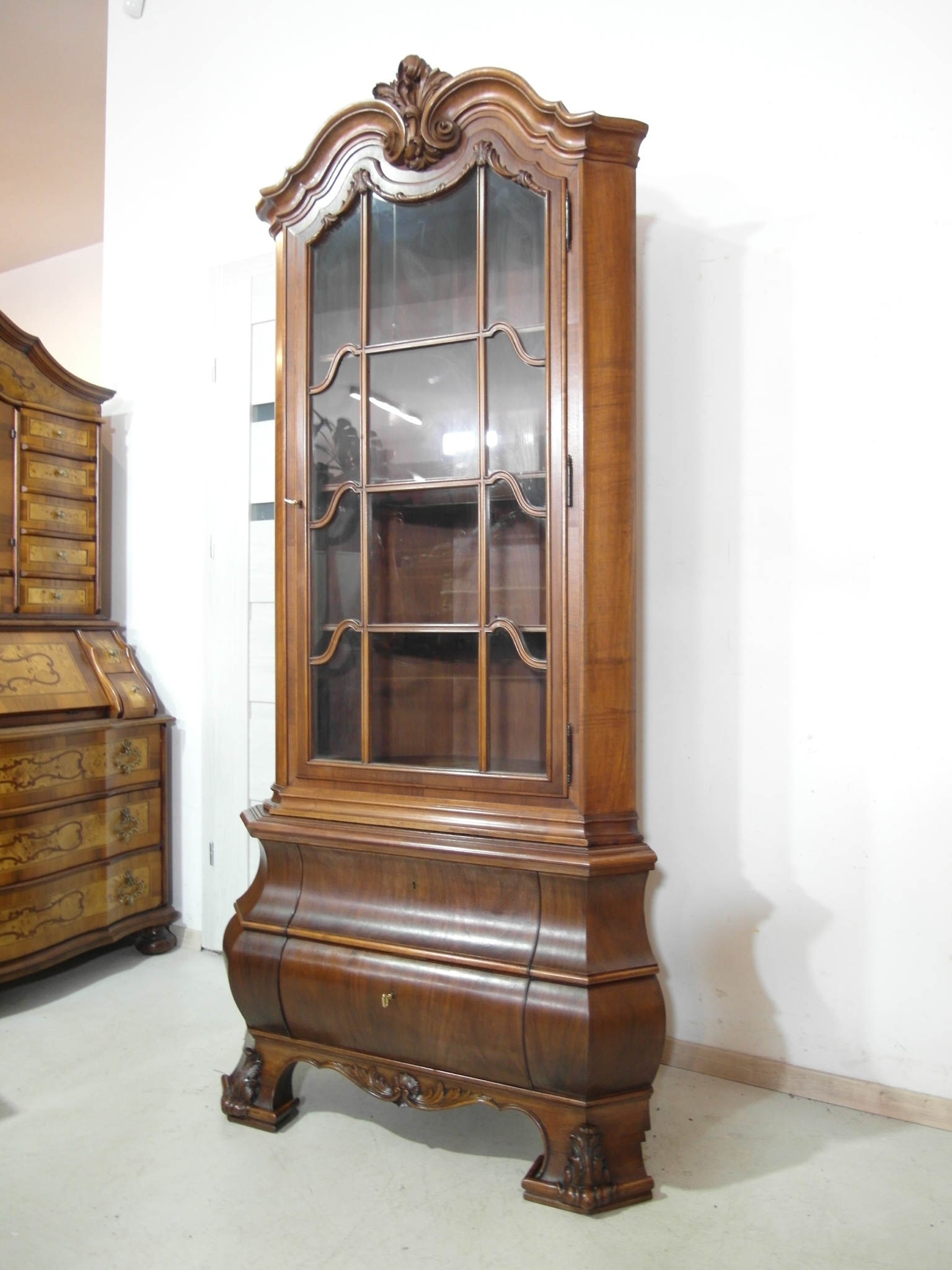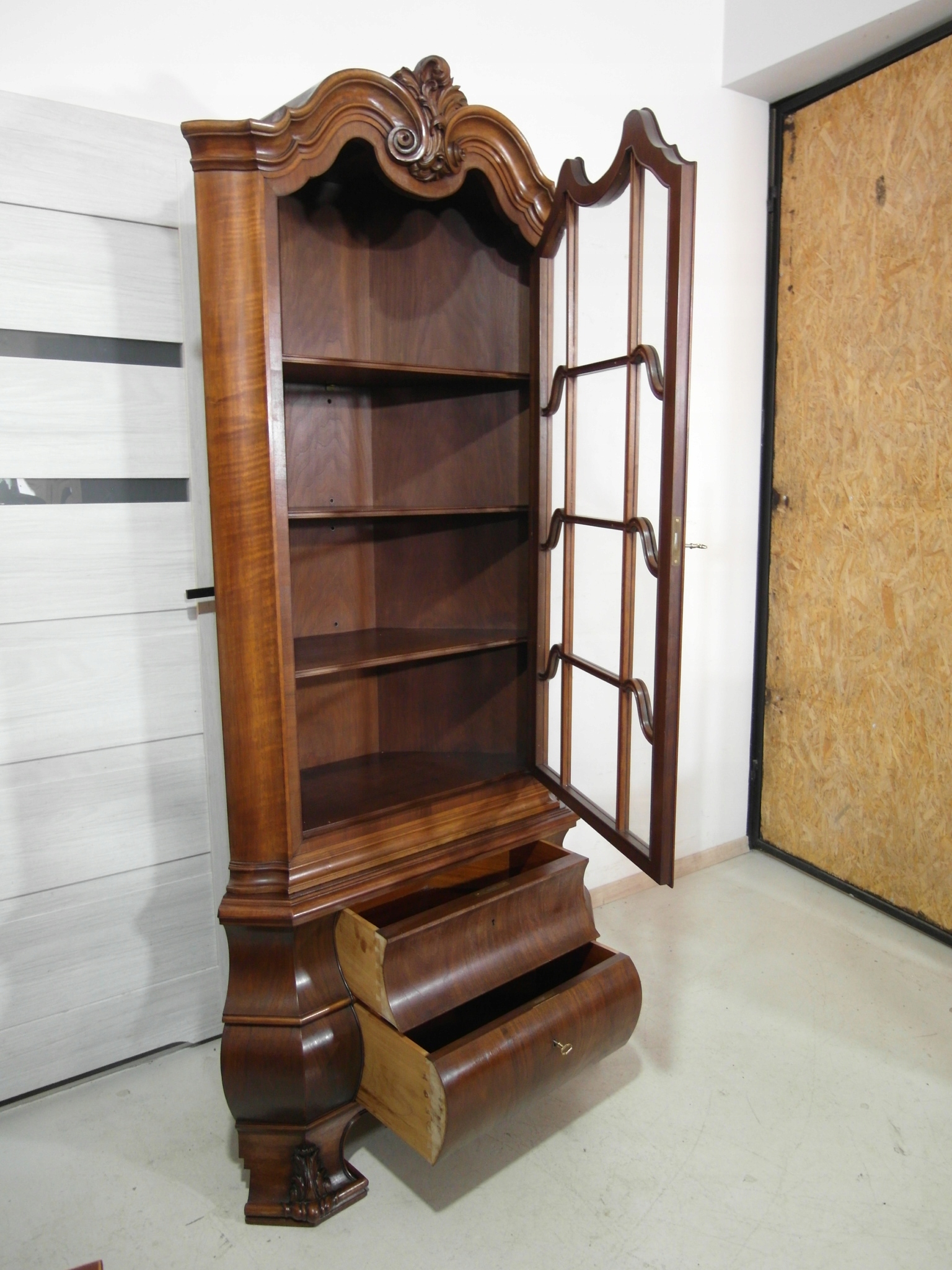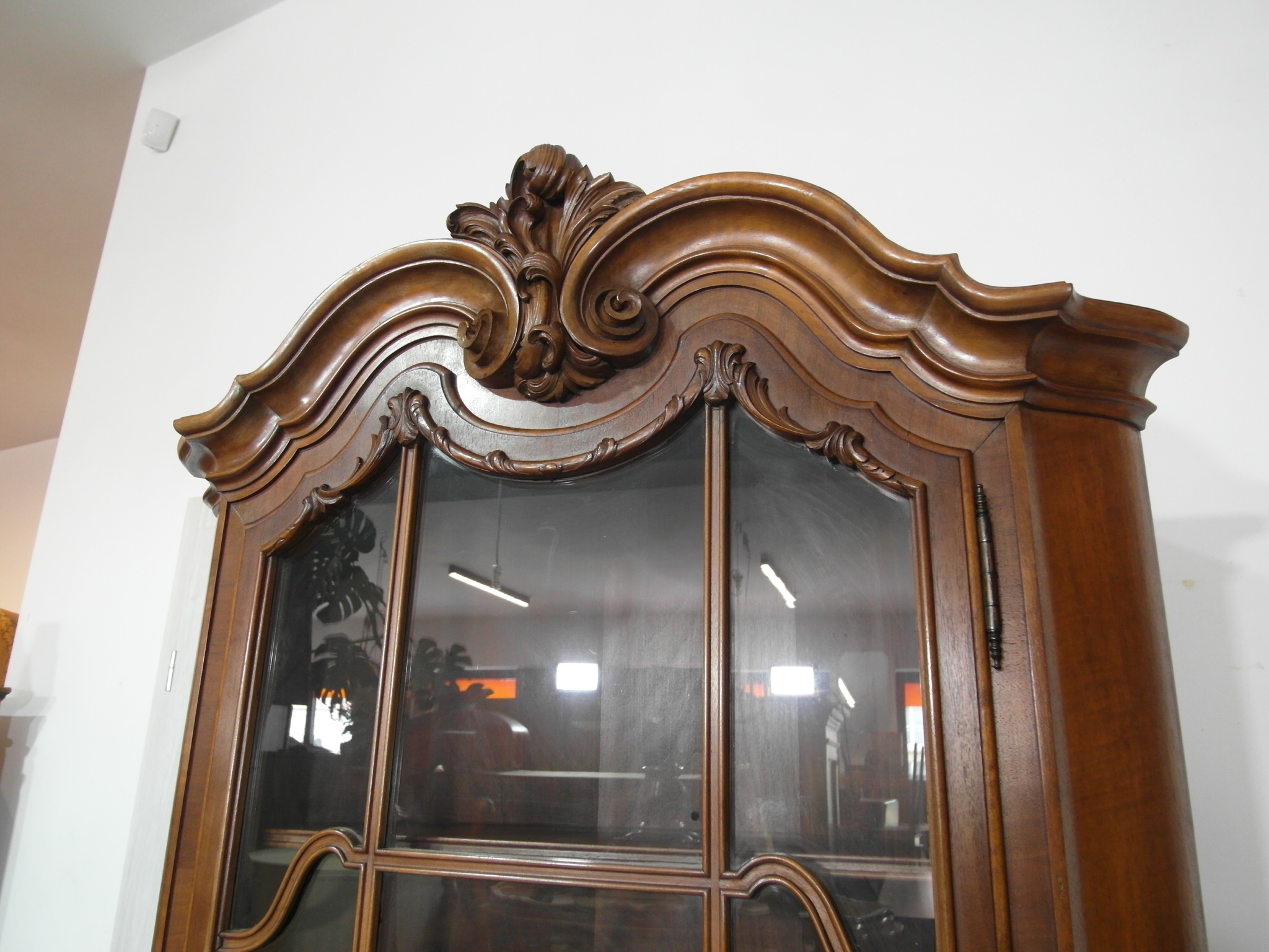 Opis: witryna przeszklona ZAMYKANA NA KLUCZ , W ŚRODKU PÓŁKI , kompletna , wszystko sprawne , oryginalne okucia,