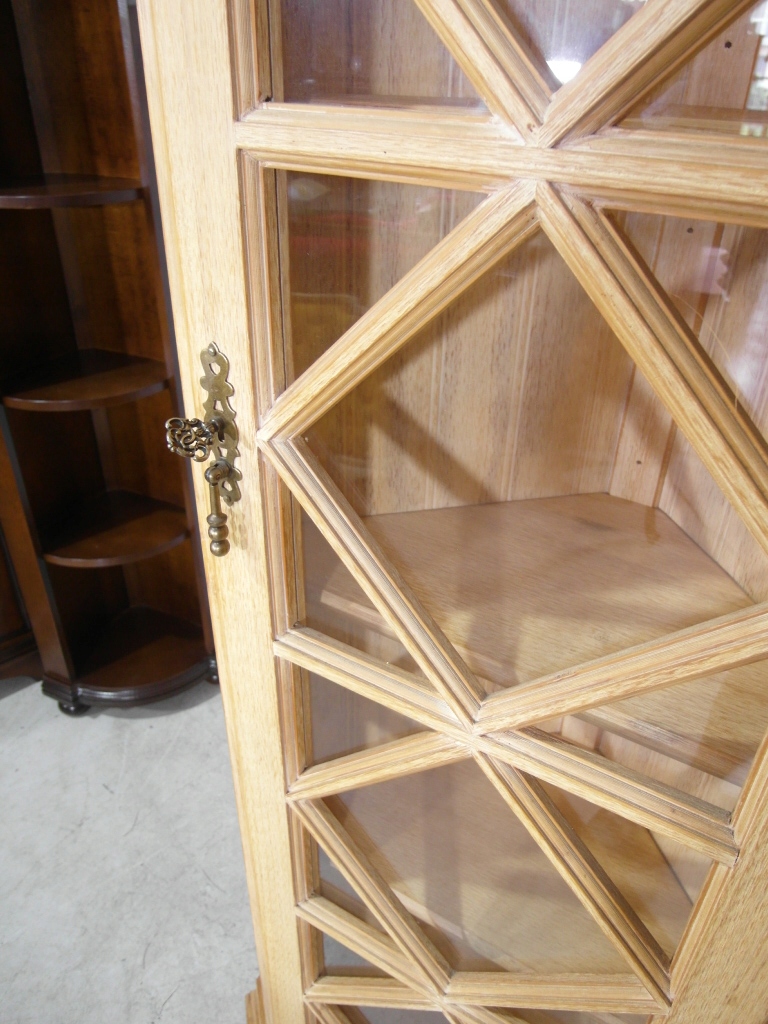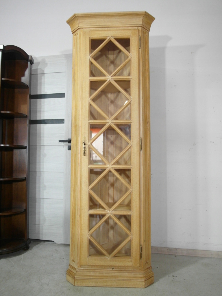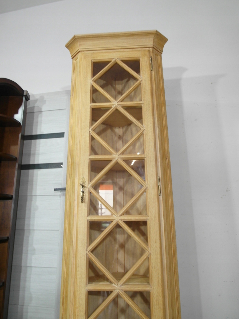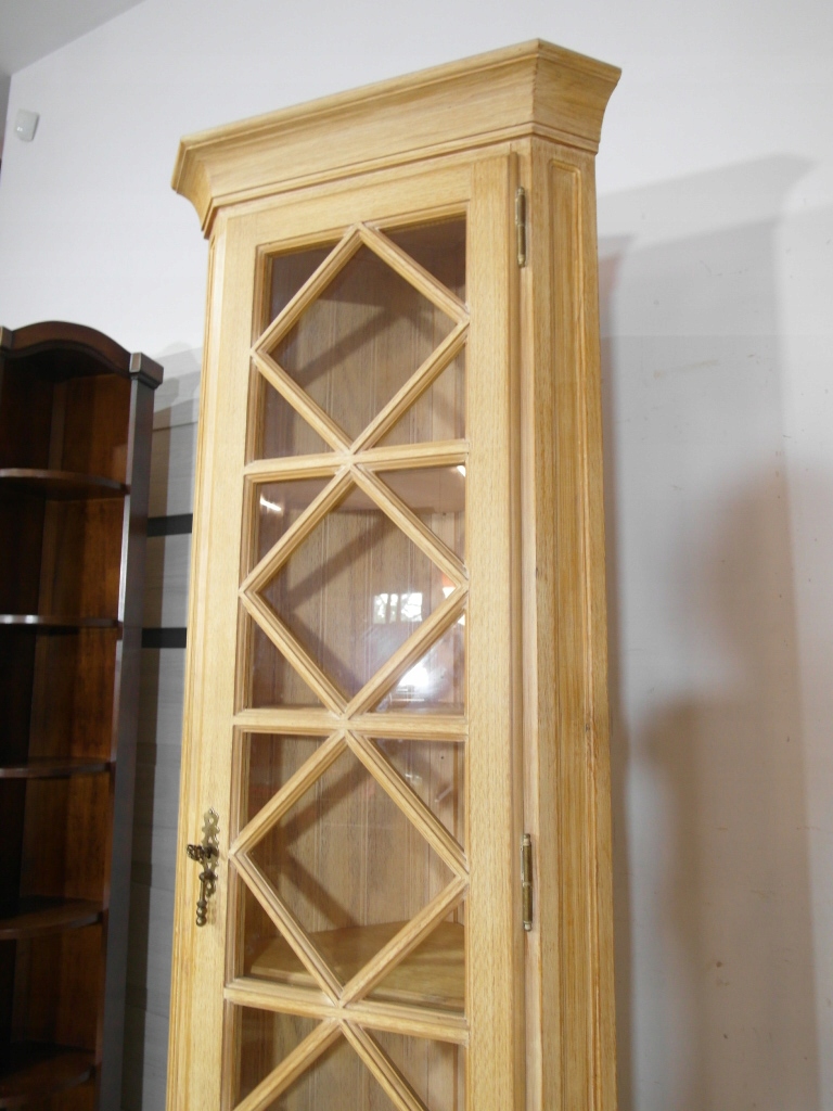 Opis: witryna przeszklona ZAMYKANA NA KLUCZ , W ŚRODKU PÓŁKI , kompletna , wszystko sprawne , oryginalne okucia,