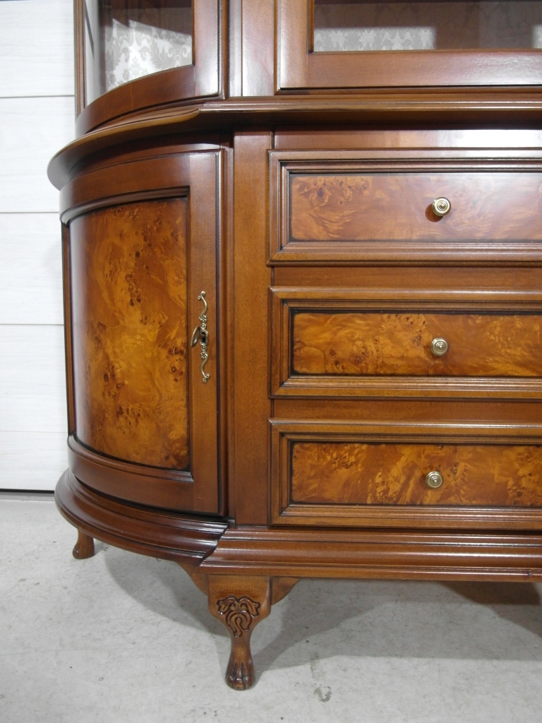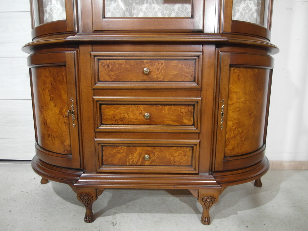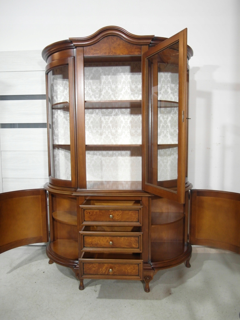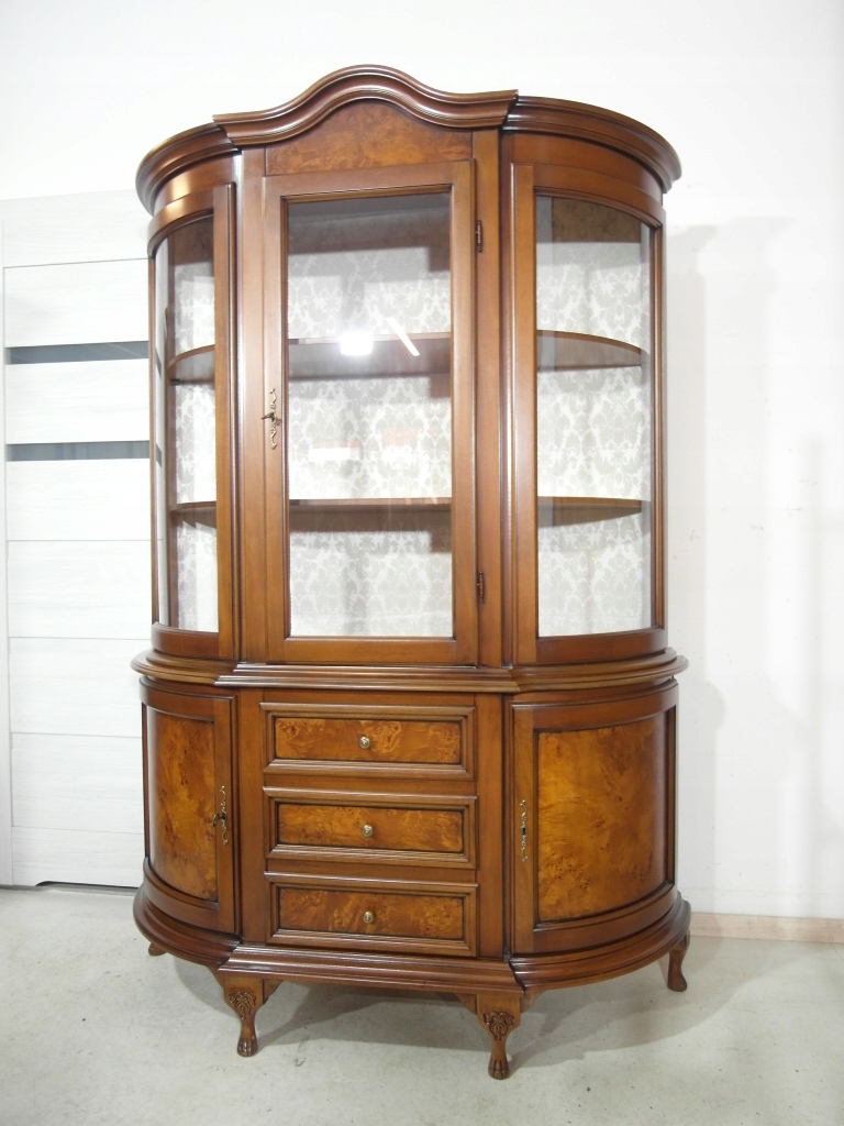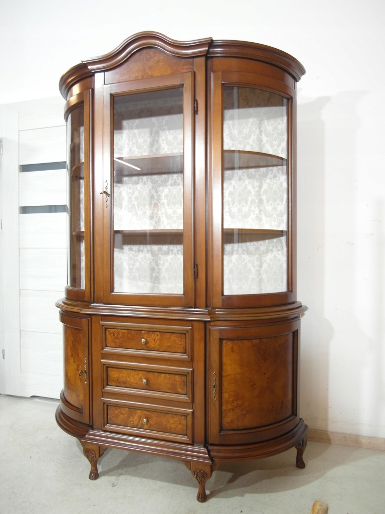 Opis: witryna przeszklona ZAMYKANA NA KLUCZ , W ŚRODKU PÓŁKI , kompletna , wszystko sprawne , oryginalne okucia,