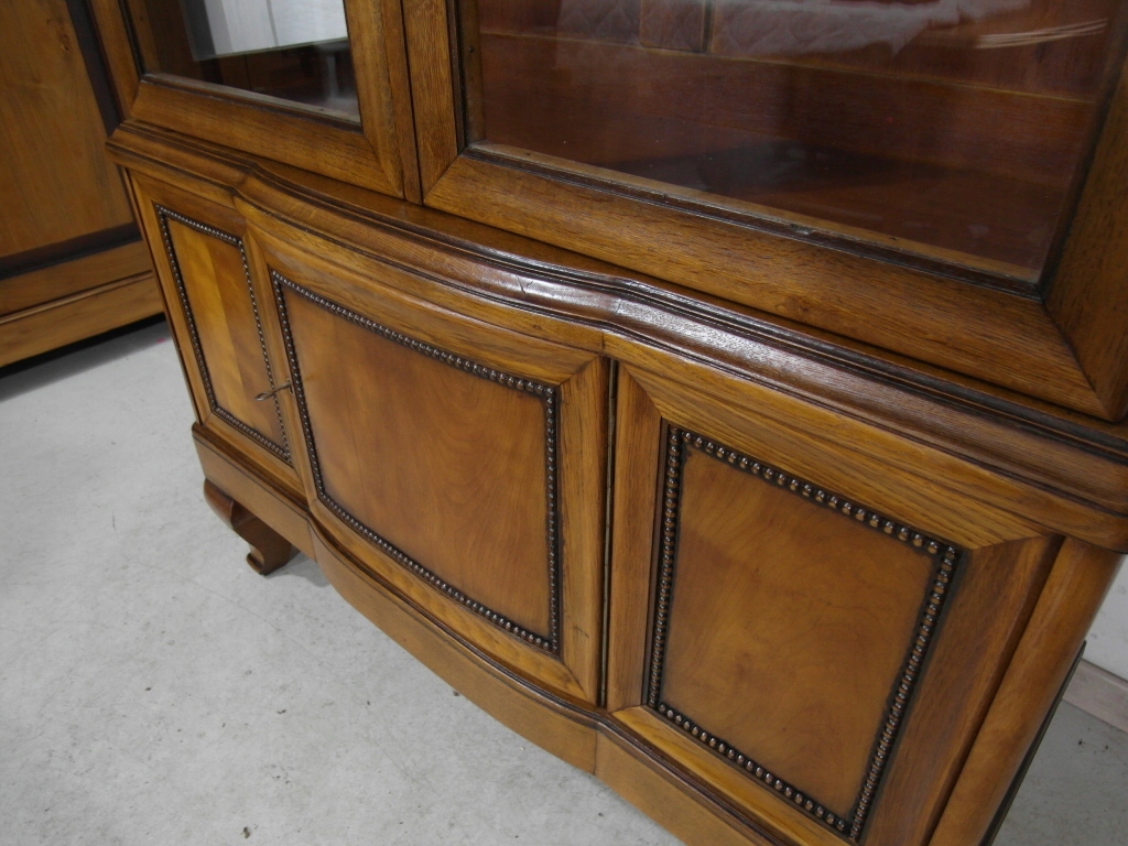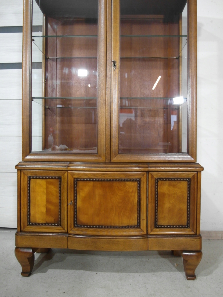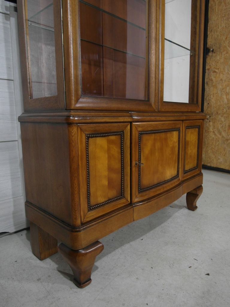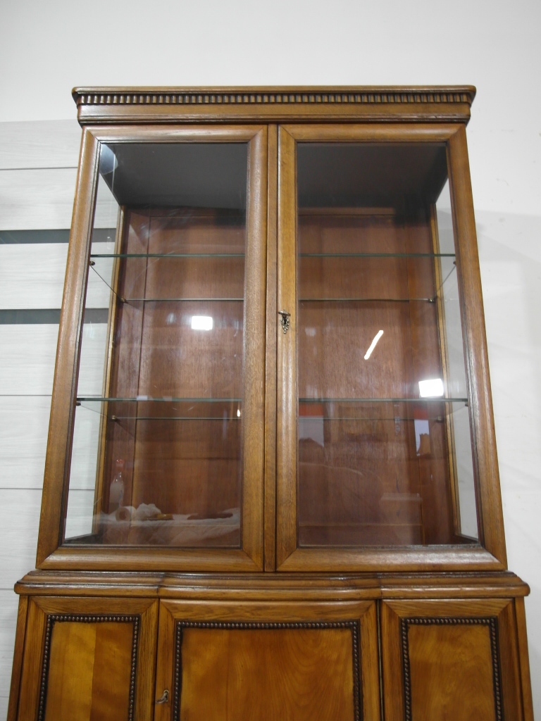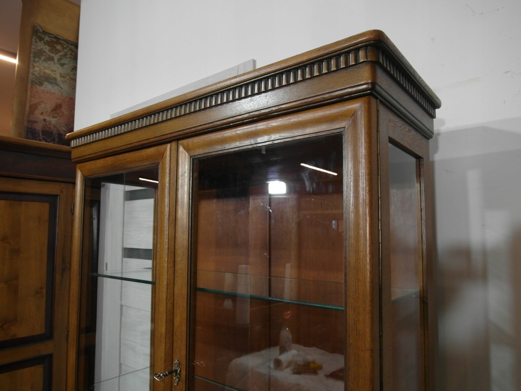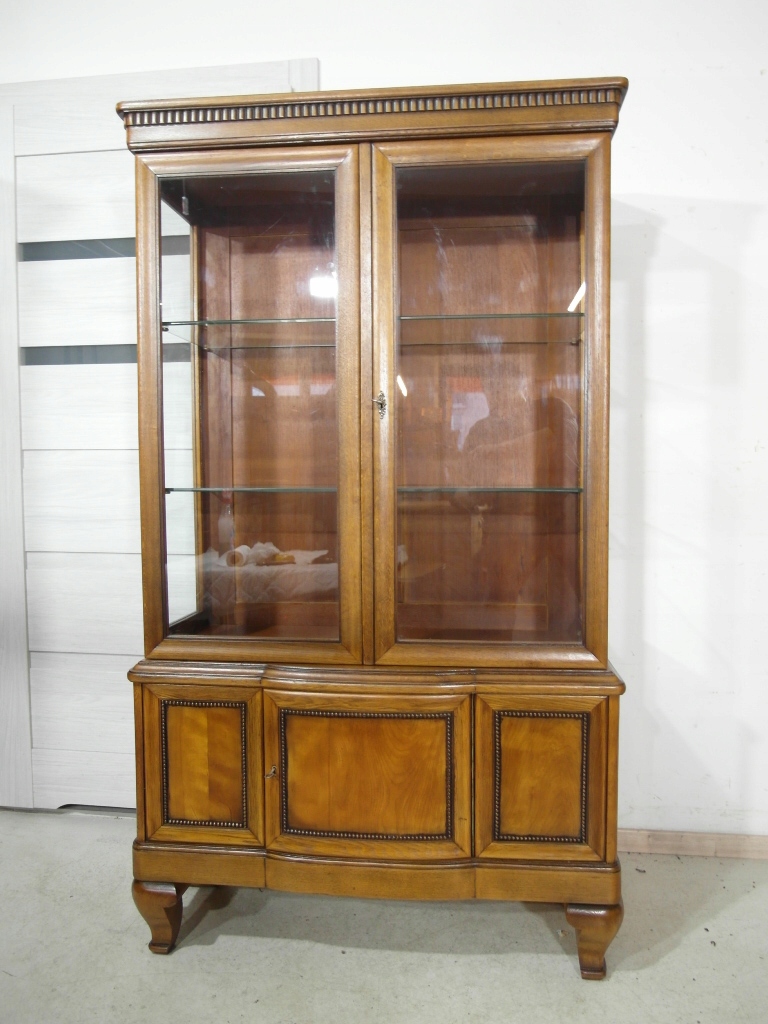 Opis: witryna przeszklona ZAMYKANA NA KLUCZ , W ŚRODKU PÓŁKI , kompletna , wszystko sprawne , oryginalne okucia,