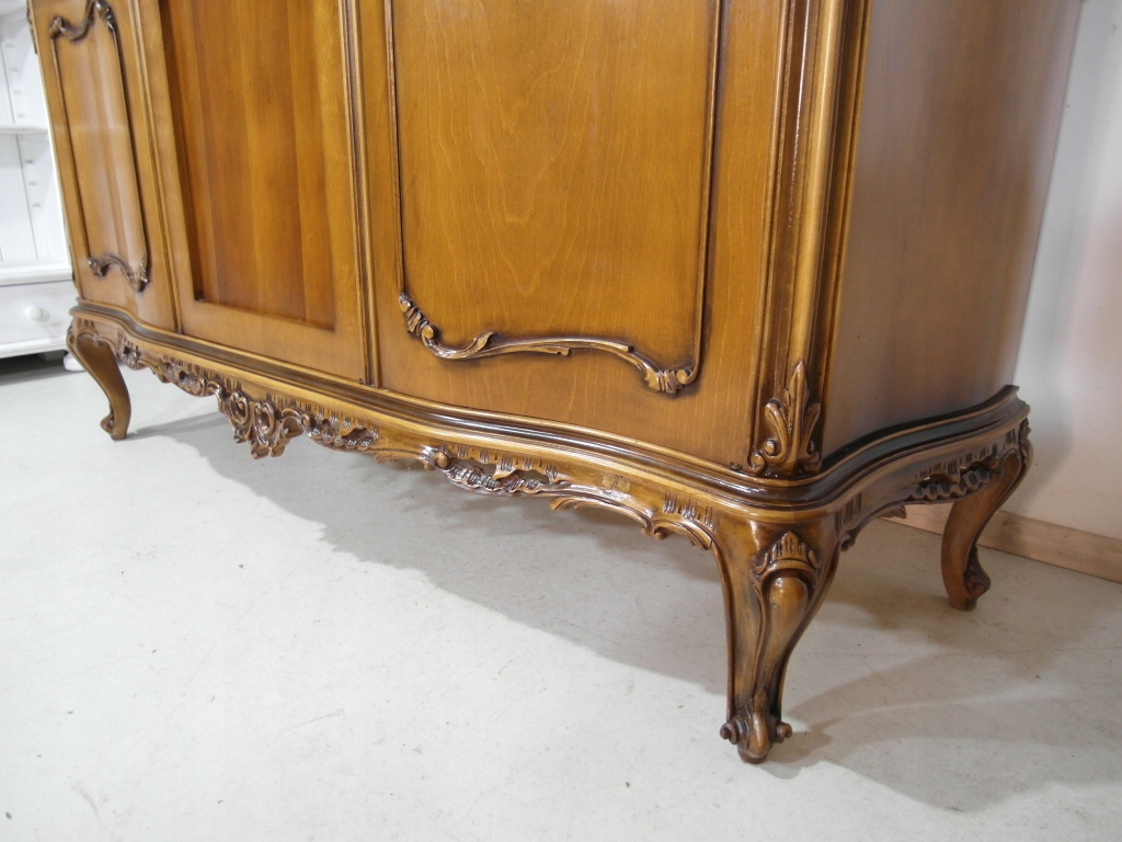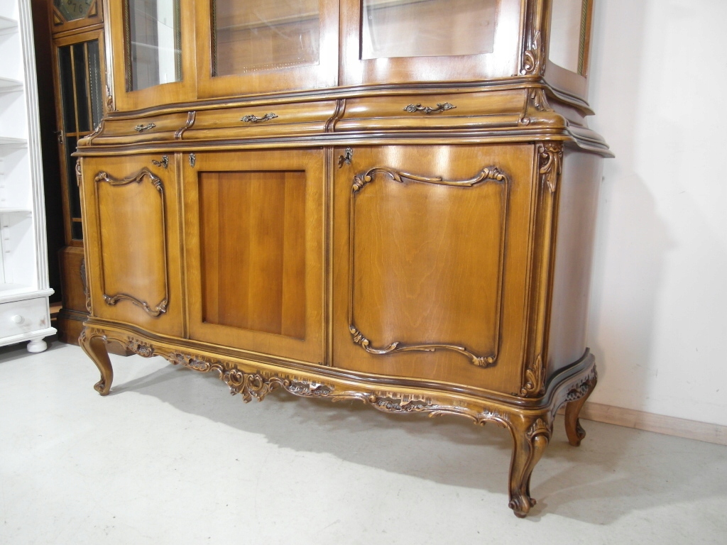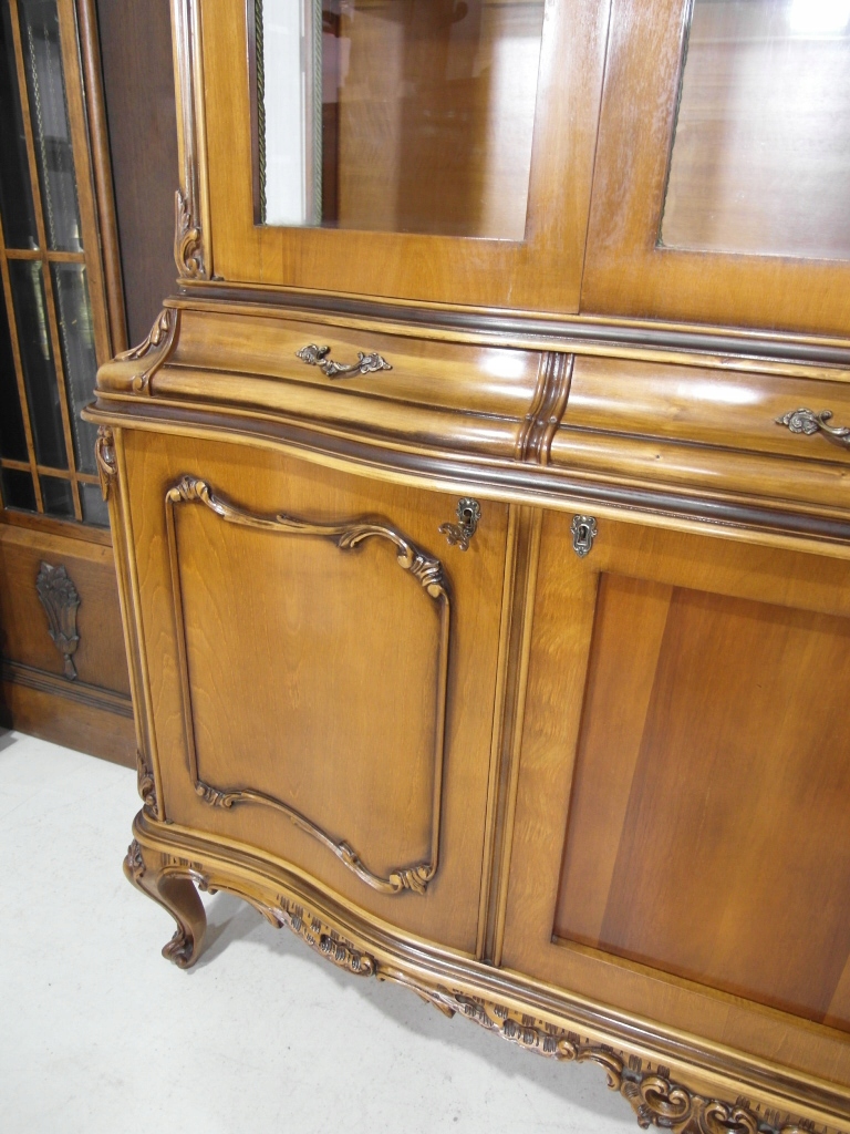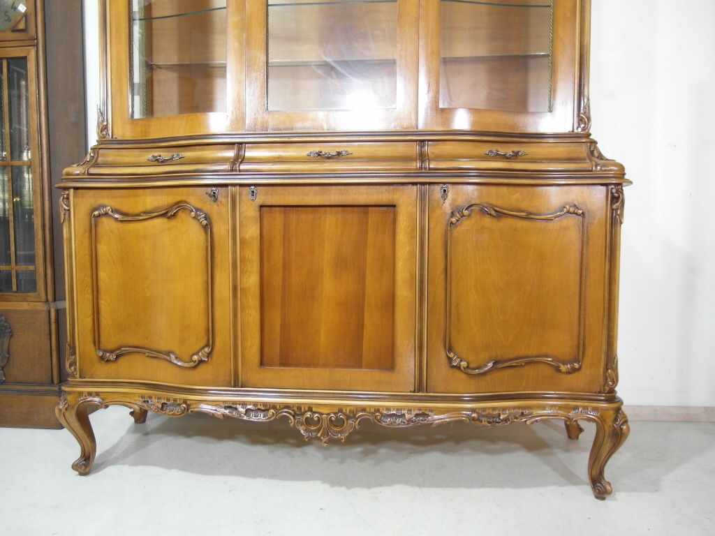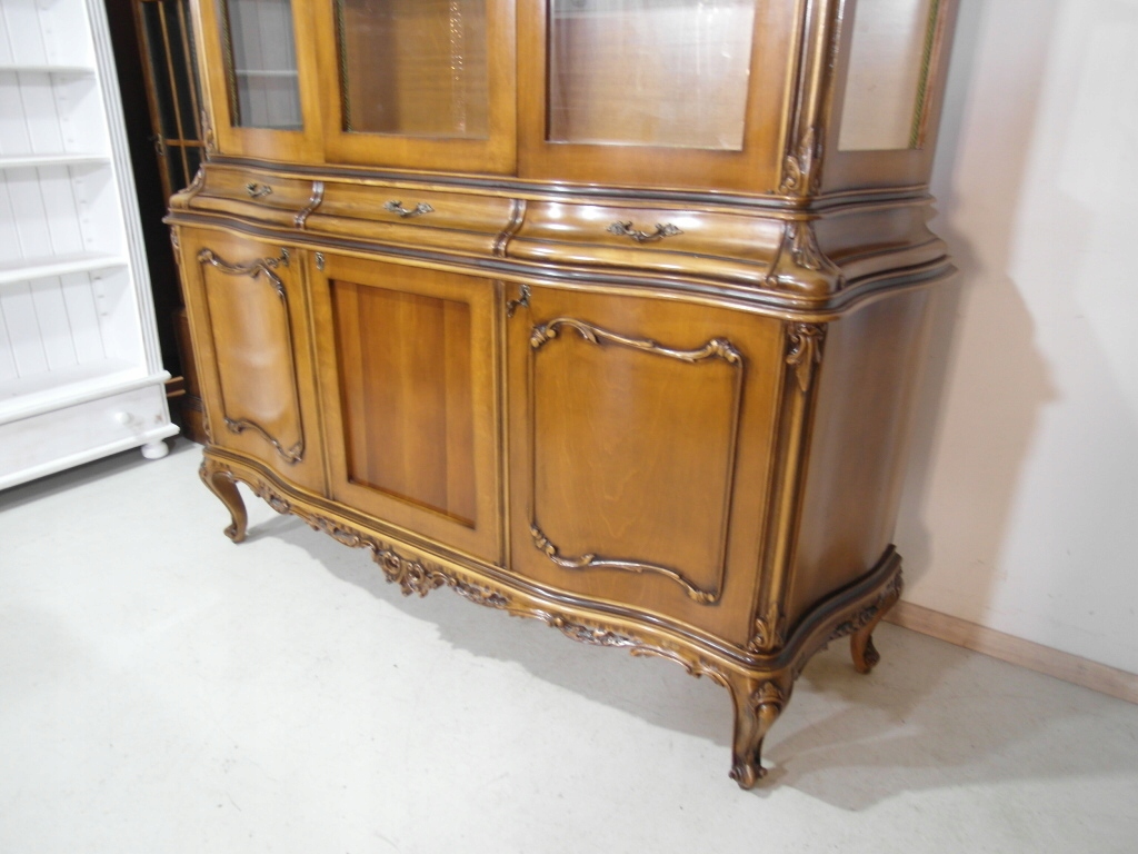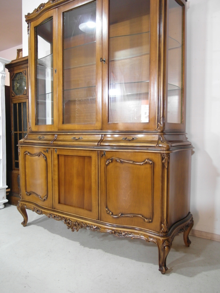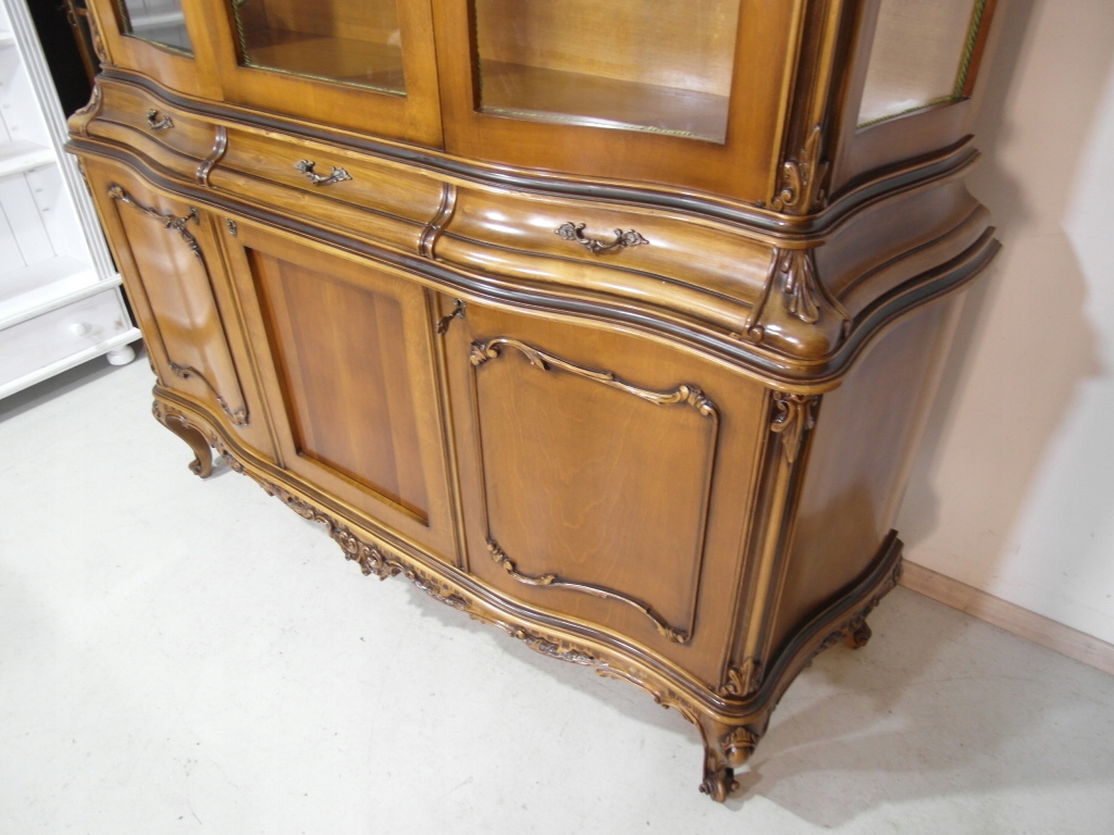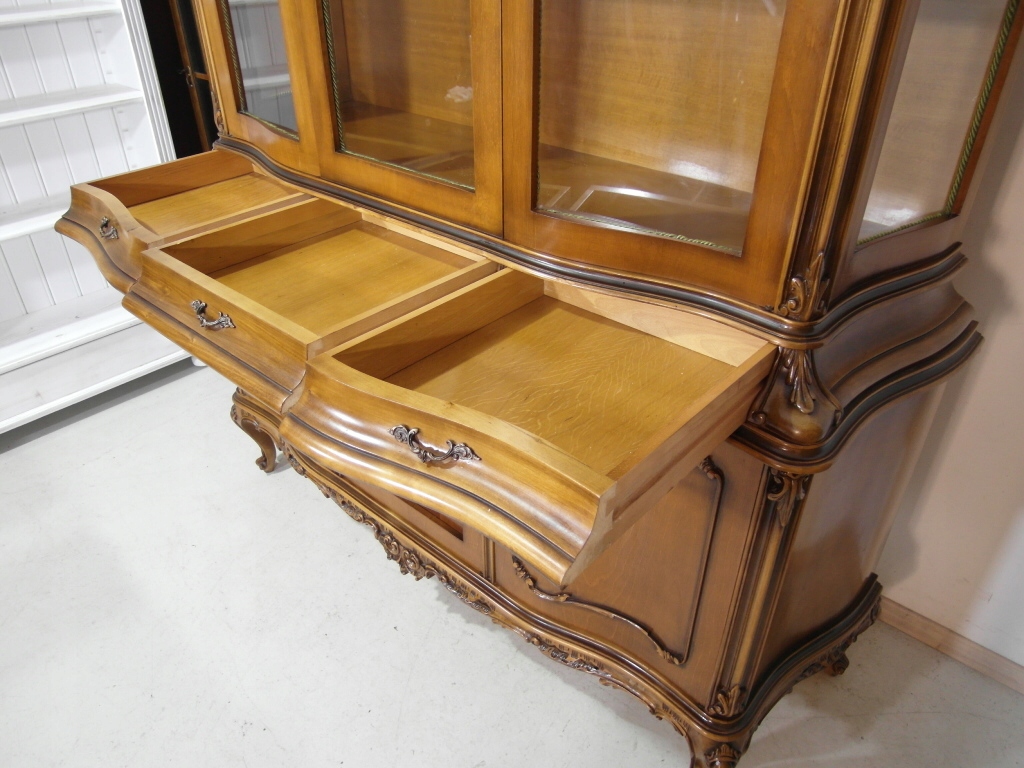 Opis: witryna przeszklona ZAMYKANA NA KLUCZ , W ŚRODKU PÓŁKI , kompletna , wszystko sprawne , oryginalne okucia,