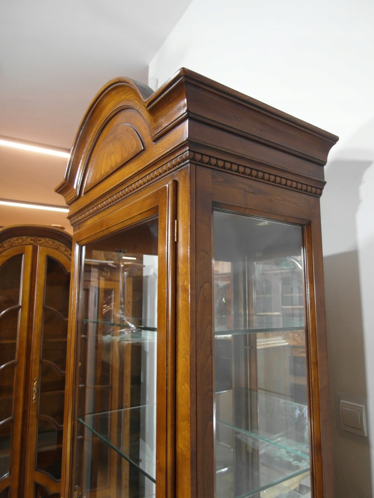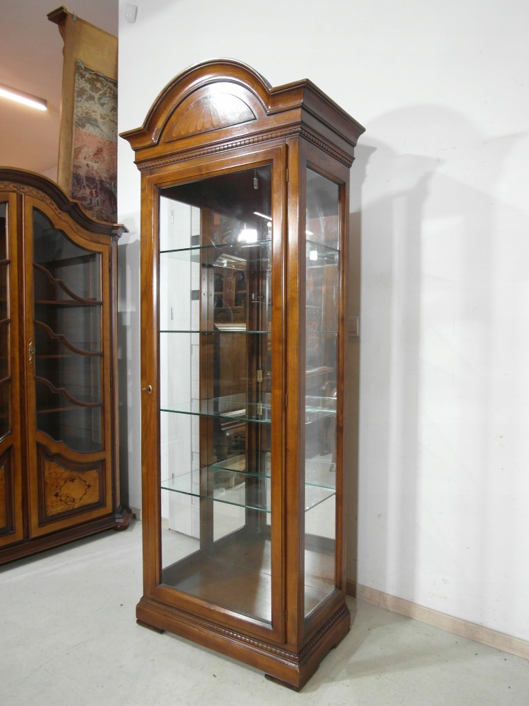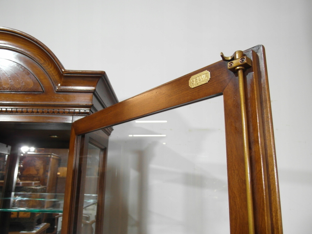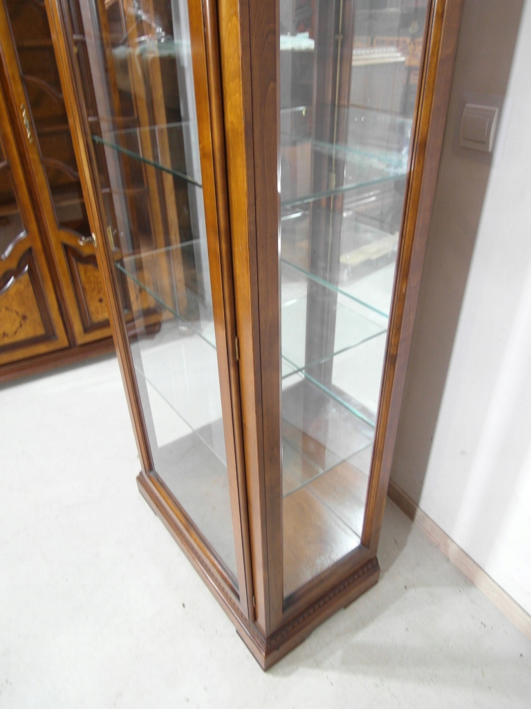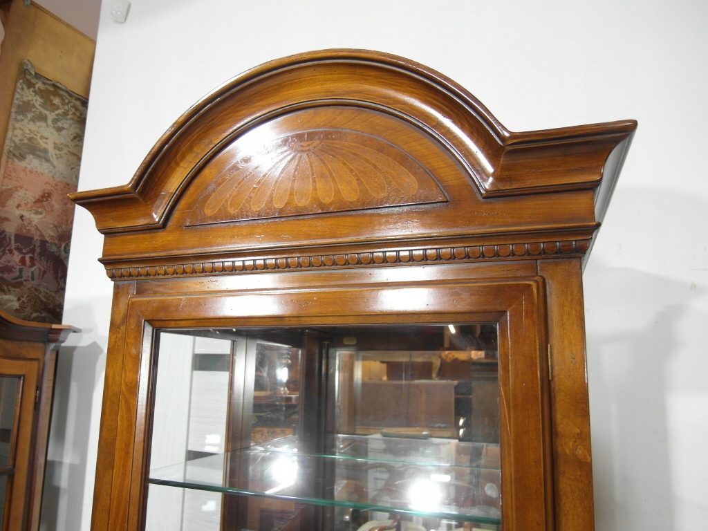 Opis: witryna przeszklona ZAMYKANA NA KLUCZ , W ŚRODKU PÓŁKI , kompletna , wszystko sprawne , oryginalne okucia,