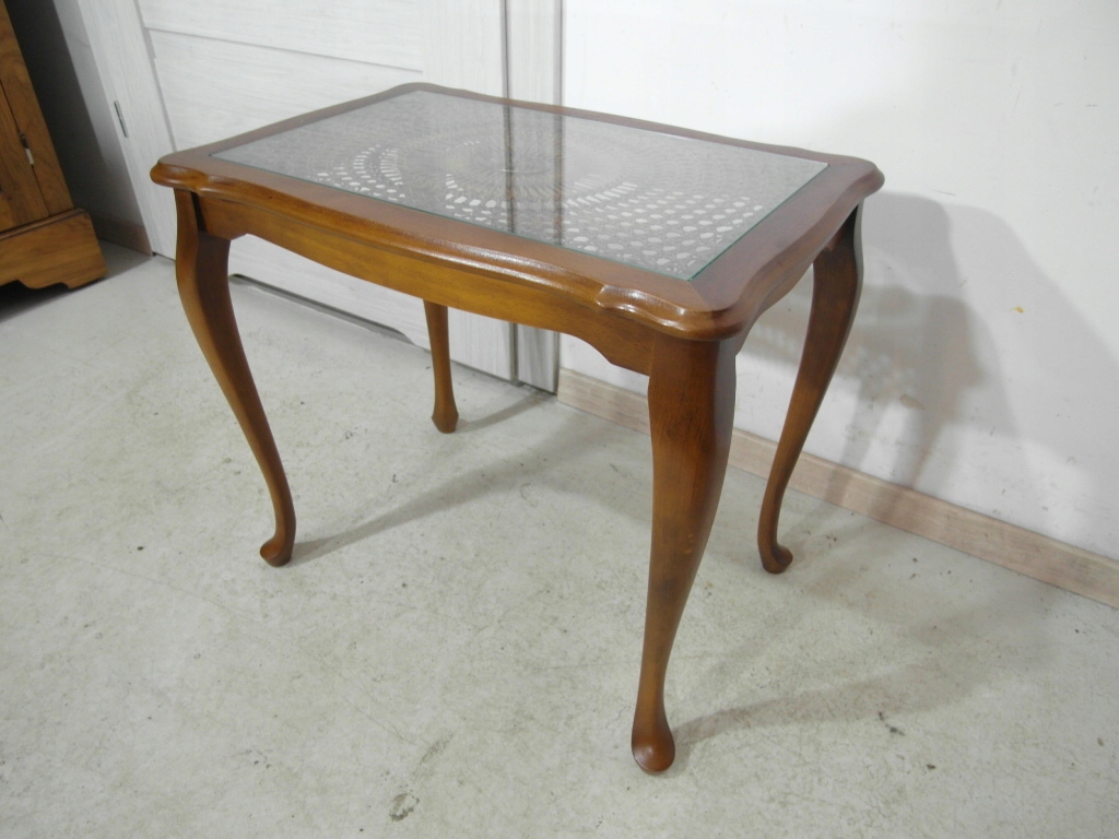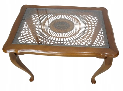 stolik prostokątny ludwikowski z szybą na blacie
