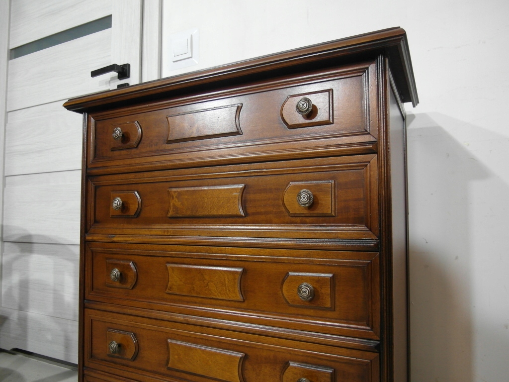 Opis: szafka z szufladami ,, wygodna w użytkowaniu , głębokie szuflady , stabilna i bardzo mocna, fornirowana