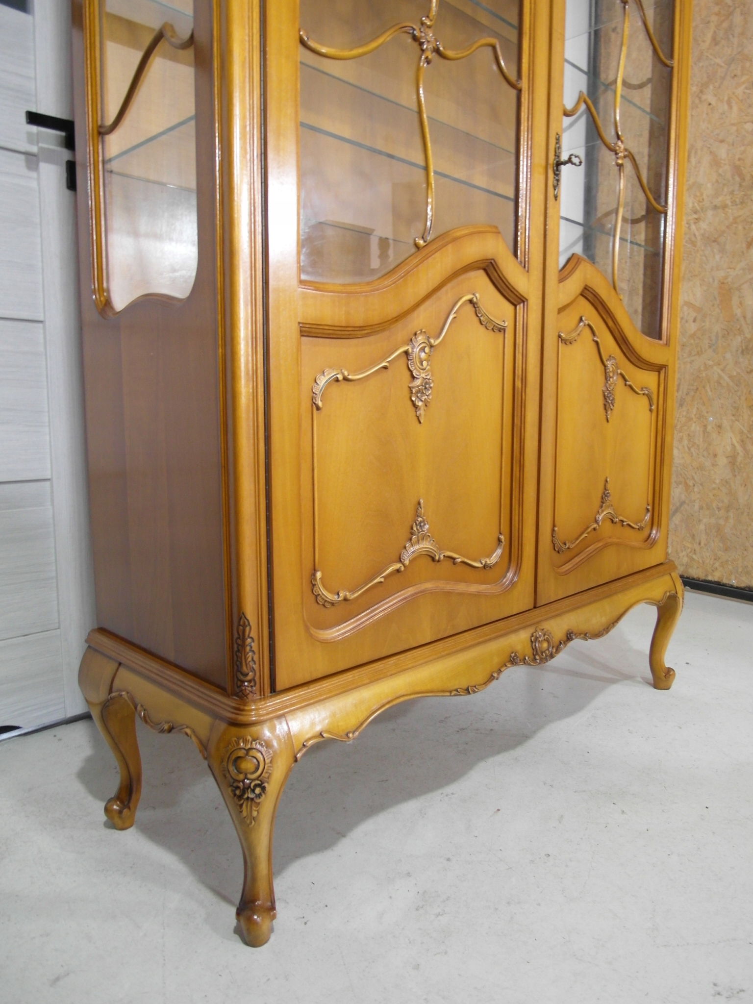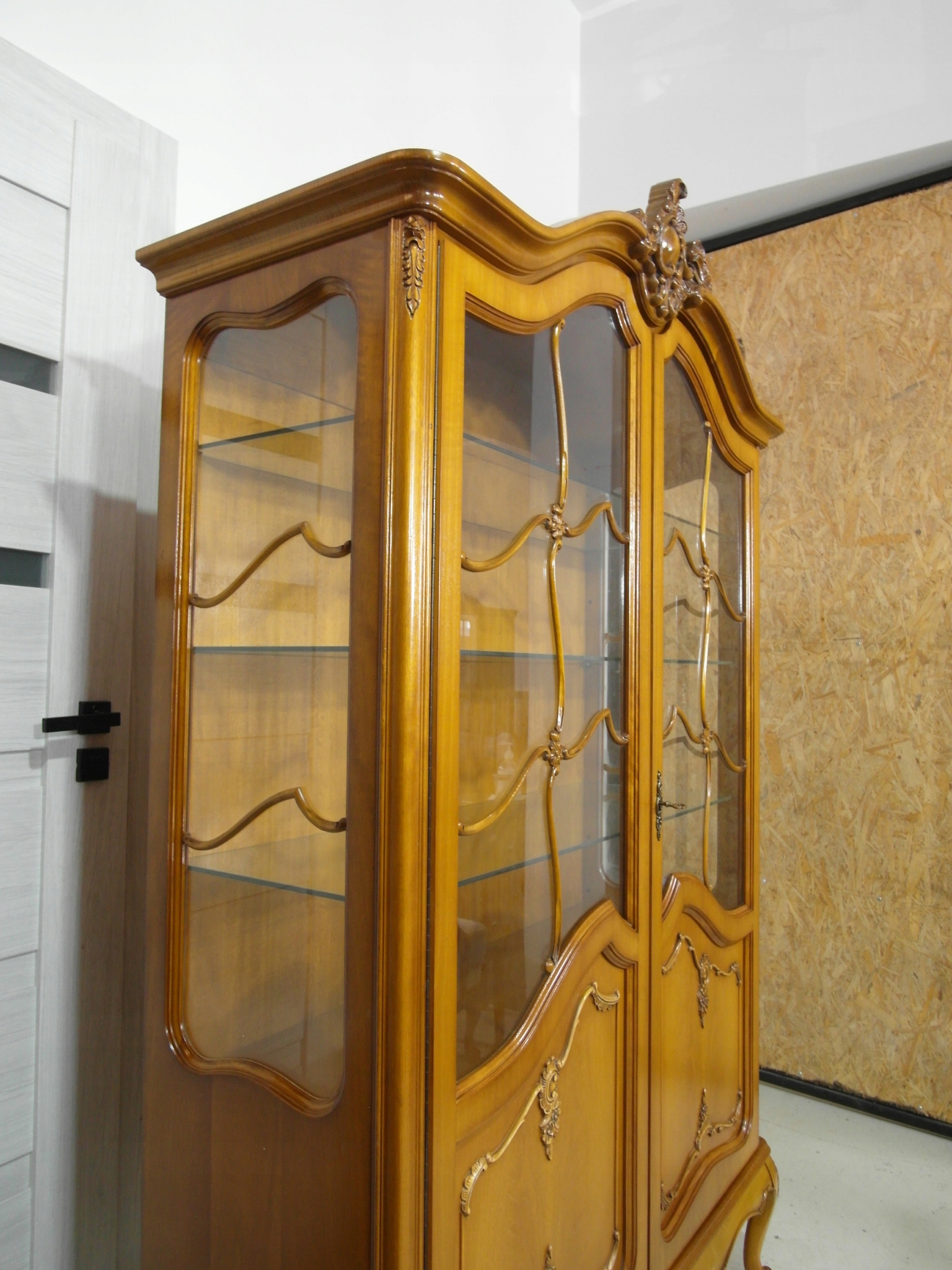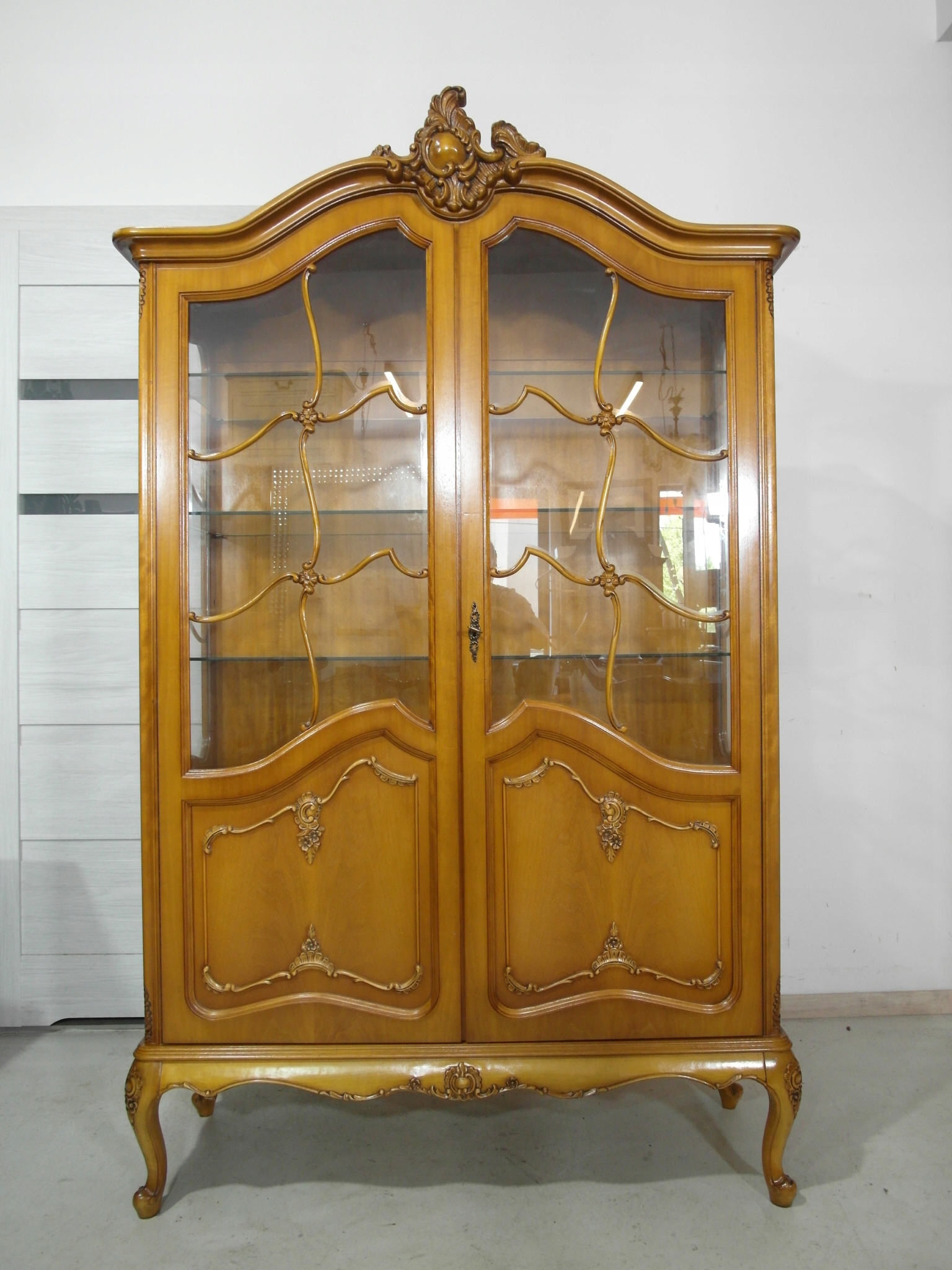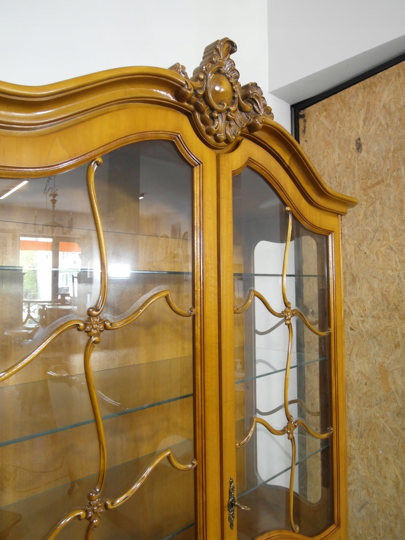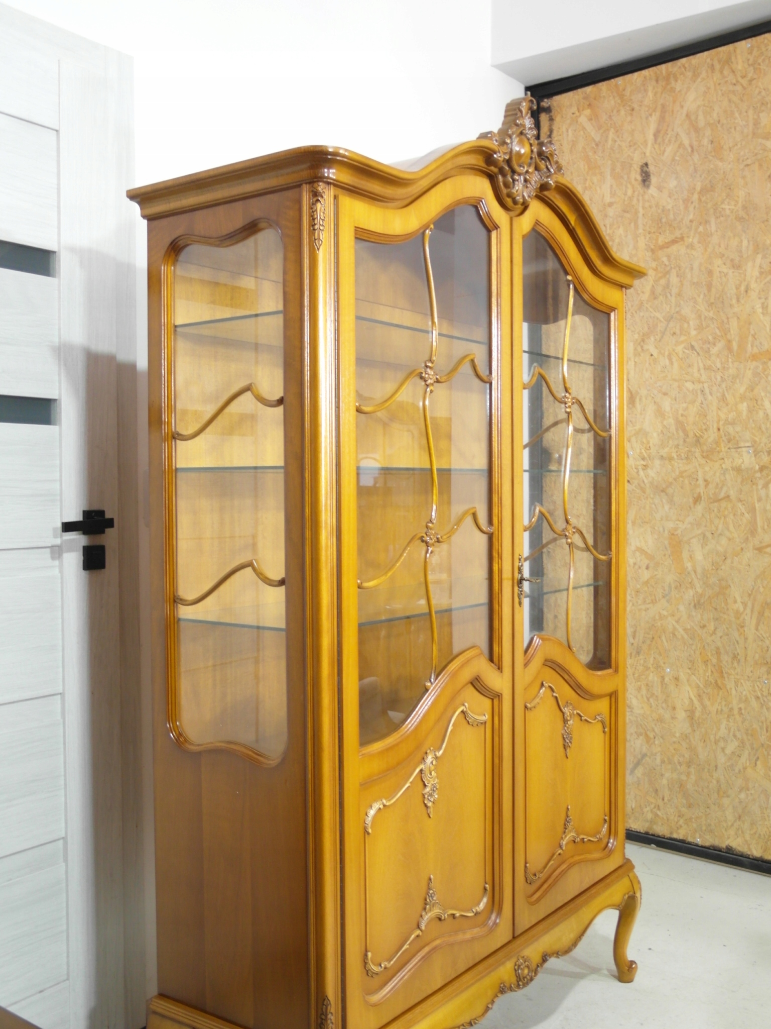 Opis: witryna przeszklona ZAMYKANA NA KLUCZ , W ŚRODKU PÓŁKI , kompletna , wszystko sprawne , oryginalne okucia