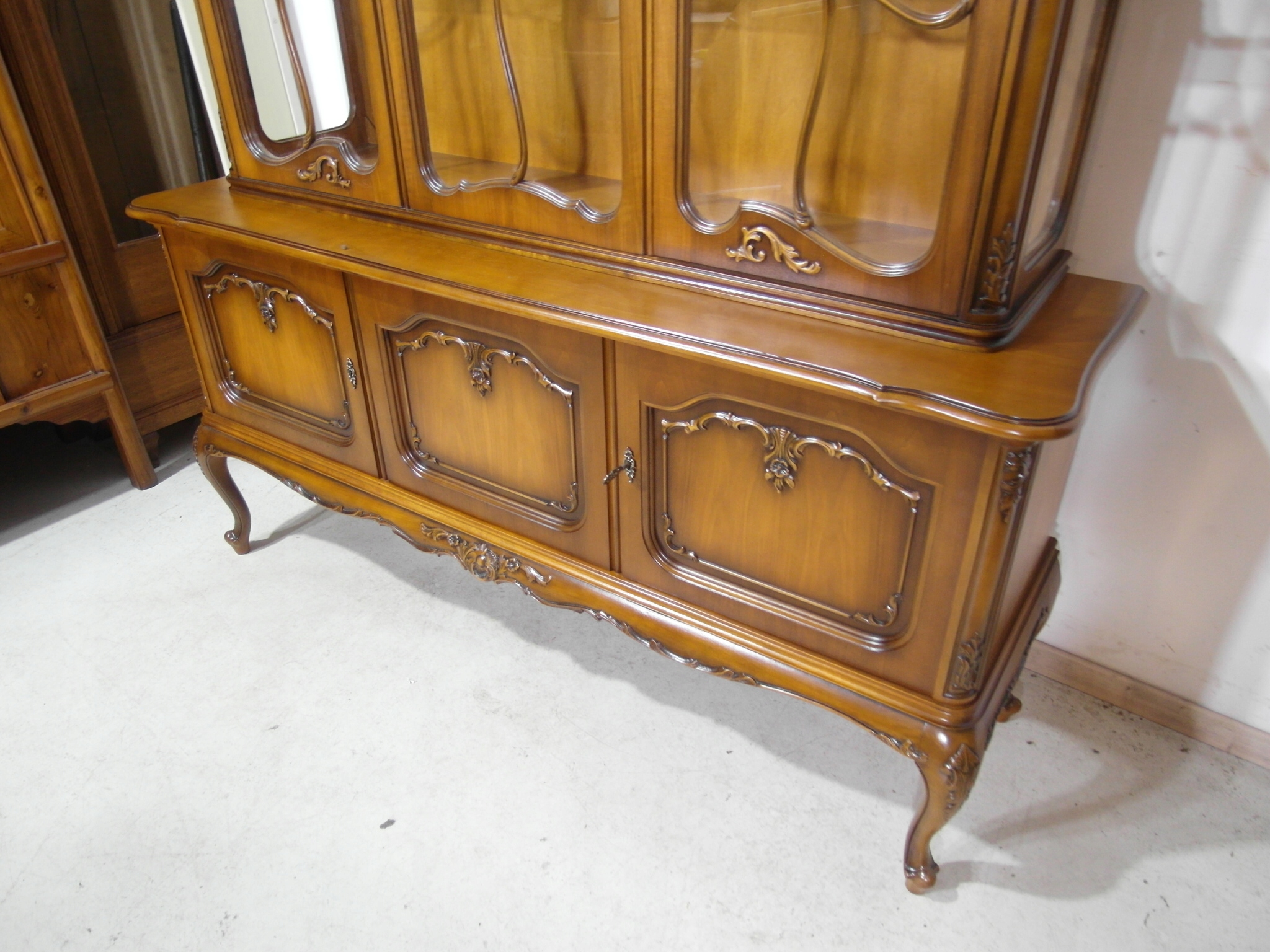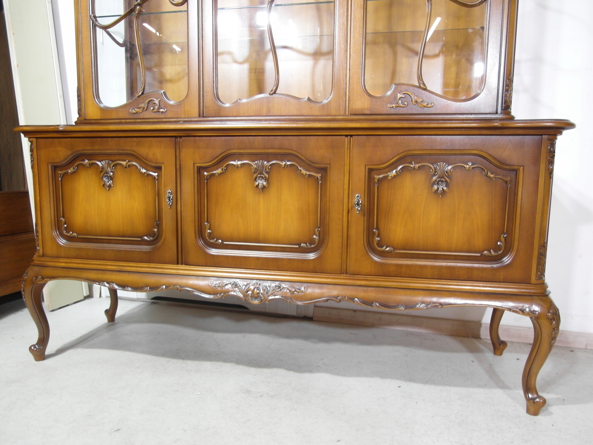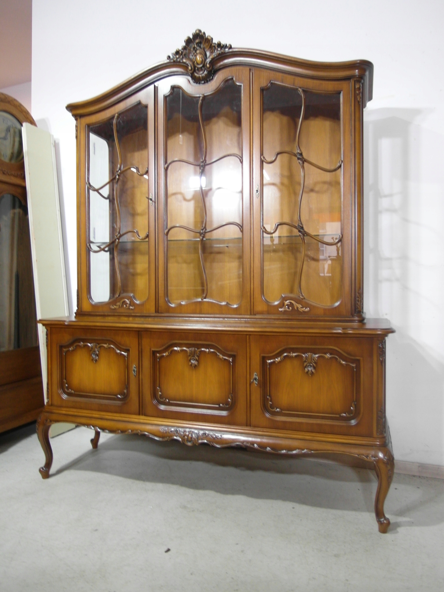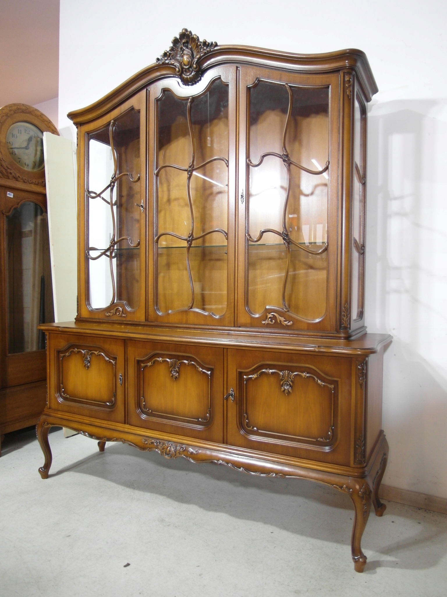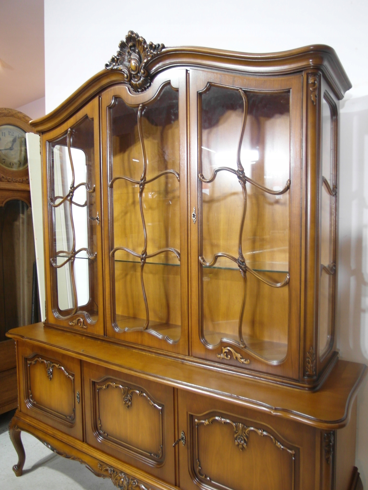 Opis: witryna przeszklona ZAMYKANA NA KLUCZ , W ŚRODKU PÓŁKI , kompletna , wszystko sprawne , oryginalne okucia, 2 klucze w komplecie